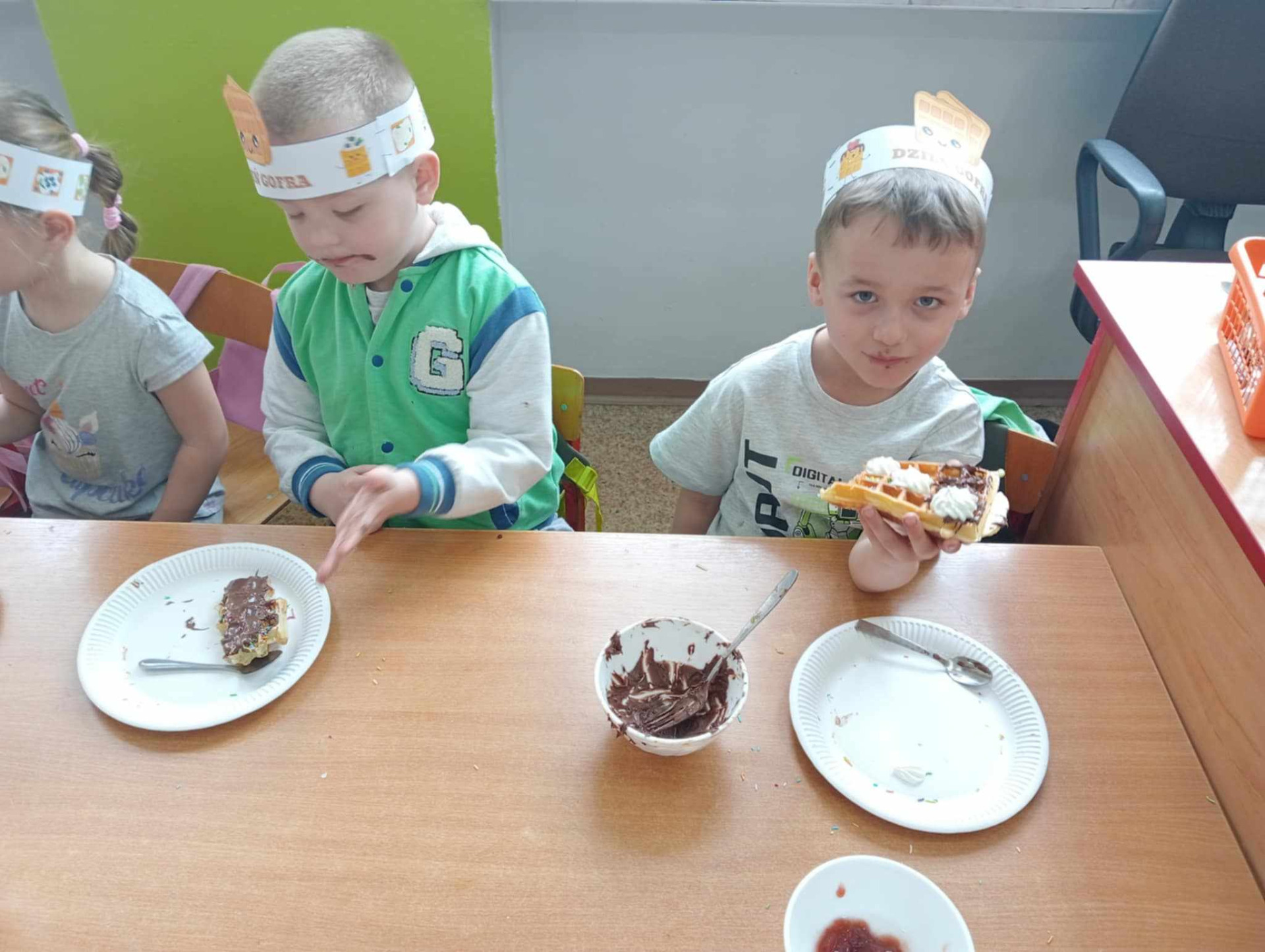 Dziś (24.03.2025) w naszym przedszkolu unosił się zapach pysznych gofrów!
