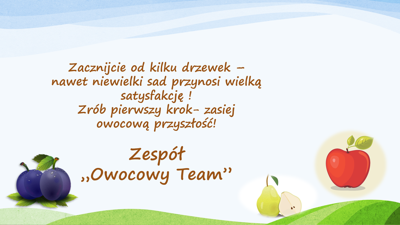 Zachęcamy wszystkich Rodziców do zasadzenia drzewek owocowych w ogrodach, na działkach przy domach! To wspaniały sposób, by:
