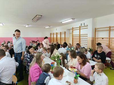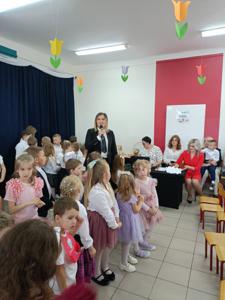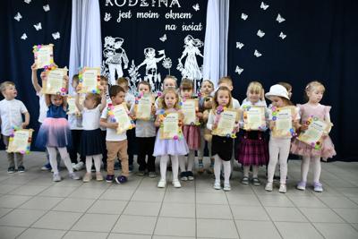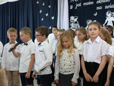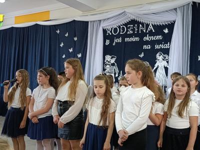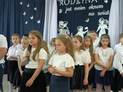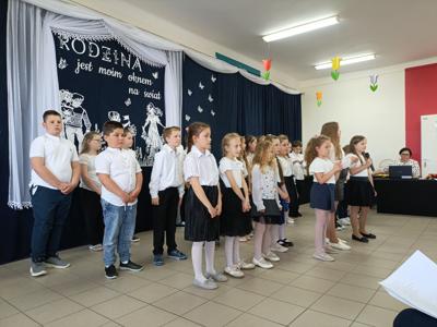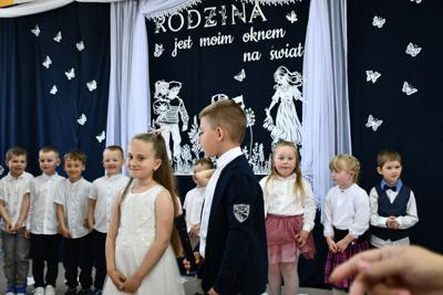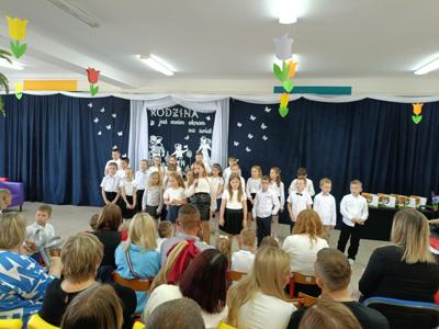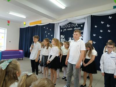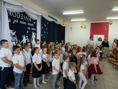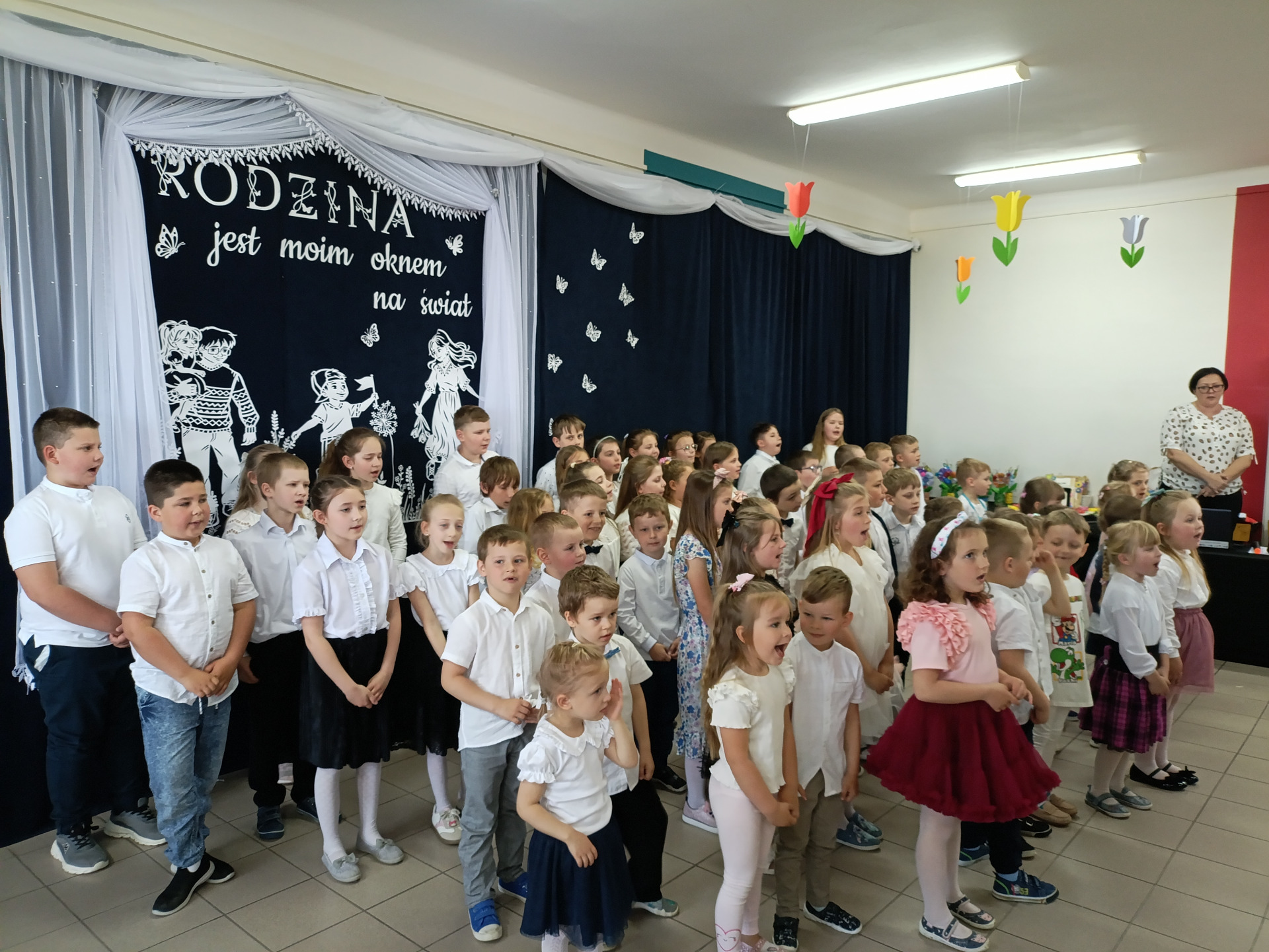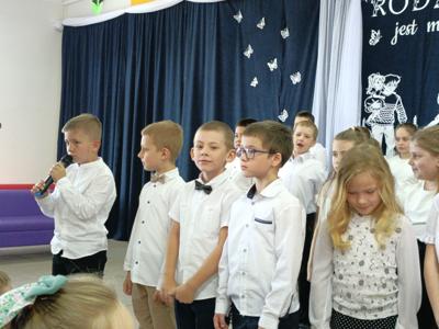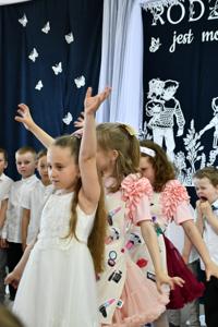 Oczywiście mając tego świadomość i chcąc podtrzymywać tę niezwykłą więź, 26 maja, gościliśmy, w naszej szkole, rodziców. Dzieci z oddziałów przedszkolnych oraz klas I – III przygotowały dla nich część artystyczną, aby podziękować za codzienny trud i życzyć wytrwałości na dalsze lata. Wzruszenie przeplatało się z radością i dumą, utwierdzało w przekonaniu, że warto, choćby dla tych krótkich chwil, dla tych kilku słów: kocham, dziękuję ….