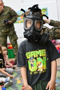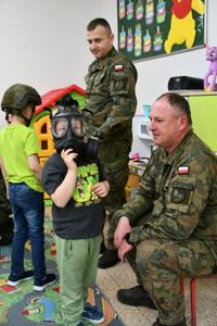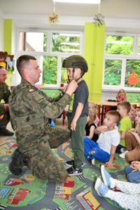 Mali odkrywcy z powagą słuchali o wojskowej służbie i z ogromną ciekawością testowali sprzęt.
