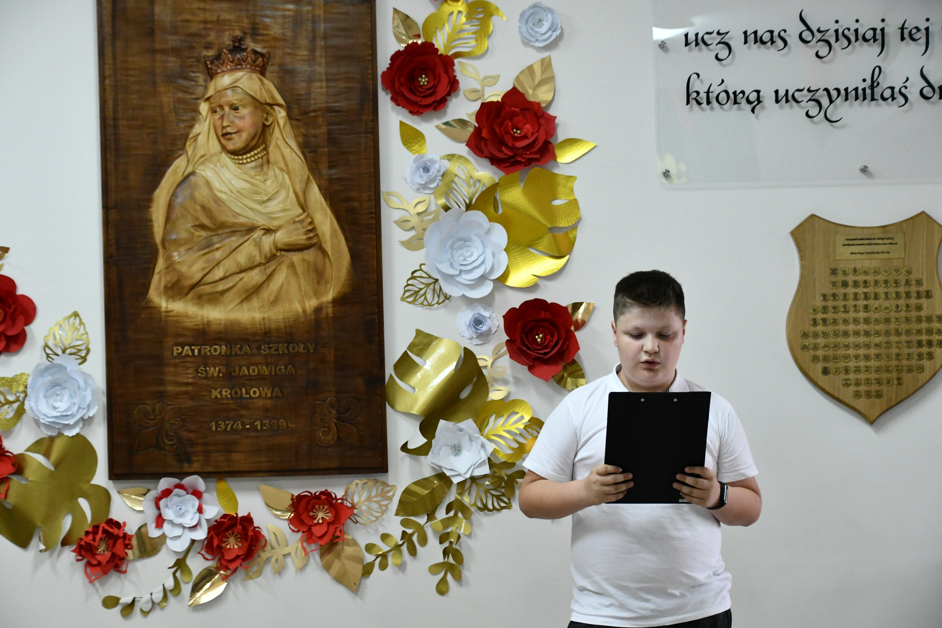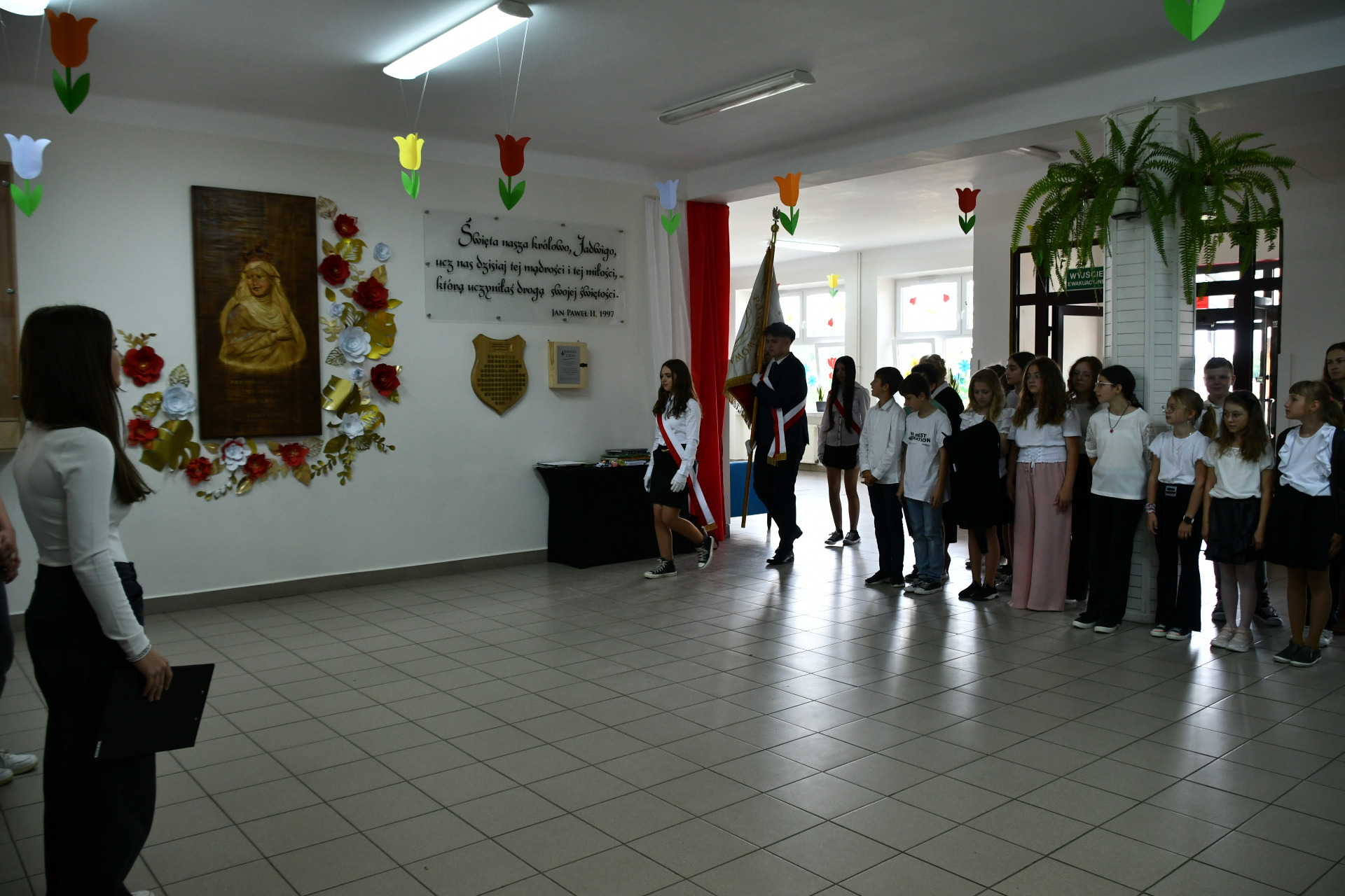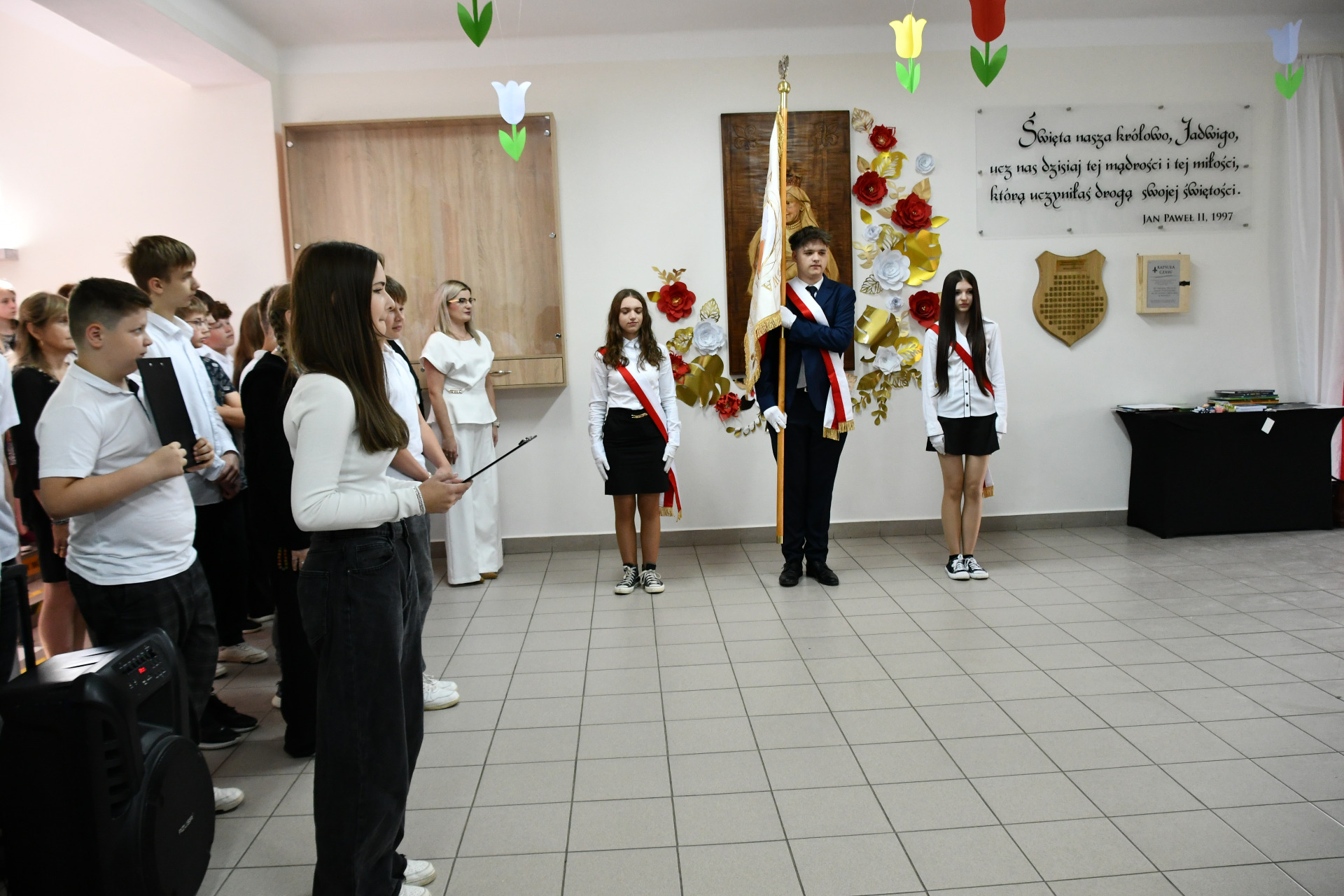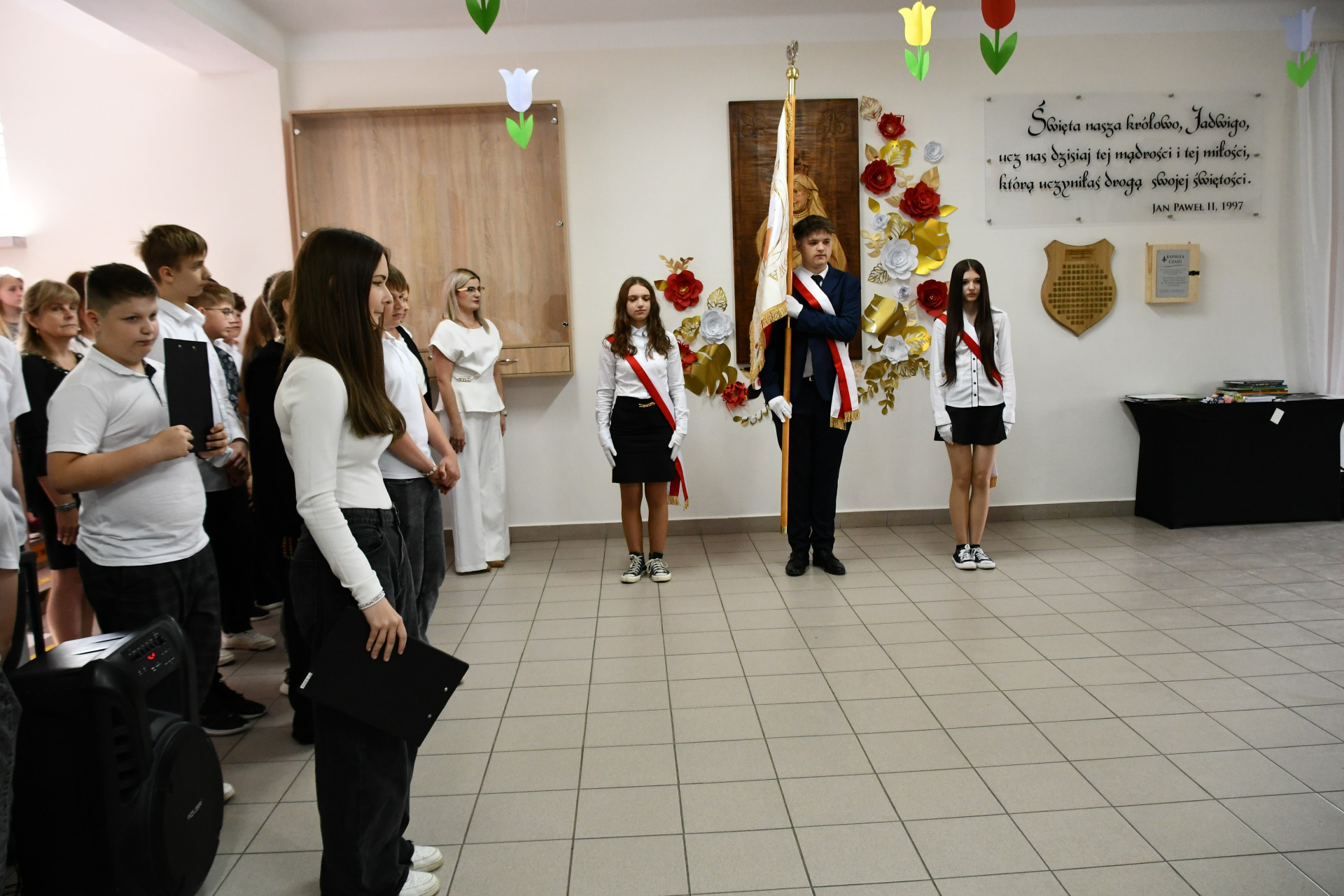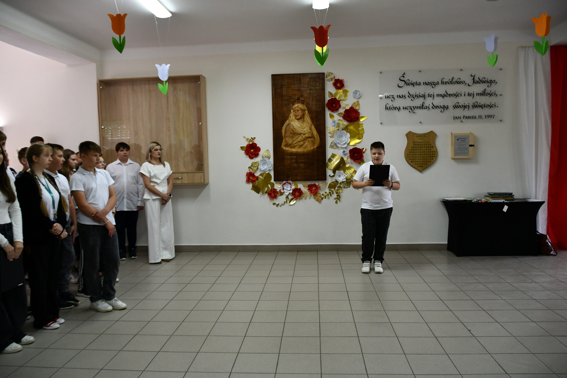 Z tej okazji cała społeczność szkolna wspólnie odśpiewała hymn naszej szkoły, oddając hołd Królowej Jadwidze – kobiecie mądrej, odważnej i pełnej serca dla innych.