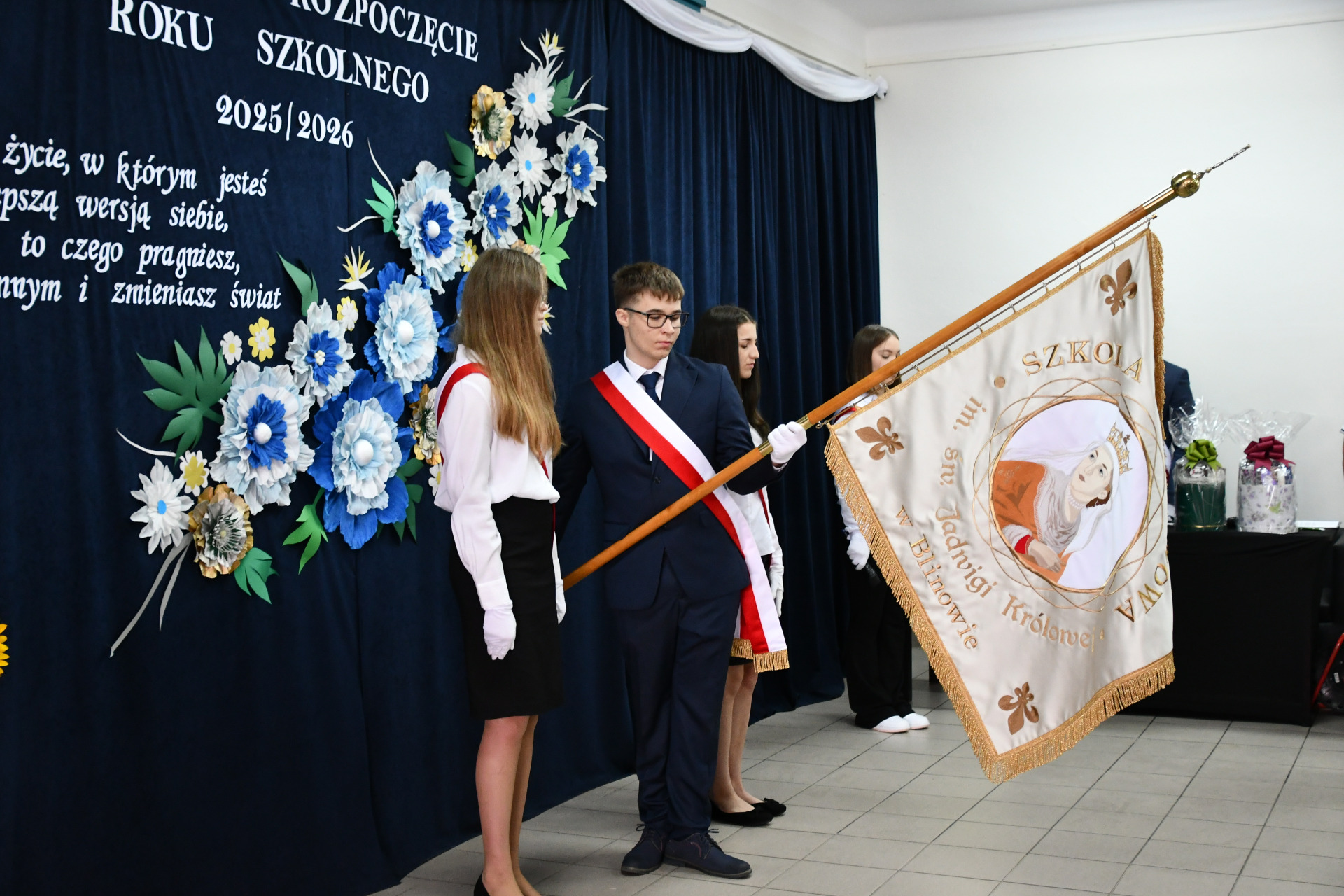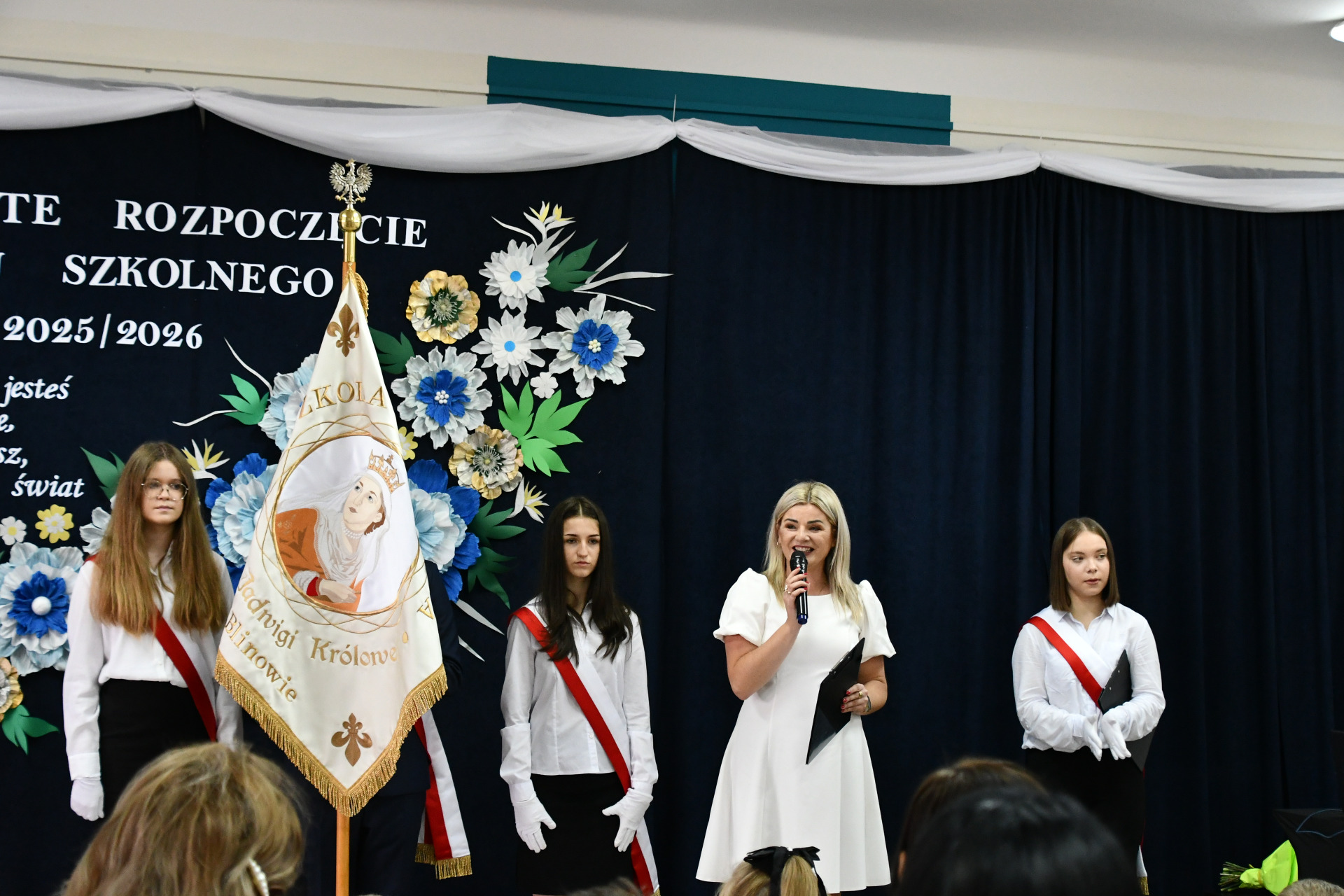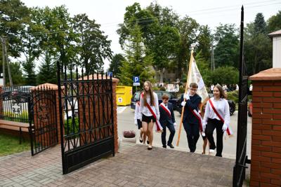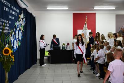 Ważnym punktem uroczystości było także wystąpienie Pani Joanny Niezgody, nauczycielki historii, która przypomniała najważniejsze fakty związane z wybuchem II wojny światowej w Polsce, podkreślając znaczenie pamięci historycznej i patriotyzmu.