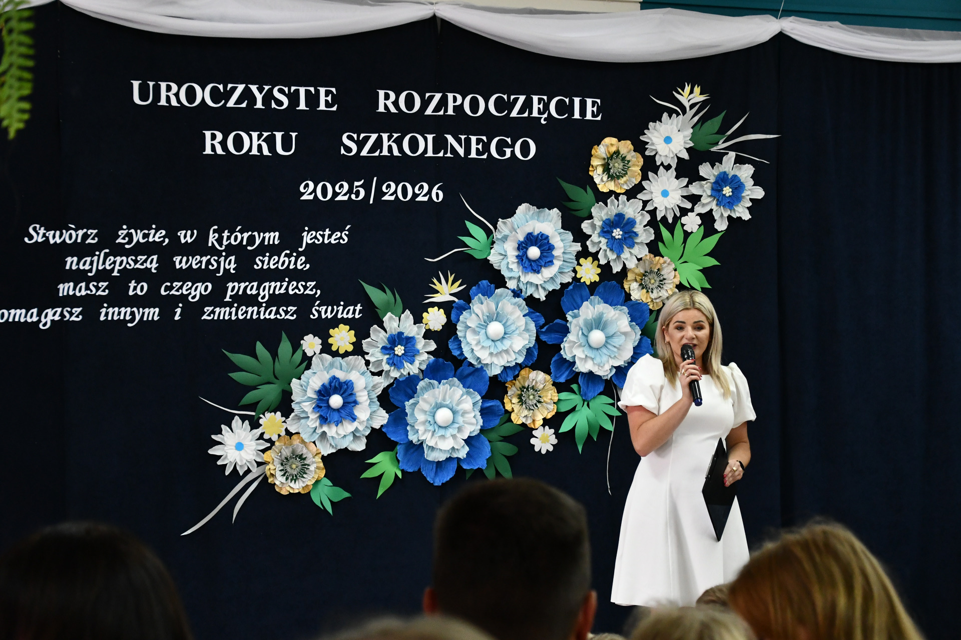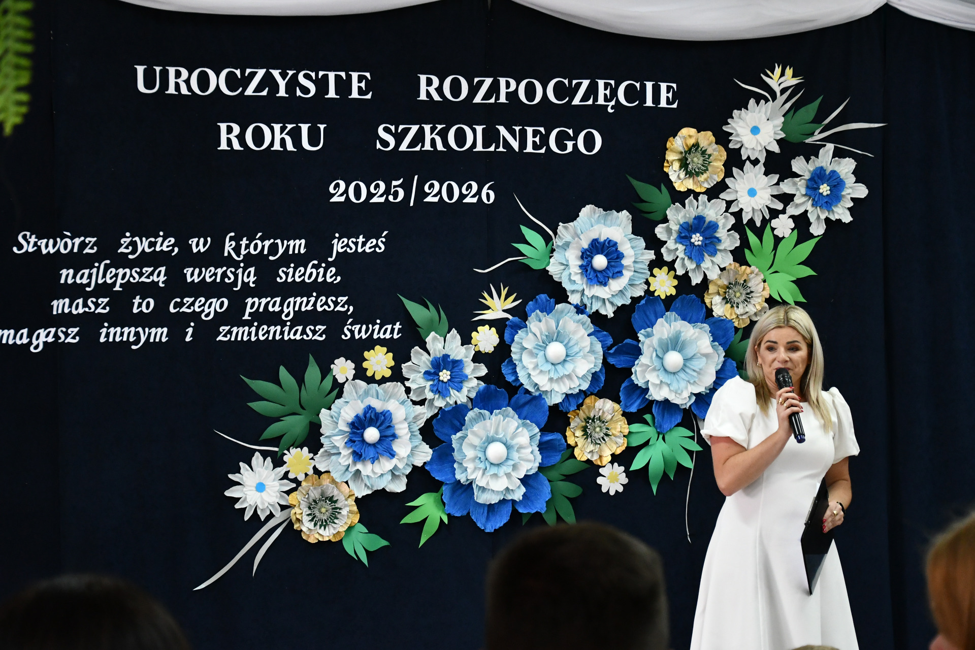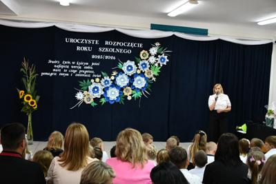 1 września 2025 r. w naszej szkole odbyło się uroczyste rozpoczęcie nowego roku szkolnego. Uroczystość rozpoczęła Pani Dyrektor Ilona Stolarz, która serdecznie przywitała przedszkolaków, uczniów, rodziców, nauczycieli oraz wszystkich pracowników szkoły. W swoim przemówieniu życzyła wszystkim udanego i pełnego sukcesów roku szkolnego.