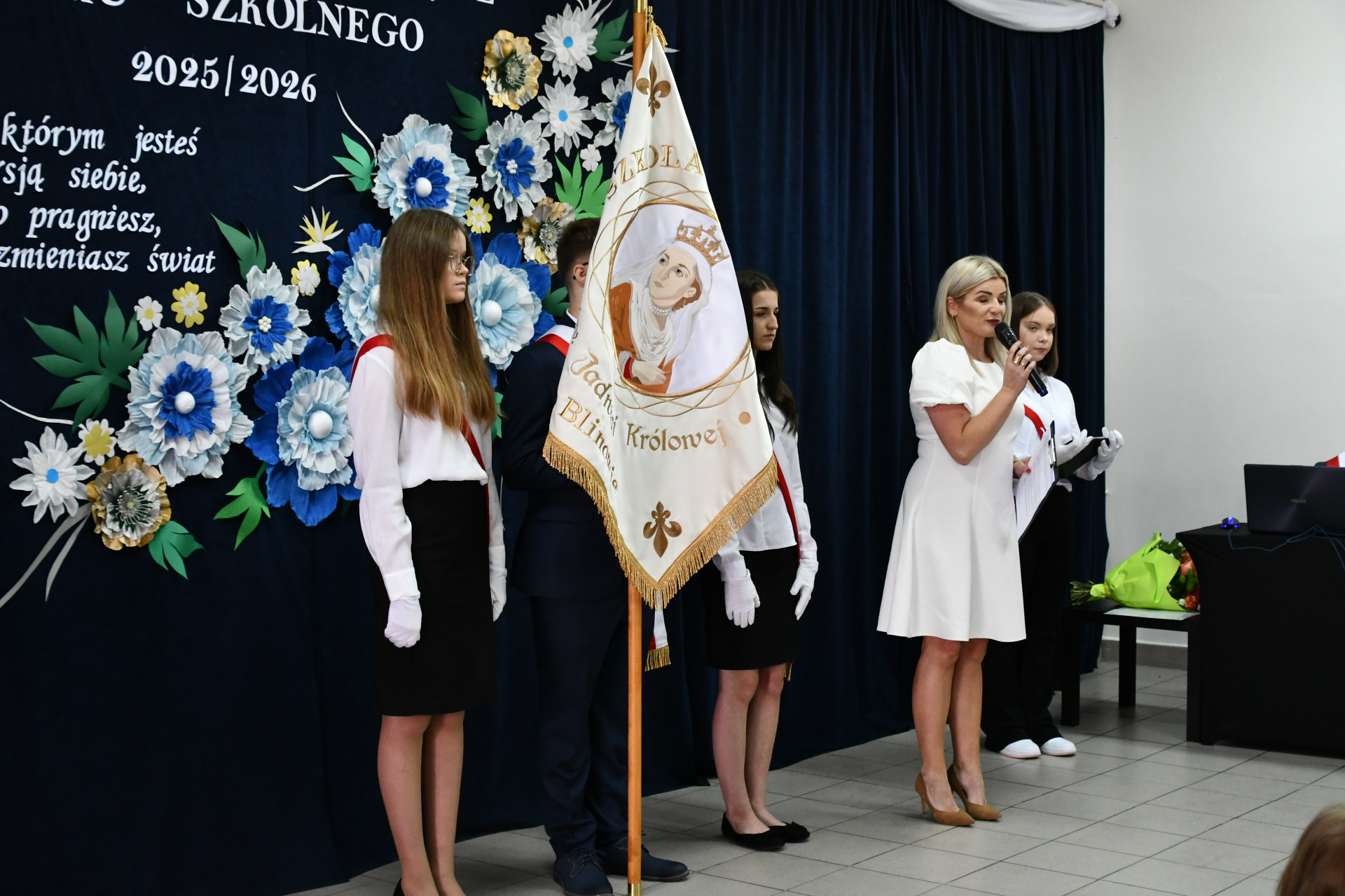 Głos zabrała również Pani Wójt Elżbieta Kowalczyk, która oprócz ciepłych słów skierowanych do społeczności szkolnej, zaprosiła wszystkich na Apel Poległych w Polichnie, aby wspólnie uczcić pamięć o ofiarach i bohaterach II wojny światowej – w dniu, w którym przypada 86. rocznica jej wybuchu.