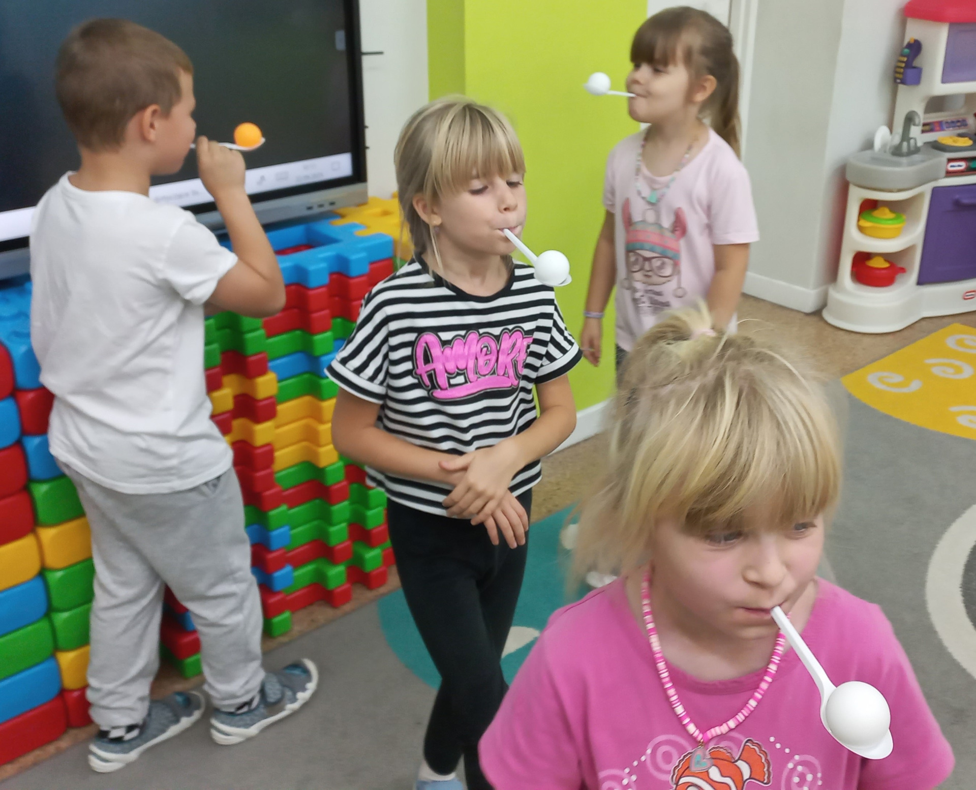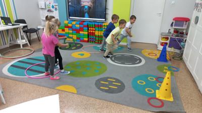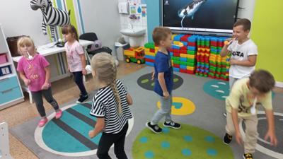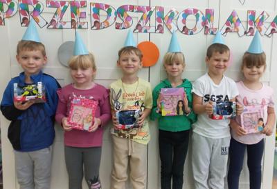 Tego dnia nie brakowało atrakcji w postaci różnorodnych zabaw ruchowych, tanecznych, konkursów, w których należało wykazać się zręcznością i pomysłowością, a śmiech i głośny doping nie miały końca. Nie to jednak wzbudziło największą radość, a wizyta niezapowiedzianego gościa, którym była Dyrektor naszej szkoły Pani Ilona Stolarz z pudłem nowych zabawek, koszem słodkości i życzeniami, do których dołączamy się wszyscy.