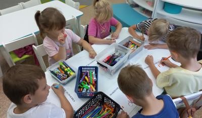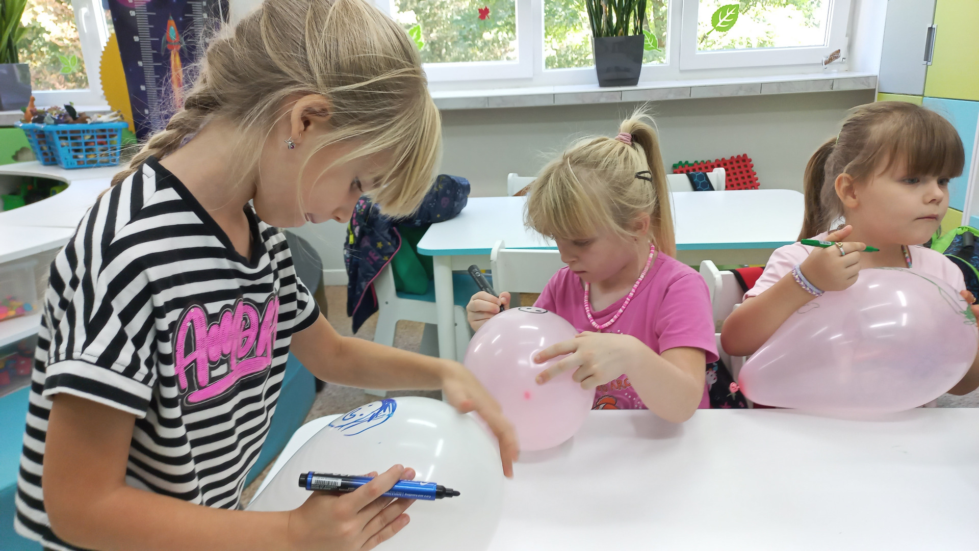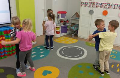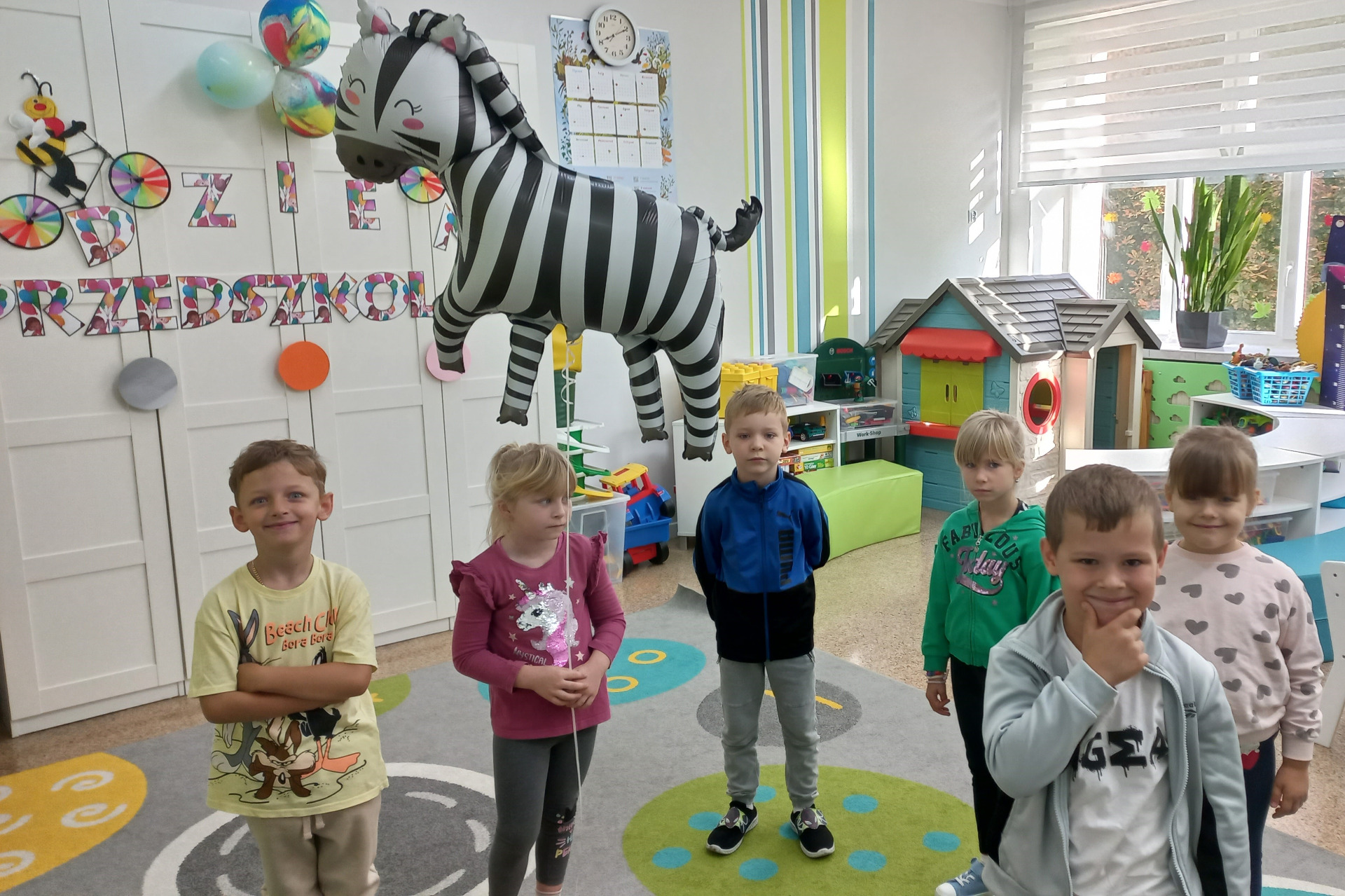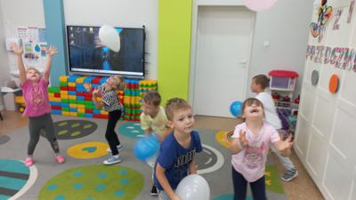 Starsza grupa przedszkolna świętowanie rozpoczęła od tanecznego pląsu oraz nadmuchania kolorowych baloników, w poniedziałkowy ranek, 22 września. Nieprzypadkowo zresztą, bo to one, pięknie ozdobione przez dzieci, towarzyszyły im przez cały dzień, by finalnie, ten jeden najważniejszy „pozbierał” ich przeniesione na kartki marzenia i uniósł wysoko w górę, ku spełnieniu.