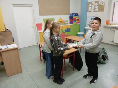 Od najmłodszych przedszkolaków aż po uczniów klas I–III, dziewczynki składały swoim kolegom serdeczne życzenia i wręczały drobne upominki.