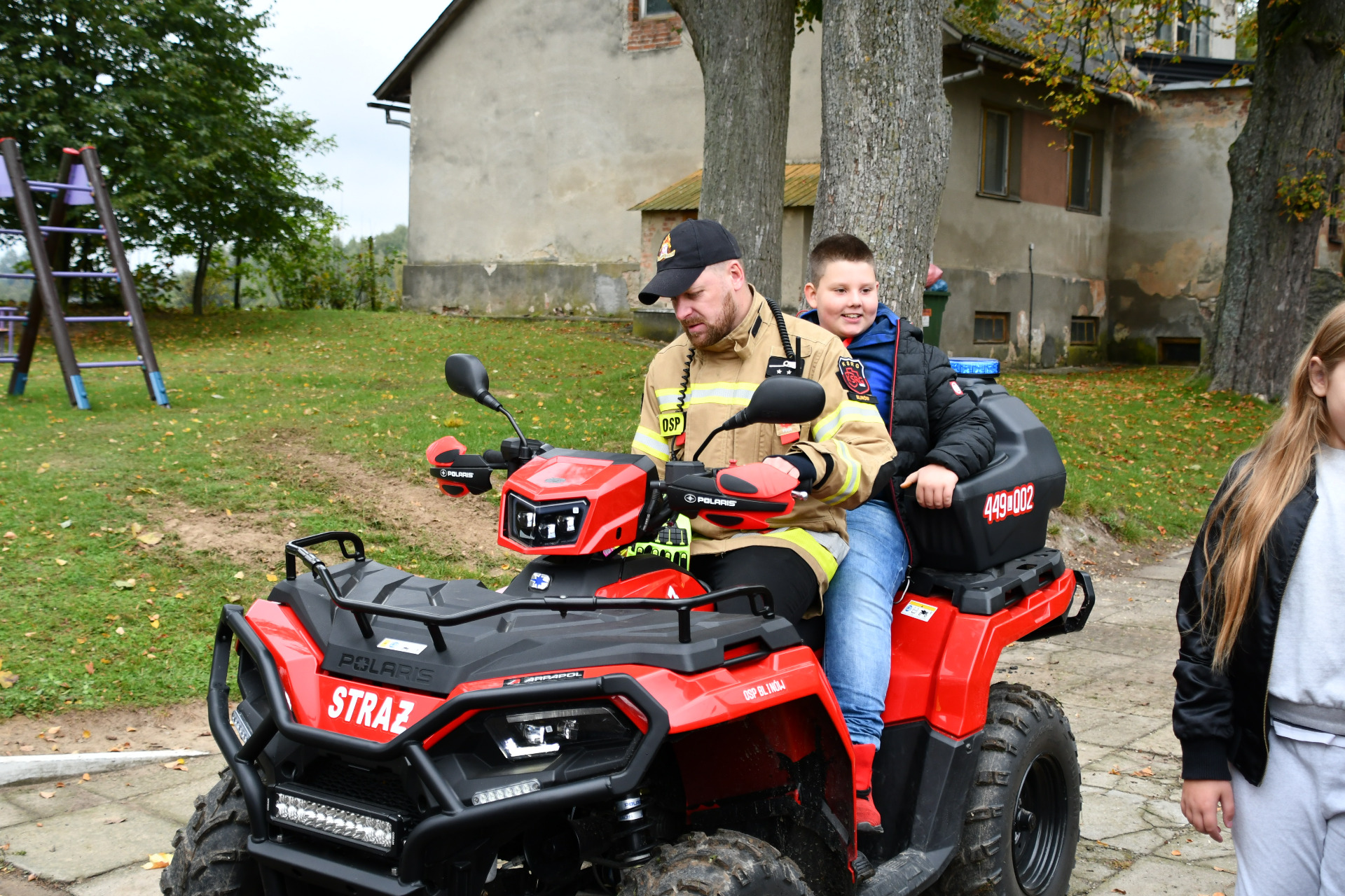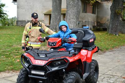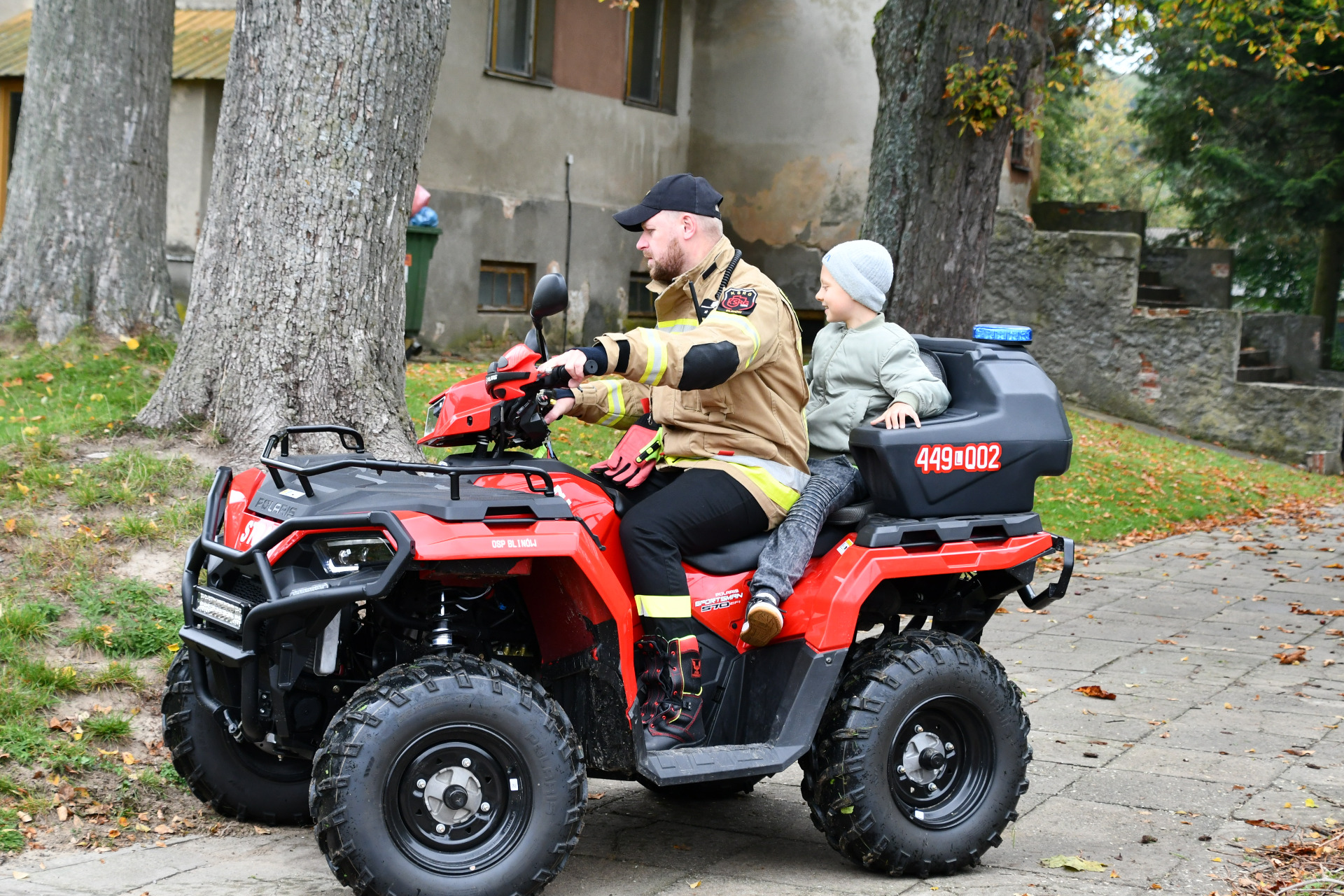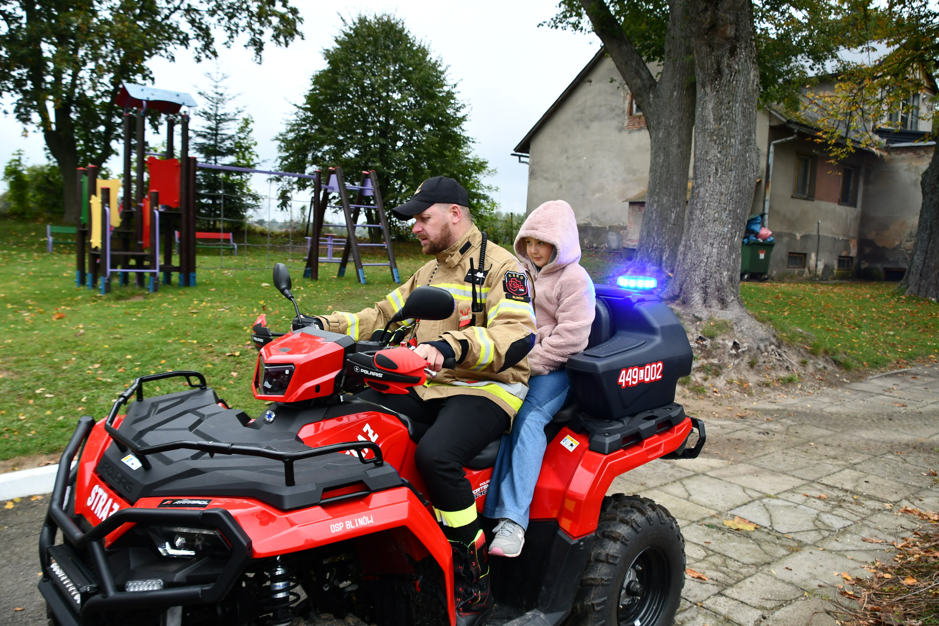 Największą niespodzianką była jednak wizyta strażaków z OSP w Blinowie. Chłopcy mogli z bliska zobaczyć ogromny wóz bojowy, posłuchać ciekawych opowieści, a nawet przejechać się prawdziwym quadem strażackim! Bo przecież – który chłopiec nie marzył choć raz, by zostać strażakiem? Dziś udało nam się spełnić to dziecięce marzenie – choćby na chwilę.