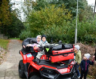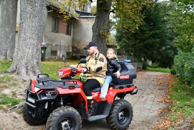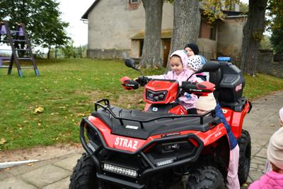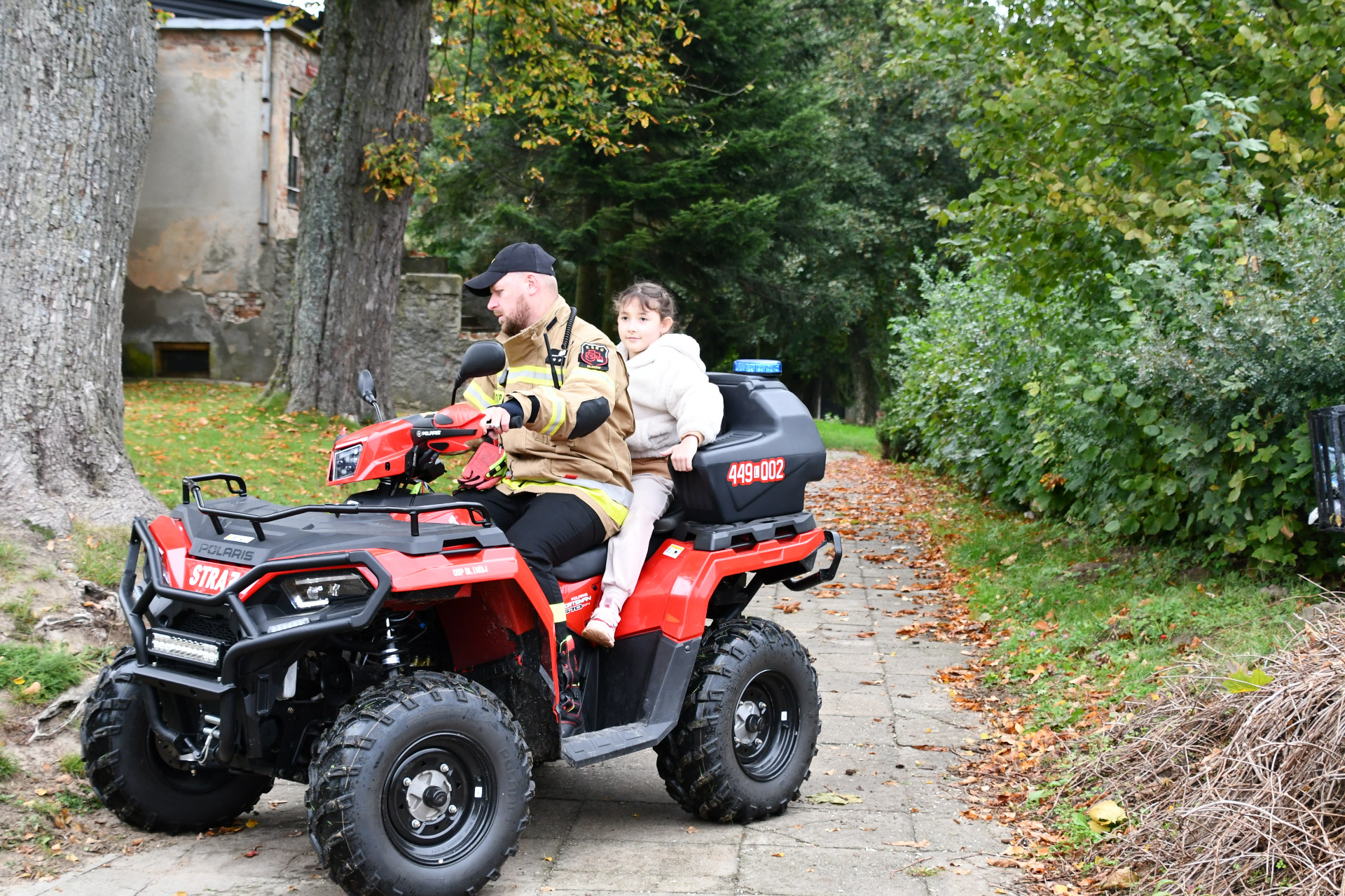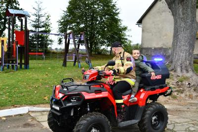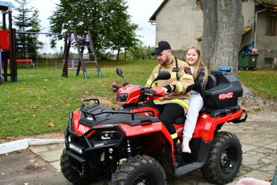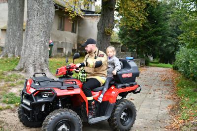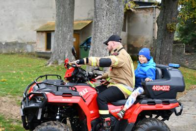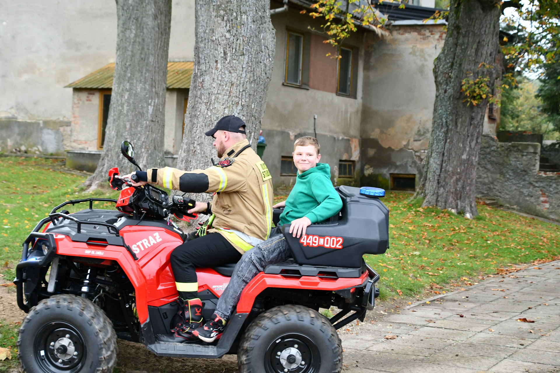 Największą niespodzianką była jednak wizyta strażaków z OSP w Blinowie. Chłopcy mogli z bliska zobaczyć ogromny wóz bojowy, posłuchać ciekawych opowieści, a nawet przejechać się prawdziwym quadem strażackim! Bo przecież – który chłopiec nie marzył choć raz, by zostać strażakiem? Dziś udało nam się spełnić to dziecięce marzenie – choćby na chwilę.
