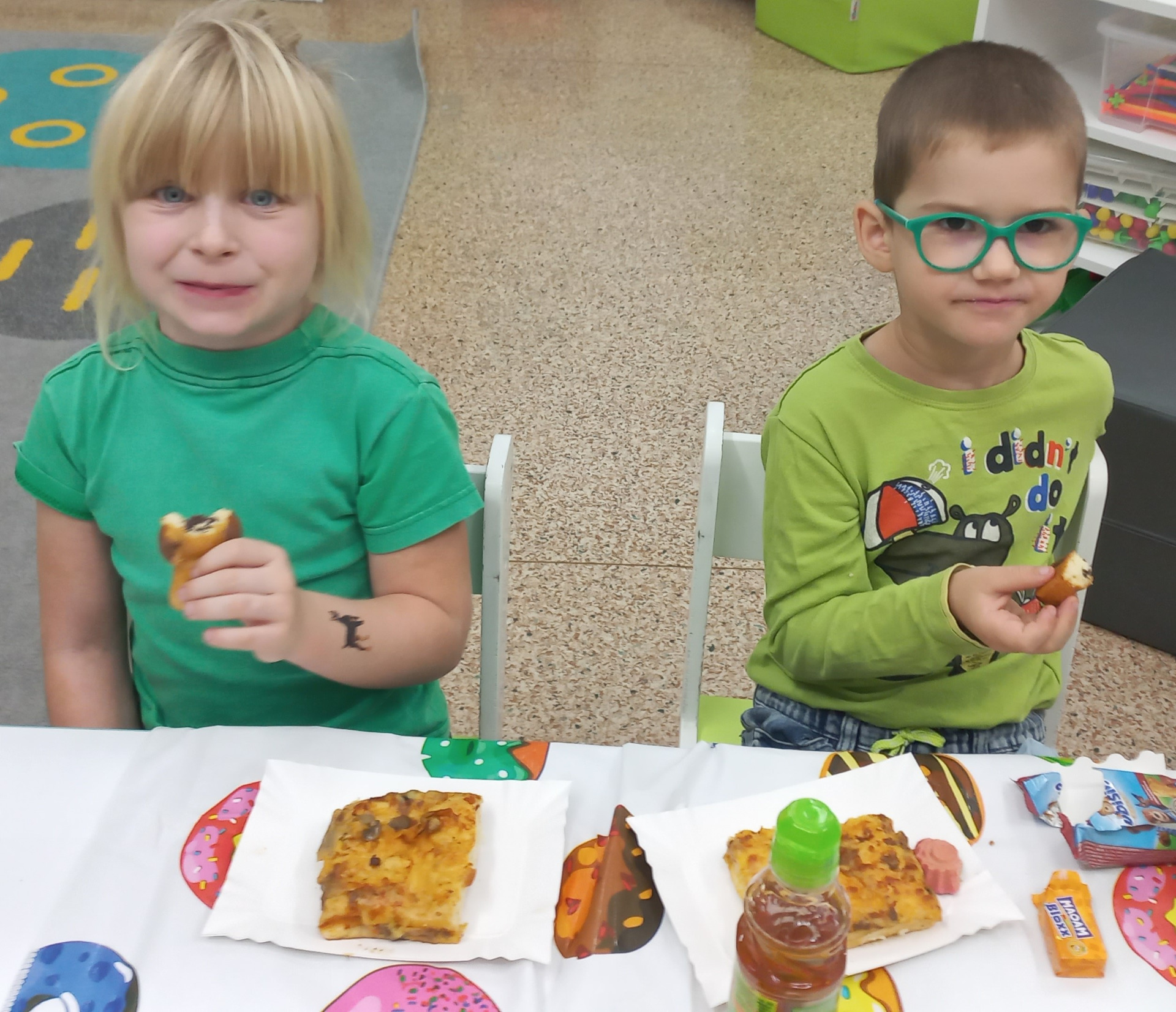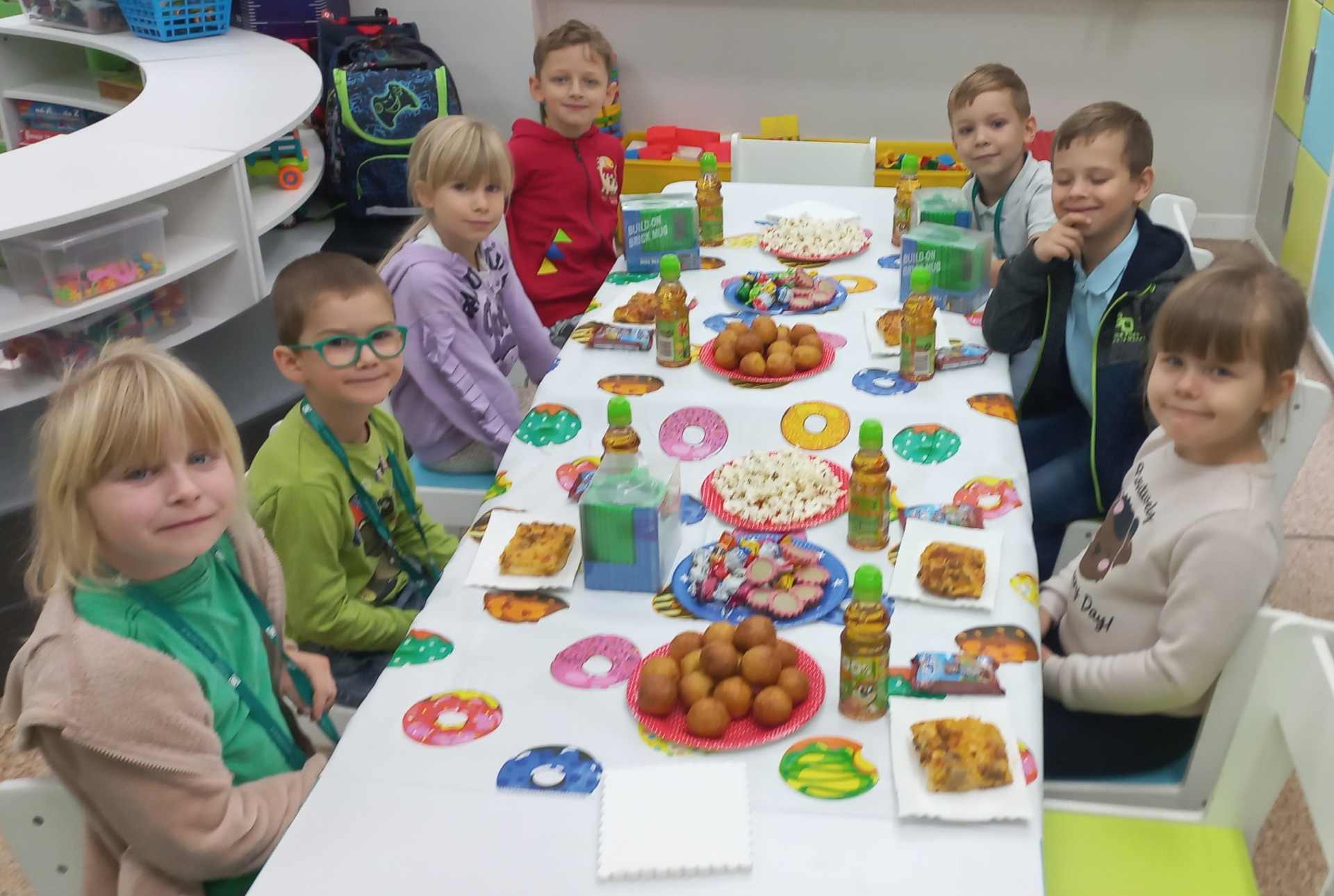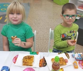 W tym dniu dziewczynki, z grupy sześciolatków, złożyły swoim kolegom życzenia, wręczyły upominki oraz mocno ich uściskały. Nie zabrakło również pysznego poczęstunku przygotowanego przez Rodziców, którym już teraz serdecznie dziękujemy !!!