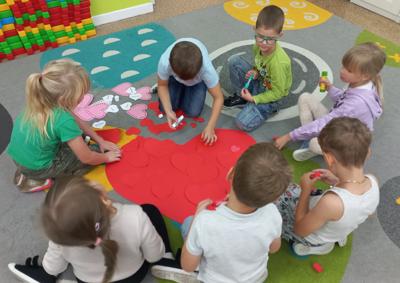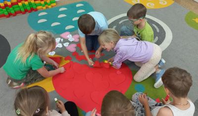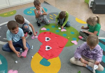 I tak nagle, jak za dotknięciem czarodziejskiej różdżki, „opuściliśmy” naszą salę przedszkolna, by już po chwili zagościć w Leśnym Przedszkolu, w którym jeżyk Roro uczył się razem z nami, jak reagować adekwatnie w trudnych sytuacjach i budować życzliwy, wspierający klimat w grupie, bo przecież pewne słowa i konkretne zachowania mogą ranić innych. Bardzo chcemy, aby relacje w naszej grupie opierały się na wzajemnej życzliwości i by wspólnie wykonane serce nam o tym przypominało.
