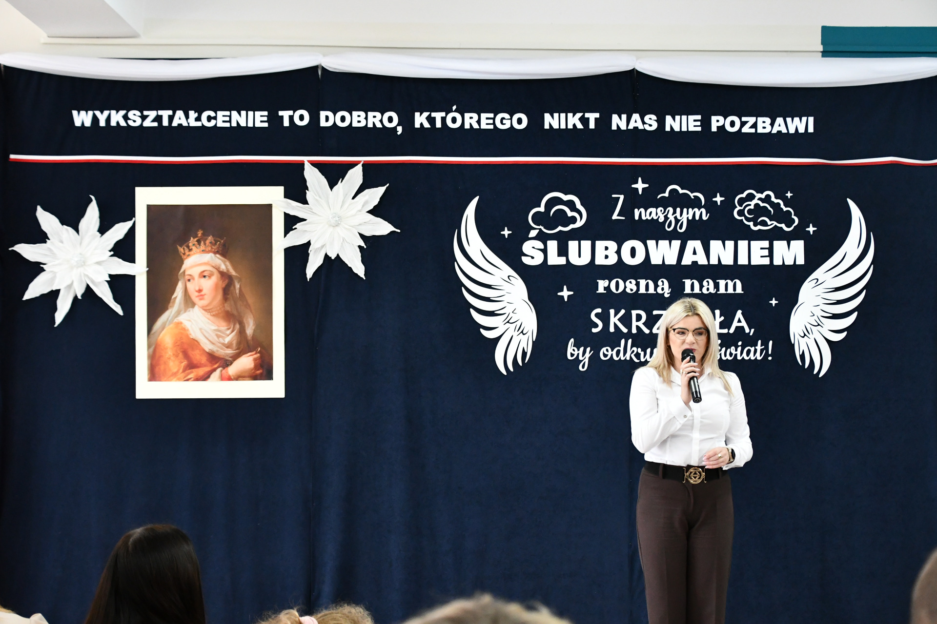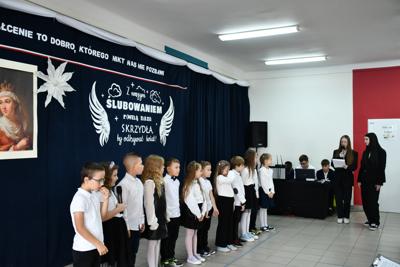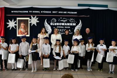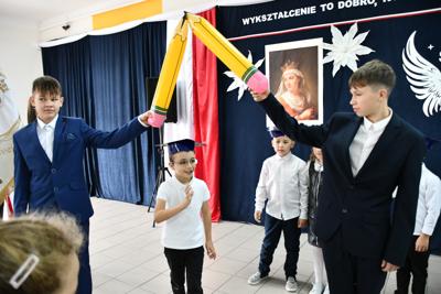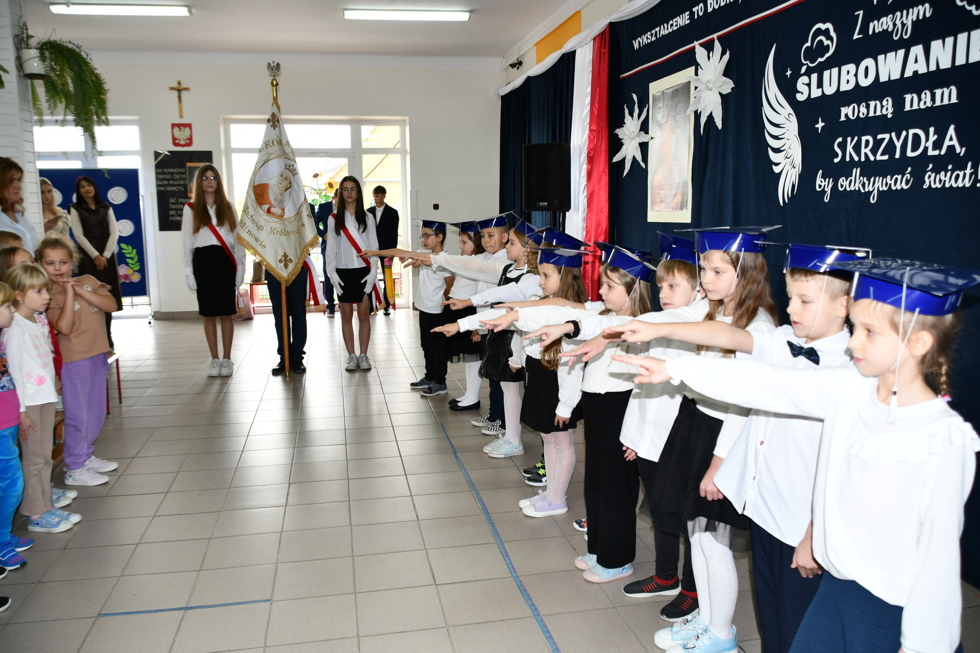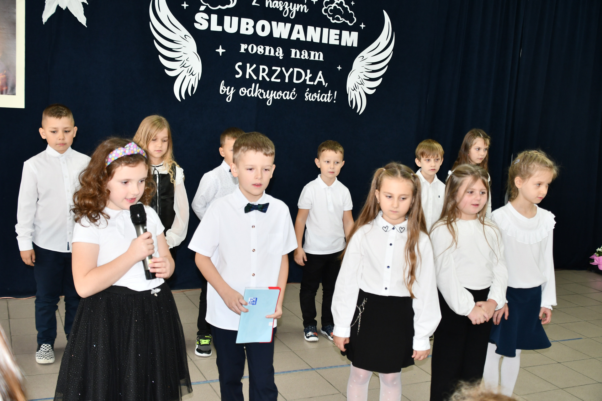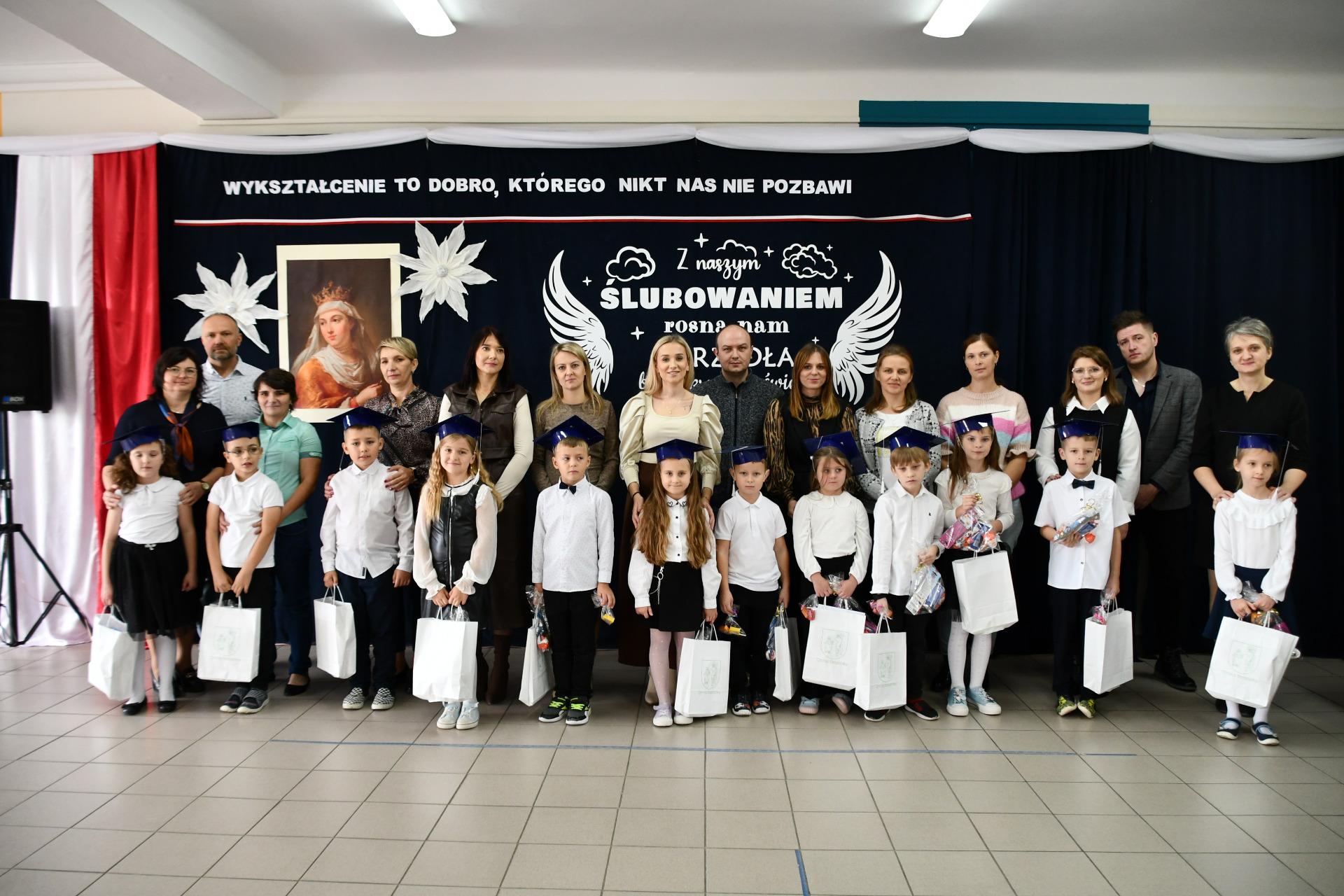 W środę 29 października 2025 r. w naszej szkole odbyła się uroczystość ślubowania klasy pierwszej. To wydarzenie zawsze wzbudza wiele emocji zarówno wśród uczniów, nauczycieli, a także rodziców. Na uroczystość przybyli zaproszeni goście : Pani Elżbieta Kowalczyk - wójt Gminy Szastarka, Pani Monika Łukasik - dyrektor GZOPO w Szastarce, nauczyciele, rodzice oraz uczniowie. Pani Dyrektor Ilona Stolarz ciepło przywitała pierwszoklasistów i życzyła im samych sukcesów w nauce, radości z bycia uczniem, wielu przyjaźni i ciekawych przygód.