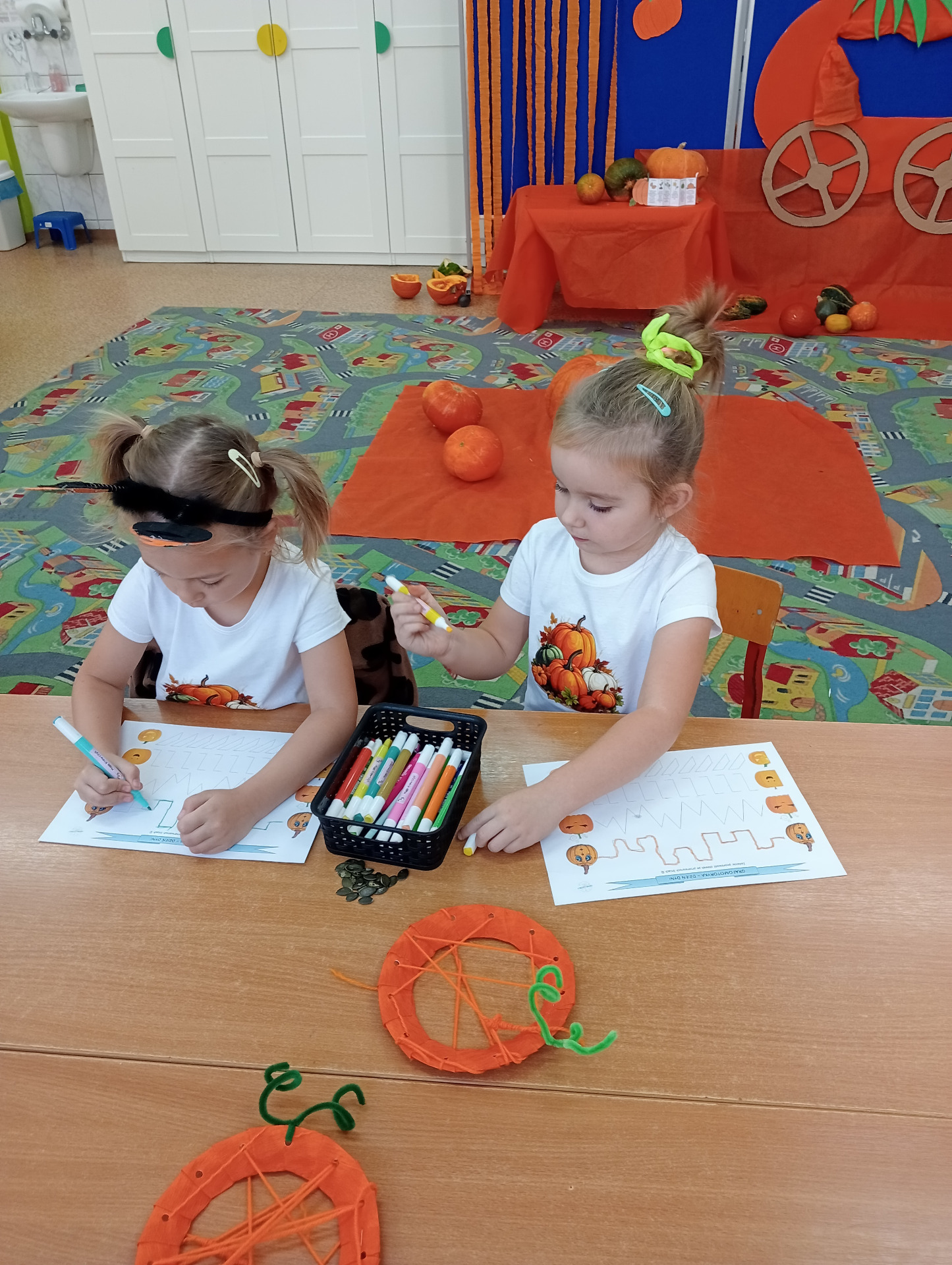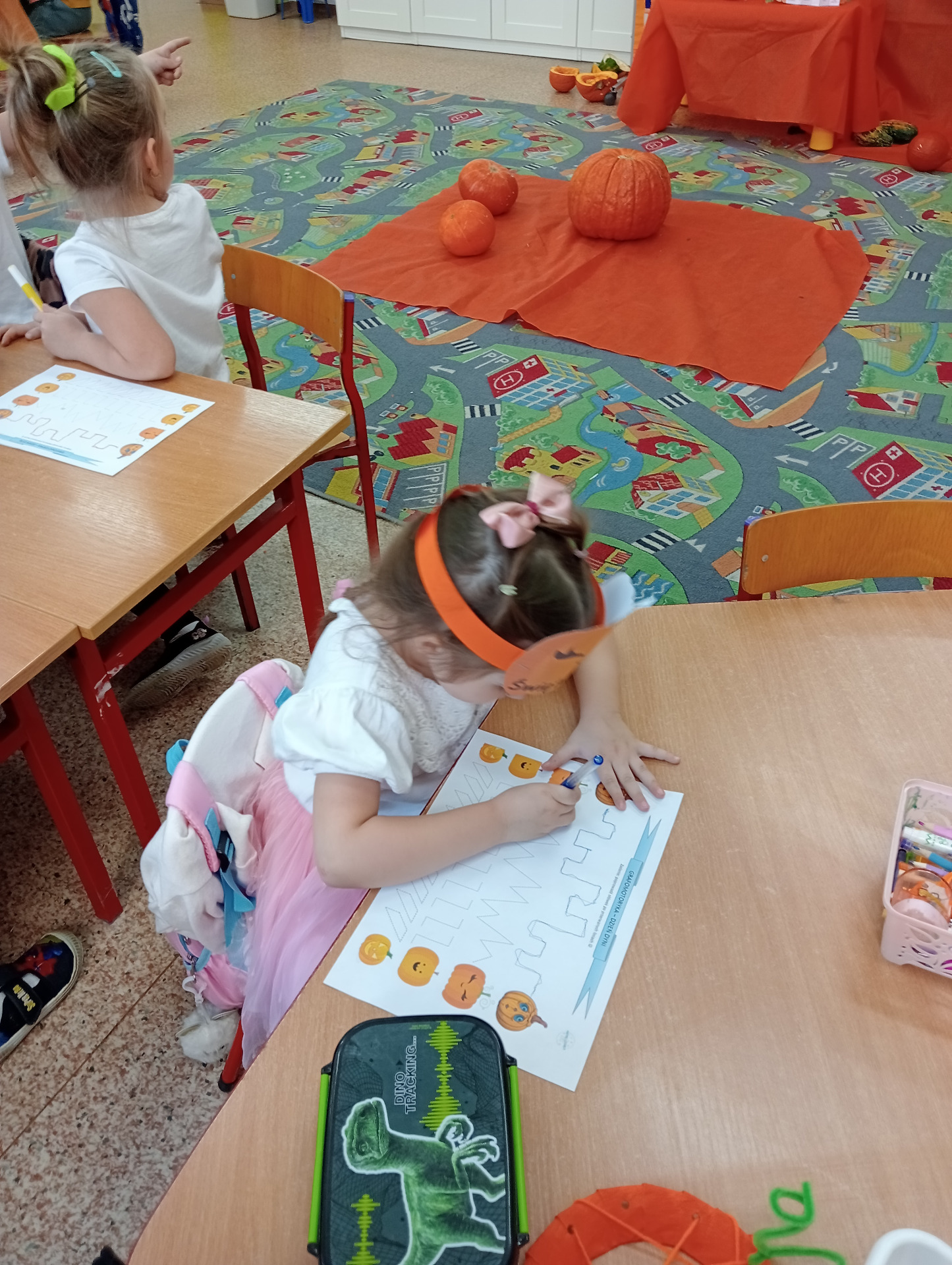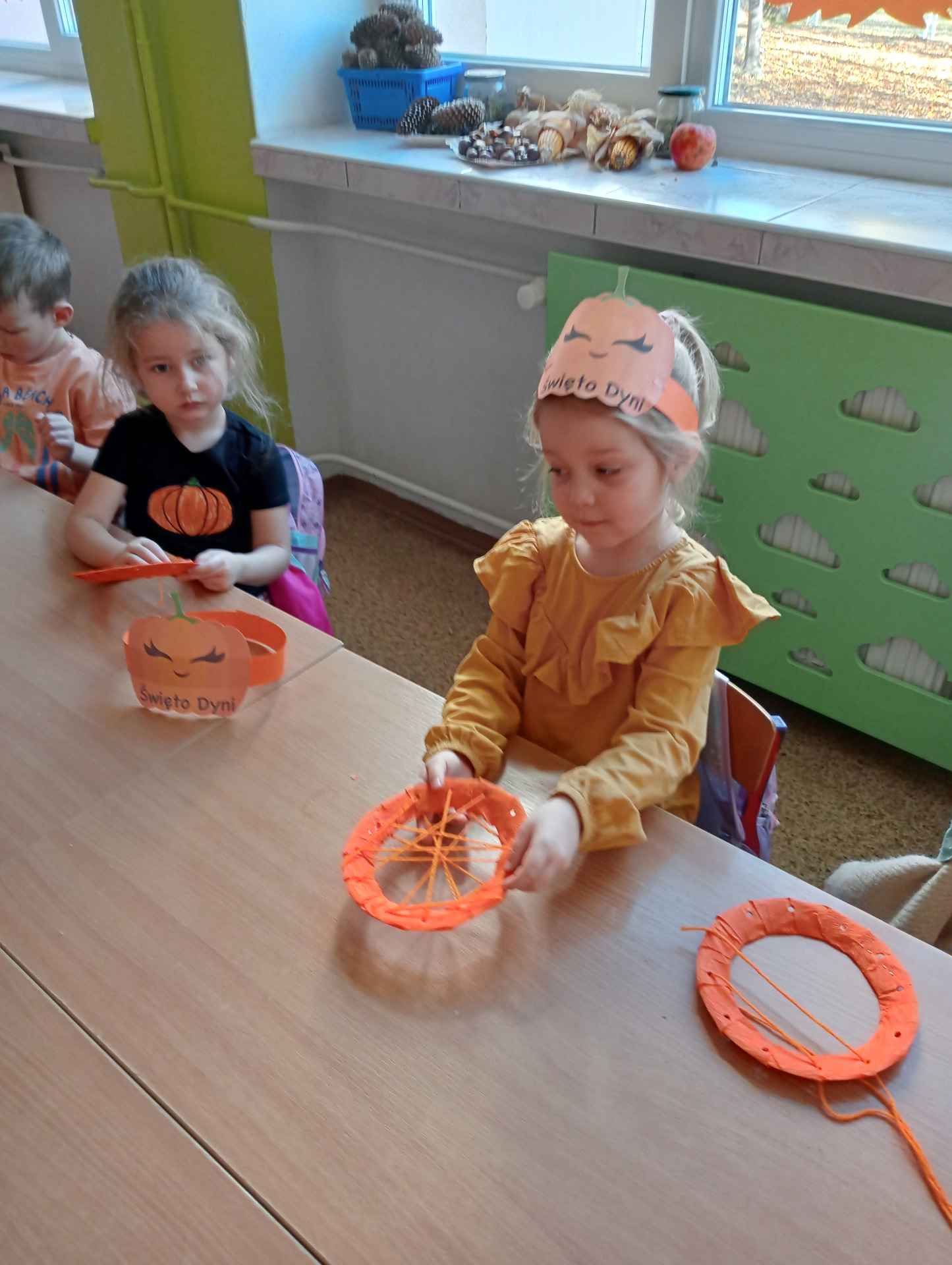 Podczas zajęć przedszkolaki wykonywały dyniowe prace plastyczne, uczestniczyły w zabawach ruchowych oraz poznawały dynię wszystkimi zmysłami. 🎨🎃