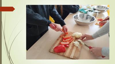 Podczas lekcji uczniowie wspólnie przygotowali dwie zdrowe sałatki, wykorzystując świeże warzywa. Praca przebiegała w miłej, pełnej zaangażowania atmosferze. Po zakończeniu kulinarnych działań wszyscy z apetytem skosztowali przygotowanych potraw – smakowały wyśmienicie!