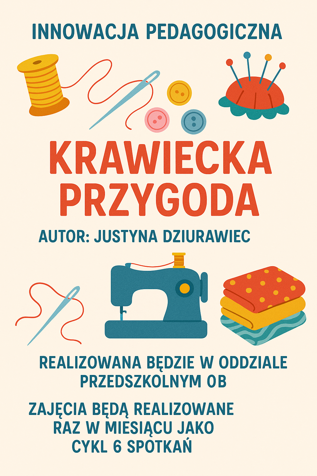 Z radością informujemy, że w oddziale przedszkolnym 0B rozpoczęła się realizacja innowacji pedagogicznej pt. „Krawiecka przygoda” autorstwa Justyny Dziurawiec.