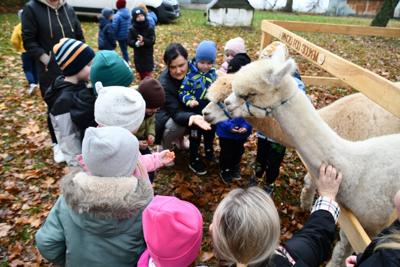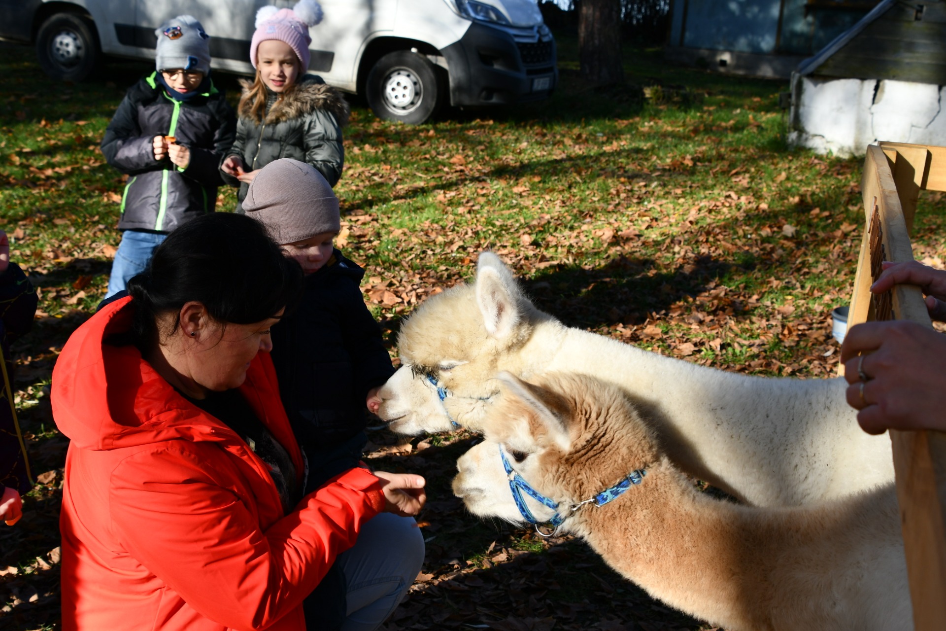 - karmić alpakę i uczyć się, jak opiekować się tymi łagodnymi zwierzętami,
