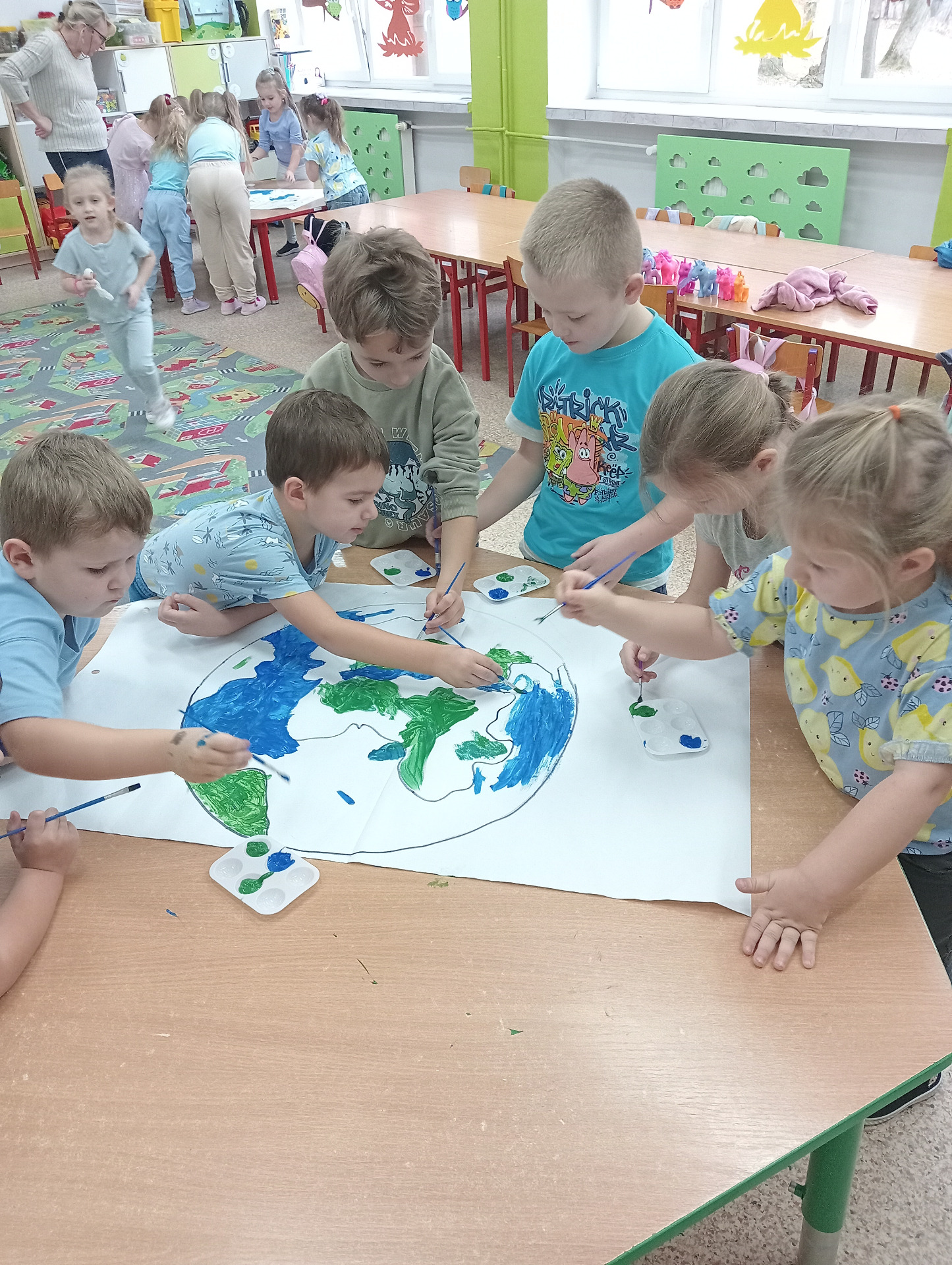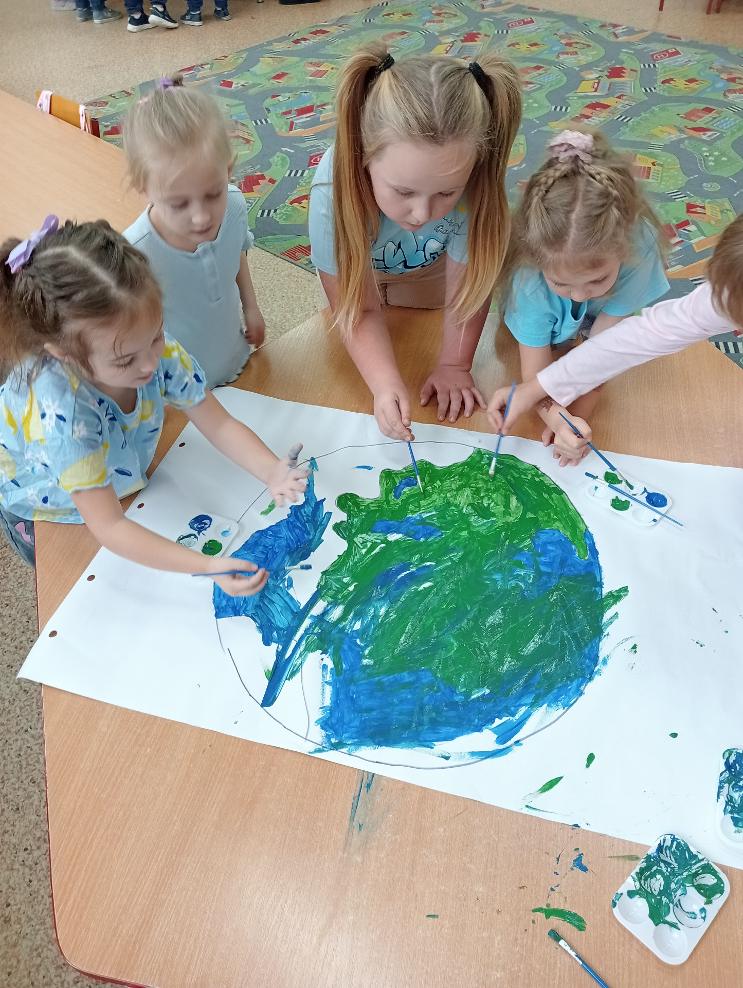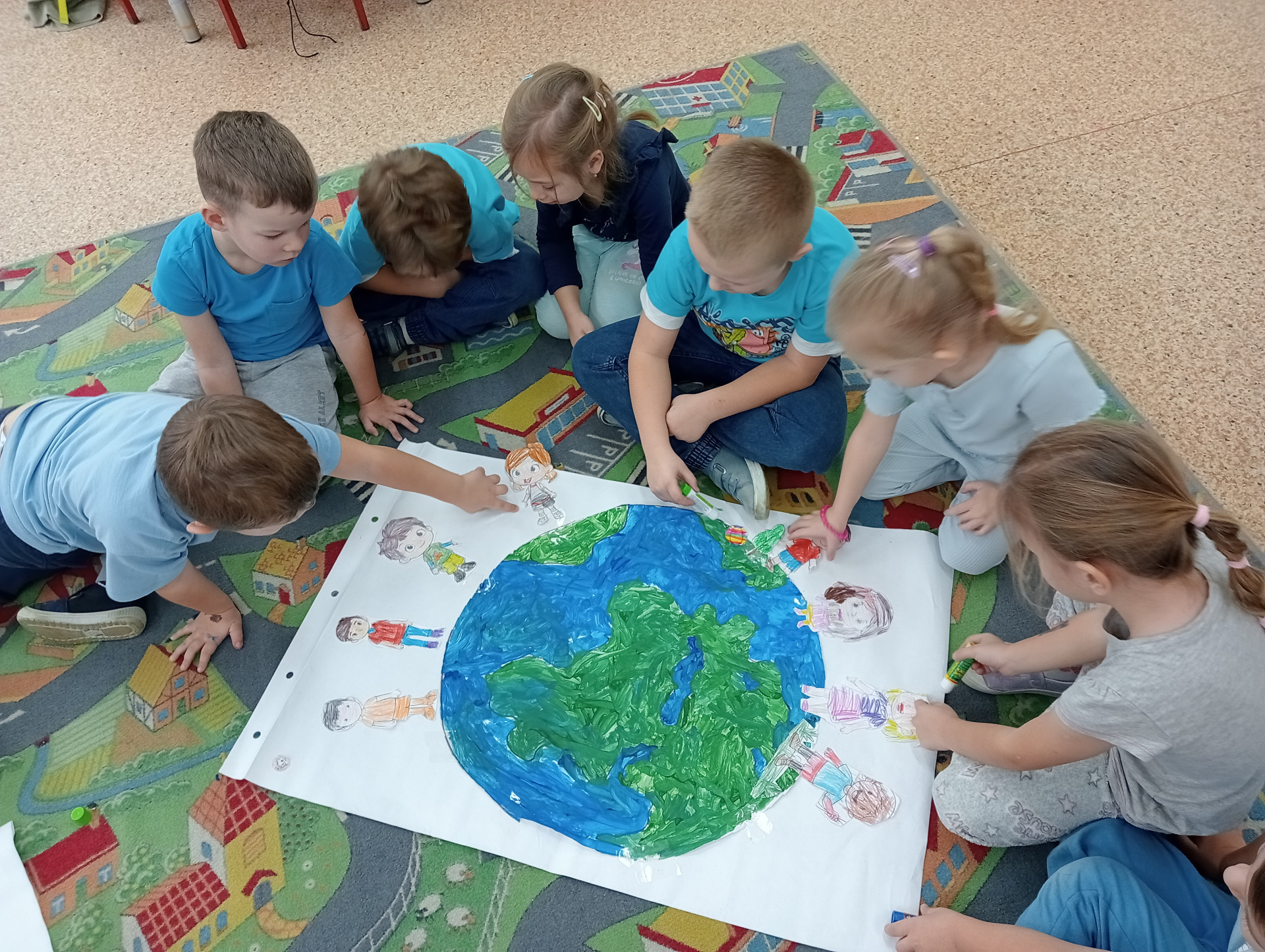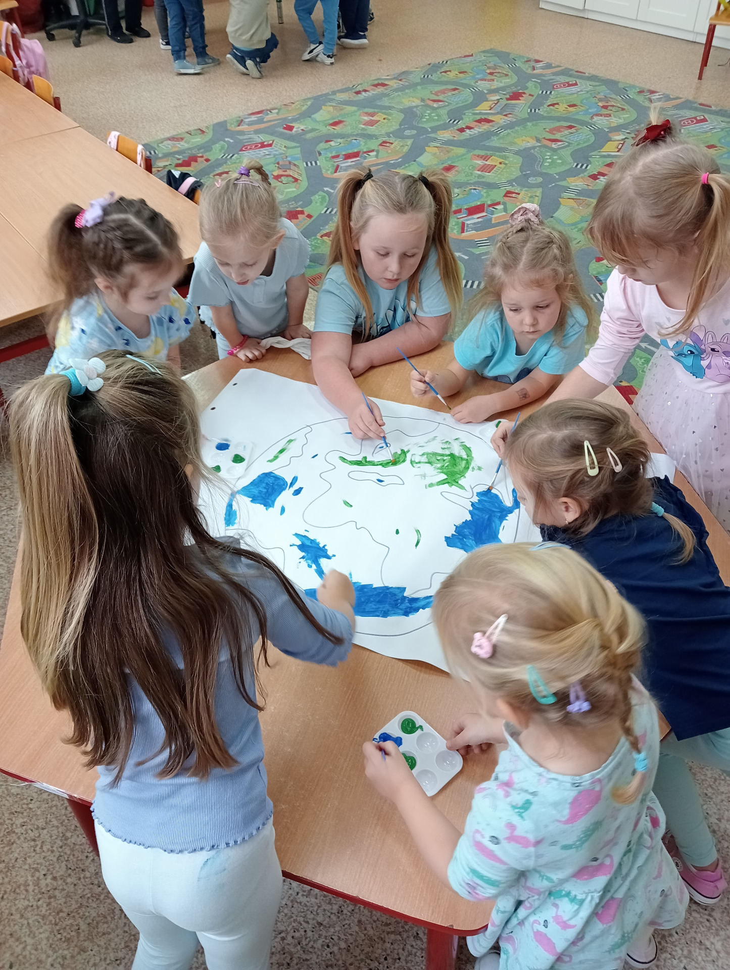 Młodsze dzieci wyruszyły w edukacyjną „Podróż Balonem” po świecie praw dziecka – odkrywały je , rozmawiały o ich znaczeniu oraz wspólnie zastanawiały się jak troszczyć się o nie w naszej szkolnej społeczności. W trakcie zajęć dzieci ilustrowały najważniejsze prawa oraz tworzyły wspólne „Drzewo Praw i Obowiązków Ucznia”.