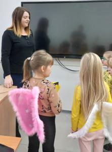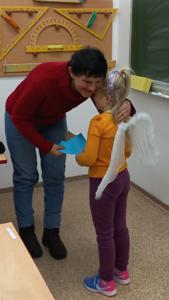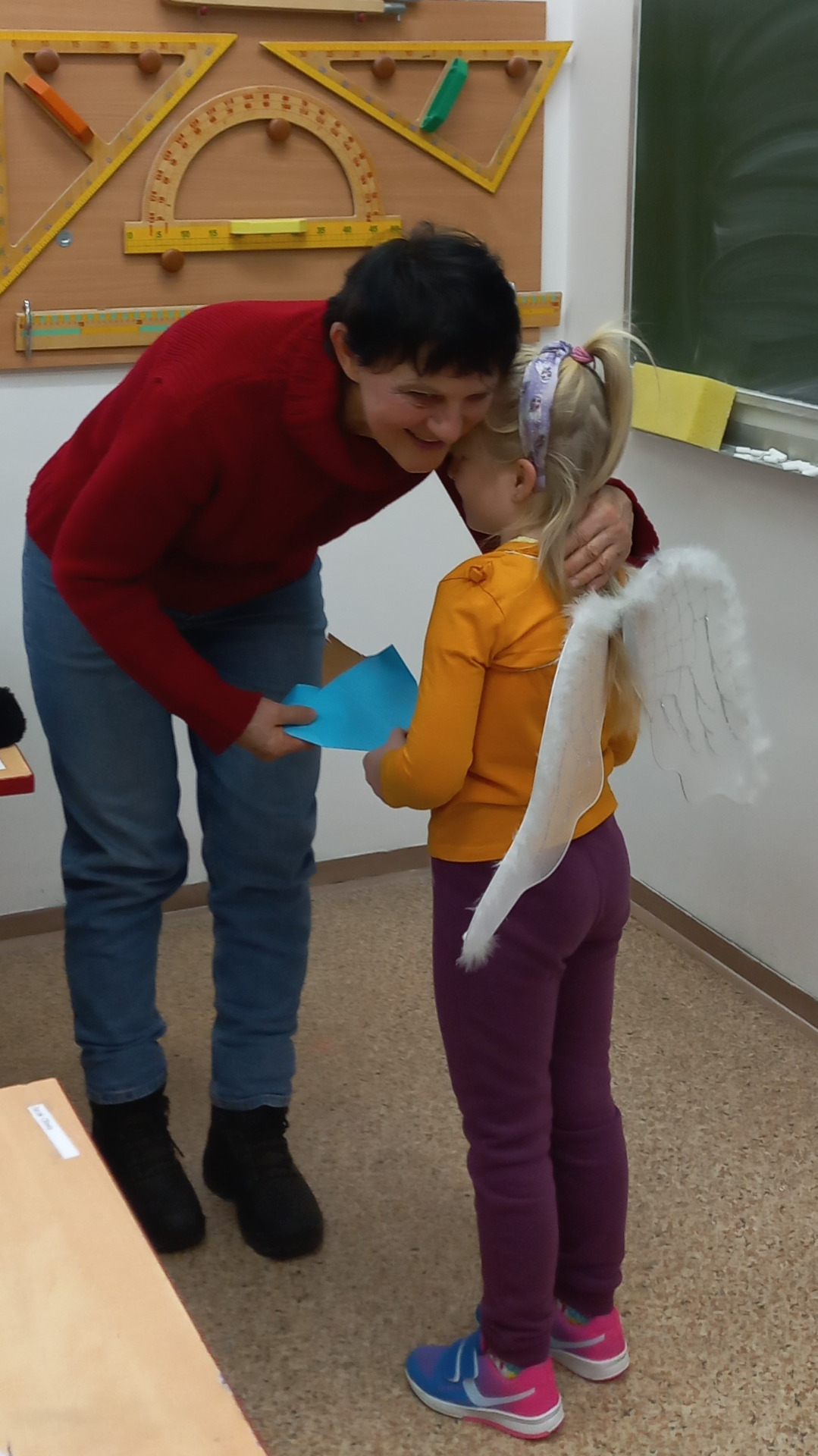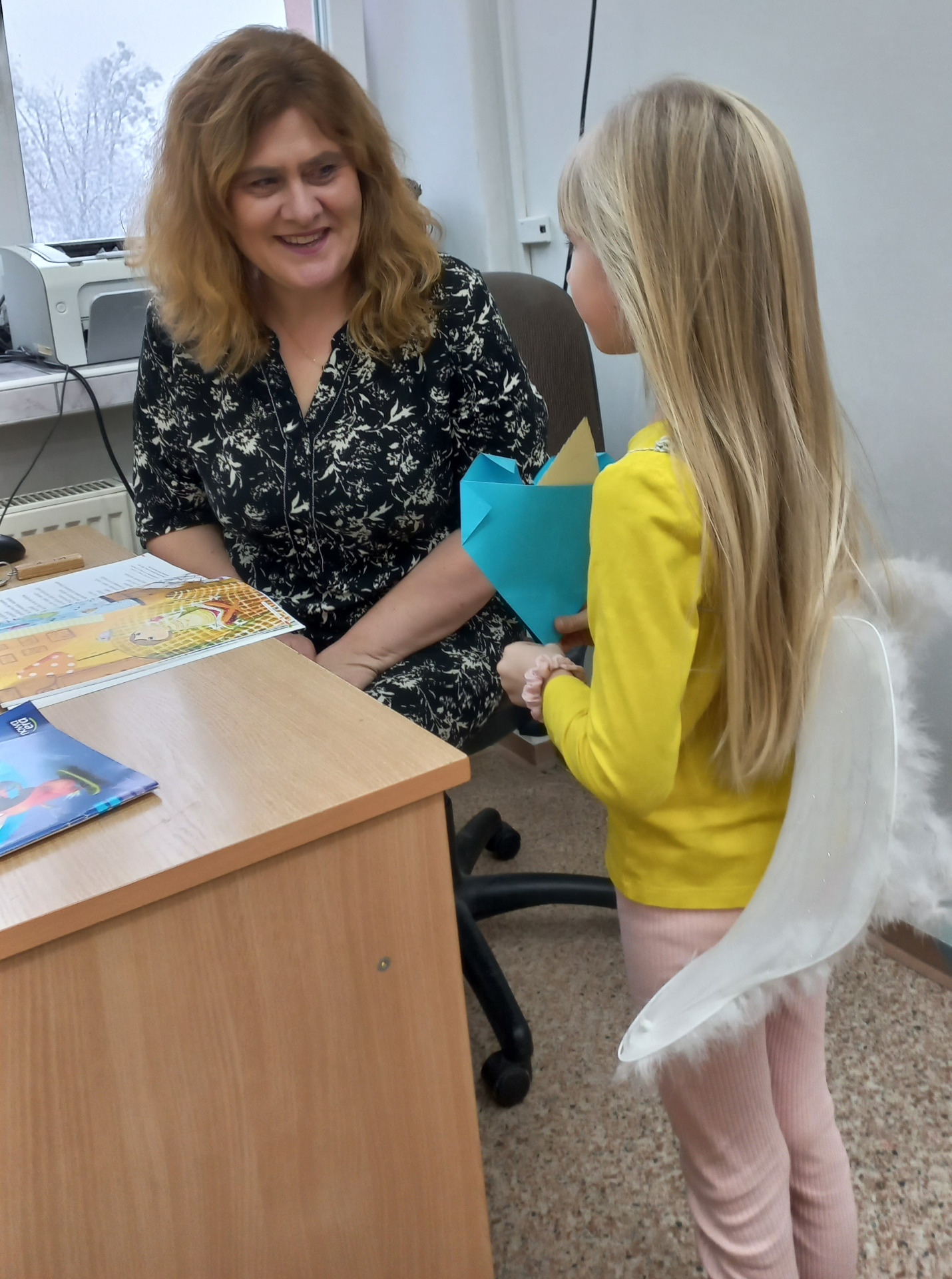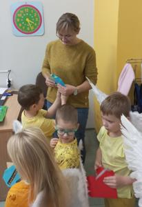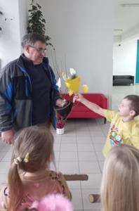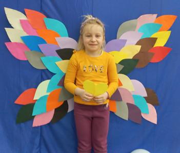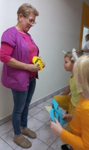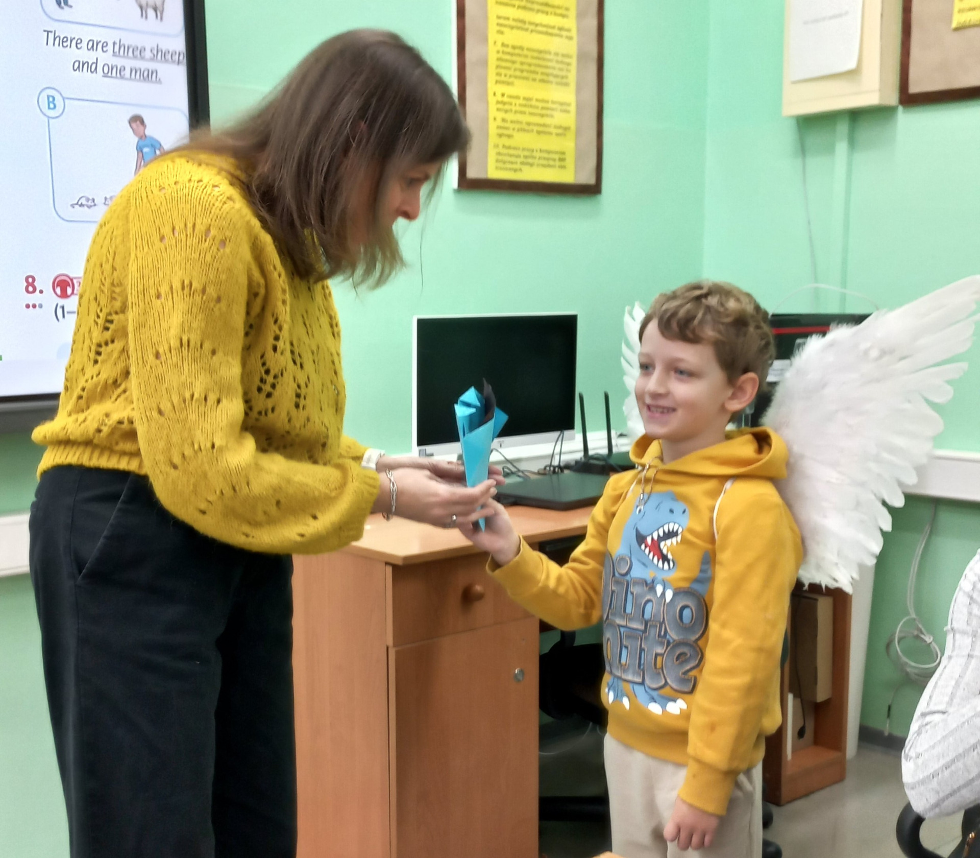Dzieci wykonały serca techniką origami i wręczyły pracownikom szkoły w ramach podziękowania za ich codzienną, życzliwą obecność. Warto nadmienić, iż z pięknych skrzydeł, które im „wyrosły,” piórka trafiały do przygotowanych serc z nadzieją, że ich docelowym miejscem będzie to prawdziwe.