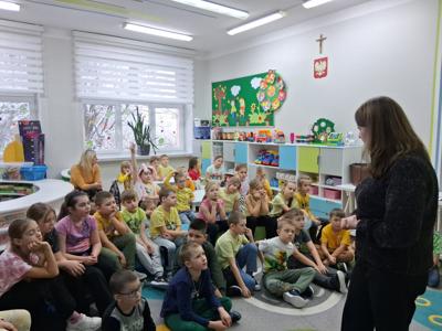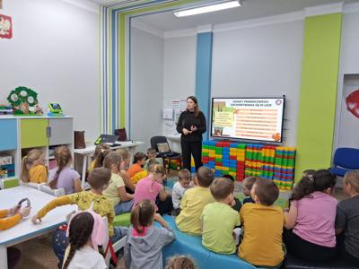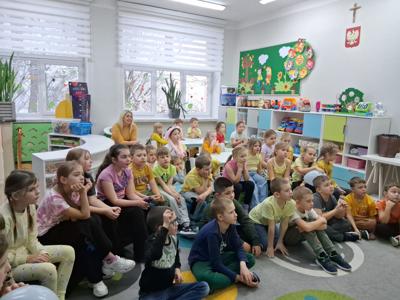 Dziś (21.11.2025 r.) odwiedziła nas Pani Nina z Powiatowej Stacji Sanitarno-Epidemiologicznej w Kraśniku, która przeprowadziła ciekawą i bardzo pouczającą pogadankę. Dzieci dowiedziały się, jak bezpiecznie zachowywać się w lesie, jak rozpoznawać grzyby jadalne, niejadalne i trujące oraz dlaczego warto być ostrożnym podczas leśnych wycieczek.