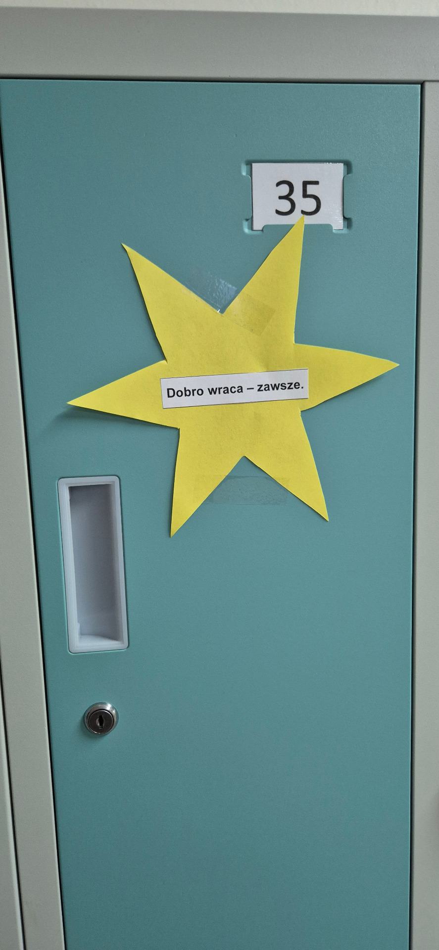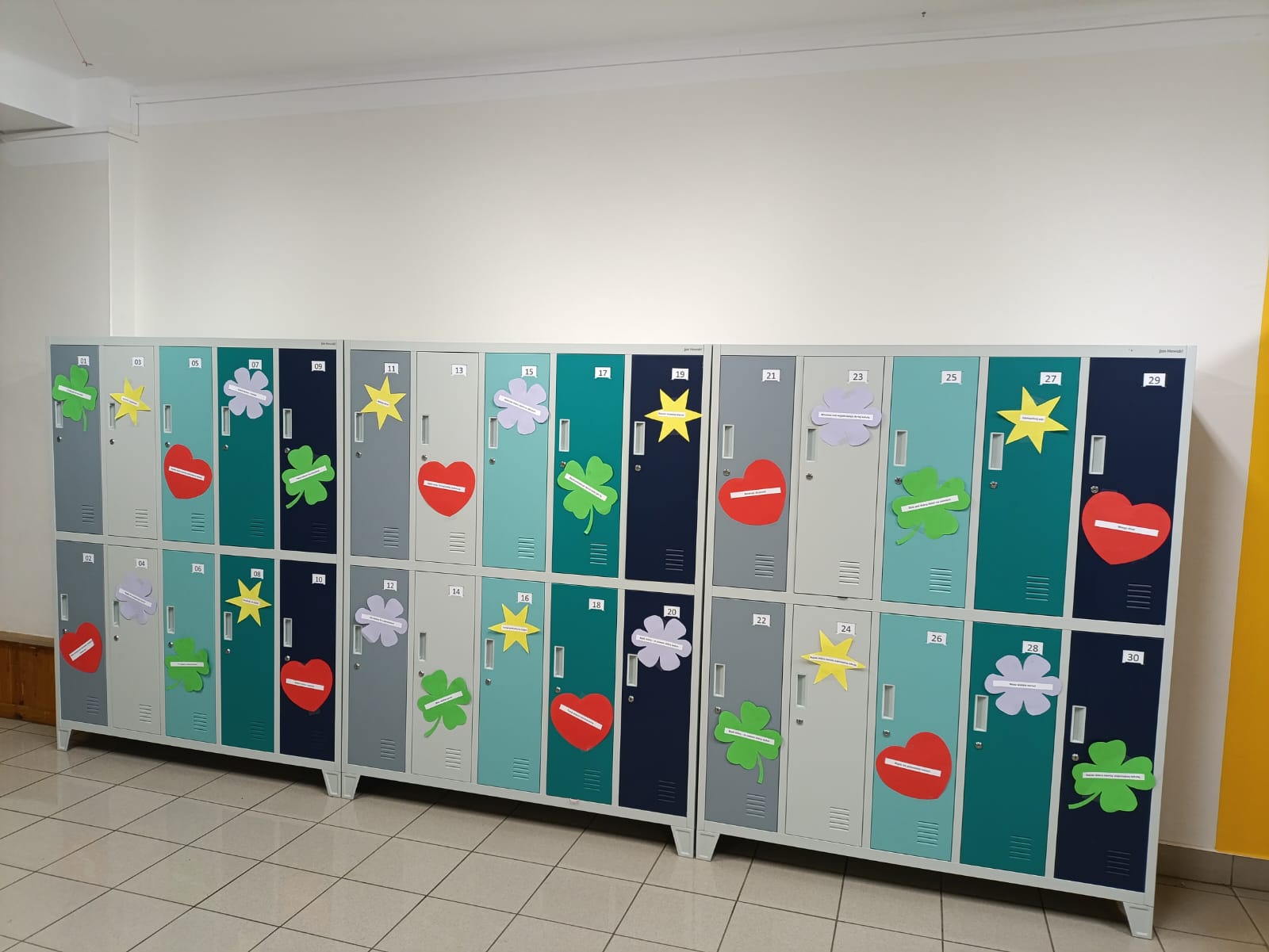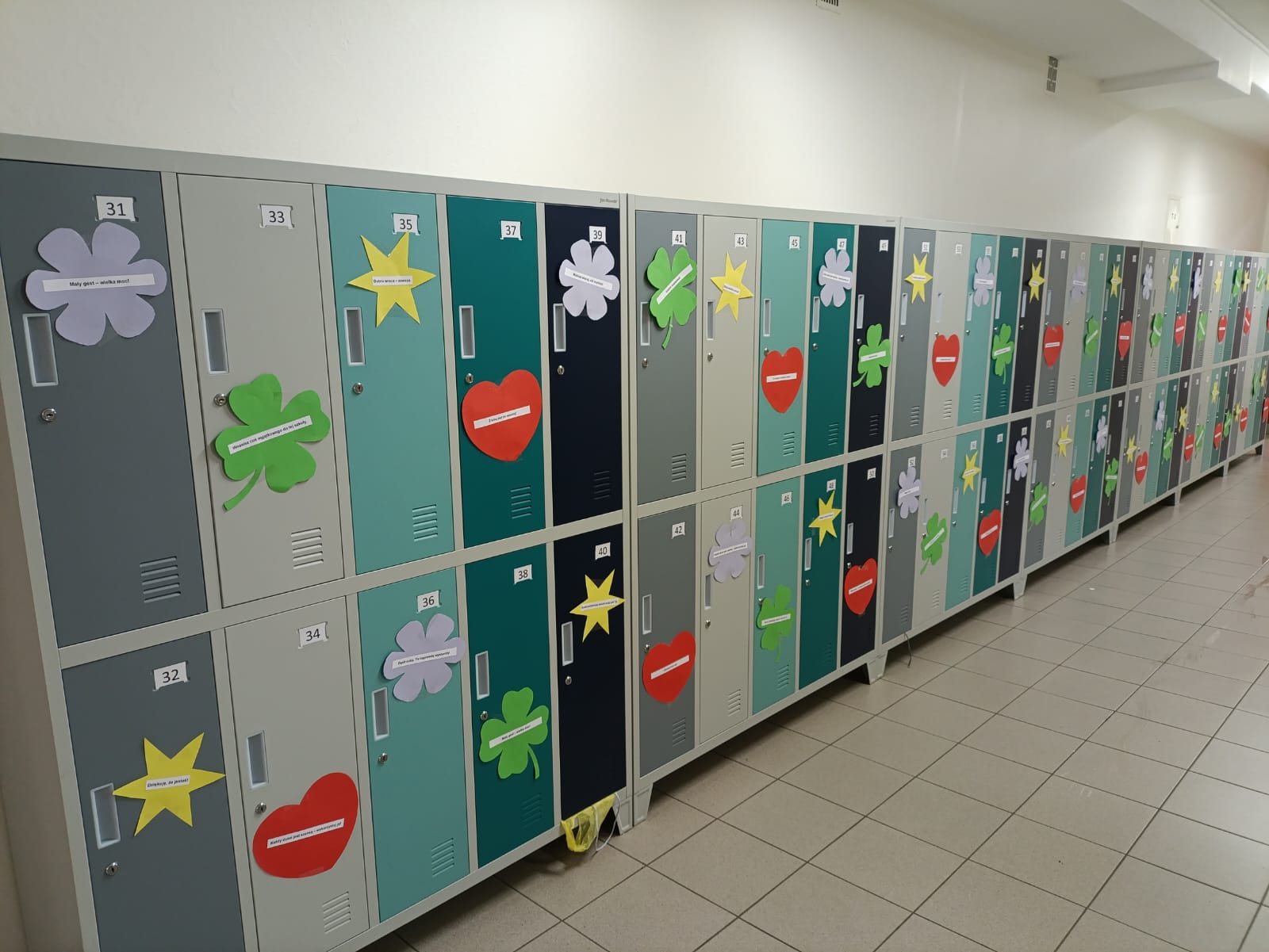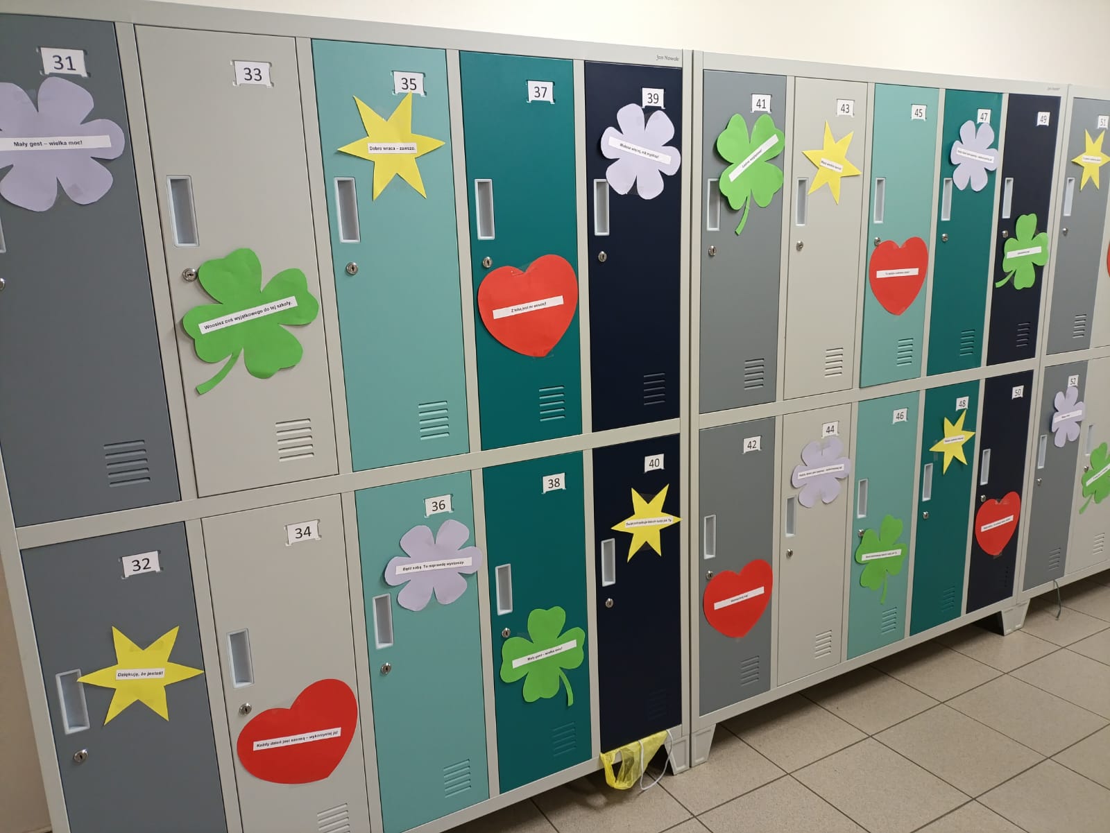 Dziś (21.11.2025 r.) na szkolnym korytarzu pojawiło się coś, co od rana dodawało uśmiechu. Na szafkach uczniów zawisły kolorowe karteczki z miłymi słowami i krótkimi, pozytywnymi myślami.