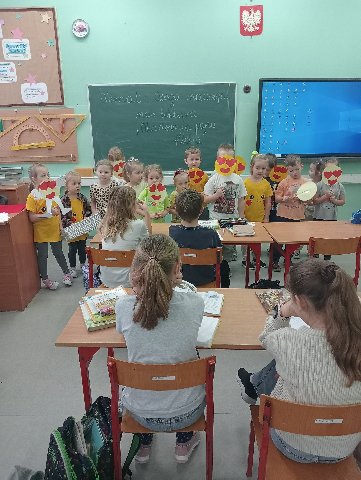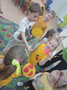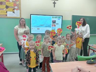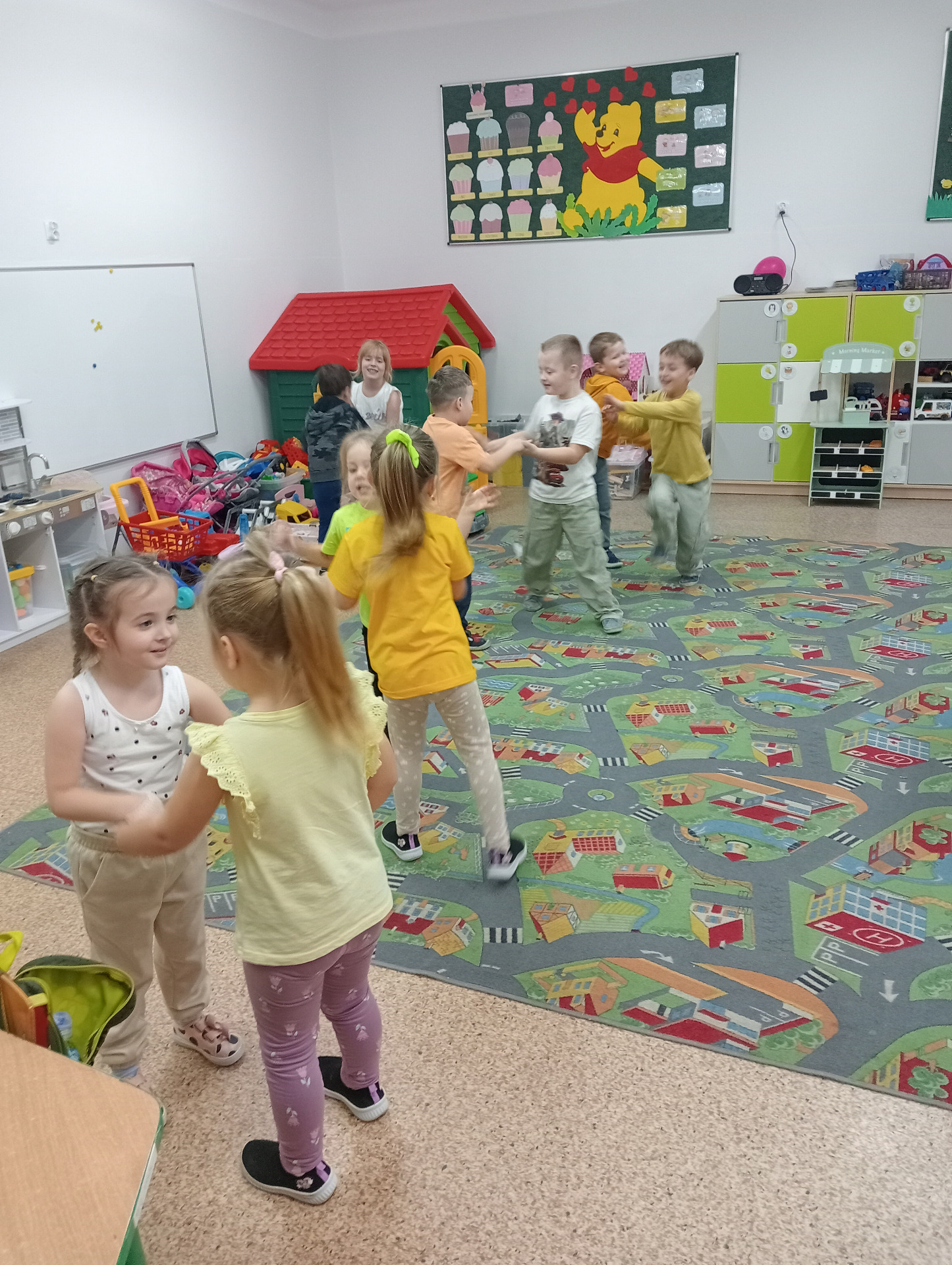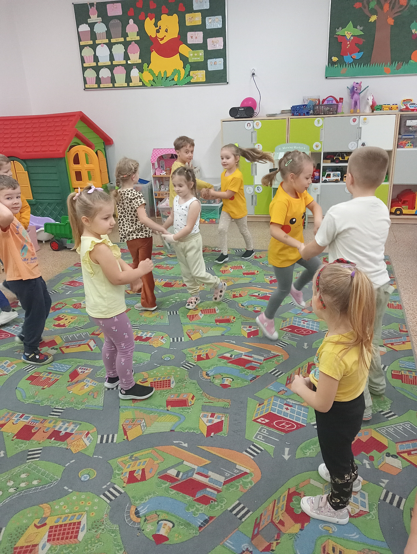 21 listopada w naszej najmłodszej grupie przedszkolnej obchodziliśmy Dzień Życzliwości, który wypełnił przedszkole radosną atmosferą i dobrymi uczynkami. Dzieci wysłuchały krótkiej rozmowy o tym, czym jest życzliwość i jak możemy okazywać ją każdego dnia😀♥️🫶. Następnie wykonały własne emotikony życzliwości – uśmiechnięte buźki ozdobione serduszkami😍. Przedszkolaki stworzyły Łańcuch Życzliwości, do którego dołączyła się cała społeczność szkolna. Każde dziecko dołączyło swoje żółte ogniwo z zapisanym miłym słowem. Wspólny łańcuch stał się symbolem jedności i wzajemnego wsparcia, pokazując, jak wiele dobrego możemy zrobić, gdy działamy razem.