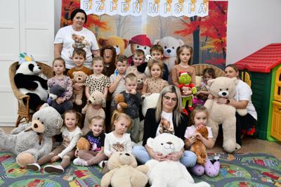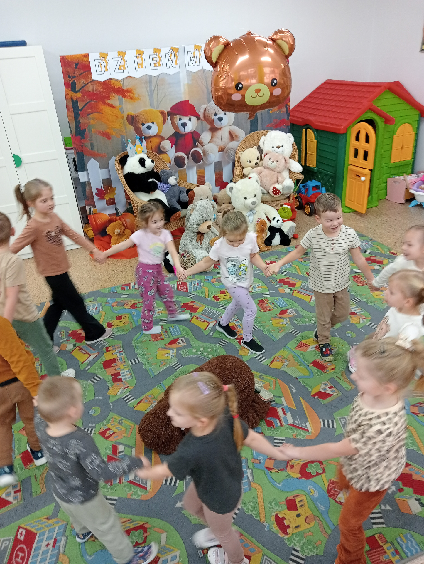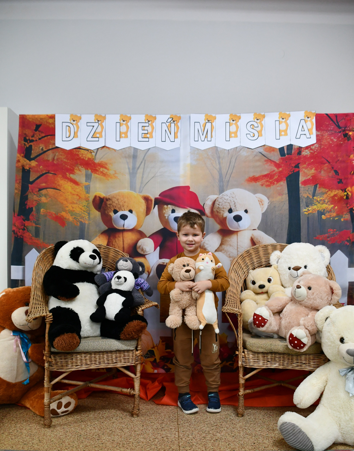 25 listopada 2025 r. przedszkolaki z dumą przyniosły swoje ukochane misie do przedszkola, które od razu wprowadziły do sali wyjątkowy, pełen czułości klimat 🧸💕. Każdy pluszak — mały, ogromny, puchaty, zabytkowy czy zupełnie nowy — mógł zaprezentować się podczas pamiątkowej sesji zdjęciowej 📸. Nie zabrakło także tańców oraz wspólnych zabaw przy wesołych piosenkach o misiach 🎶🐻.