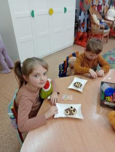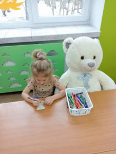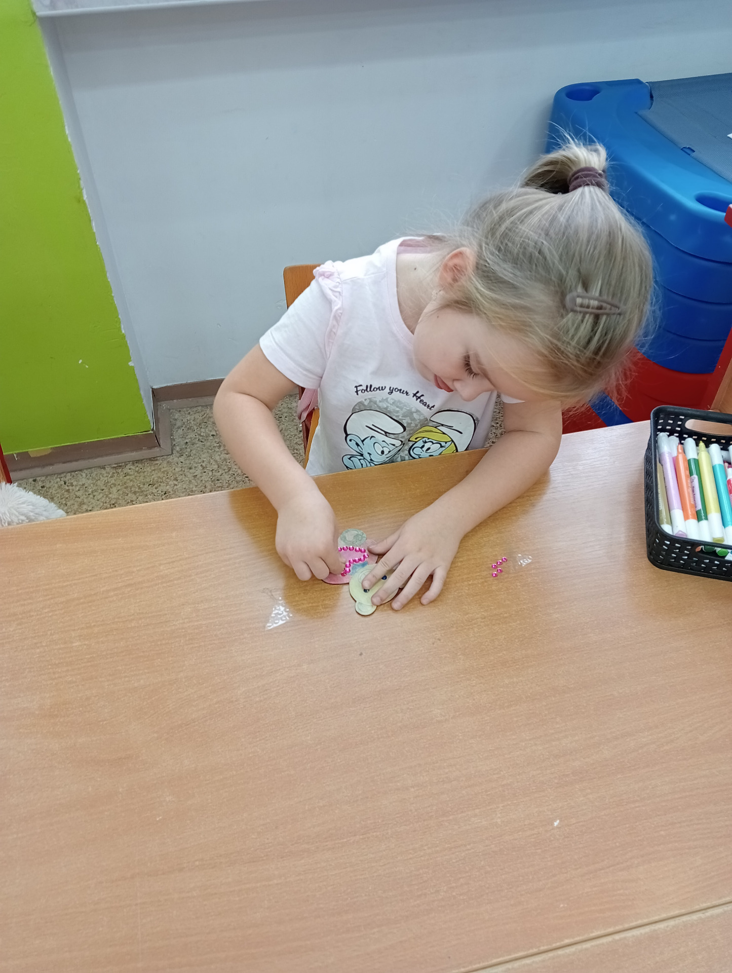 Jednym z punktów dnia były warsztaty plastyczne, podczas których dzieci ozdabiały sylwetę misia kolorowymi cekinami. Tworzenie błyszczących prac rozwijało kreatywność i sprawiło dzieciom mnóstwo radości! Nie zabrakło również aktywności edukacyjnych, w tym zadań matematycznych w misiowej odsłonie 🔢🧸