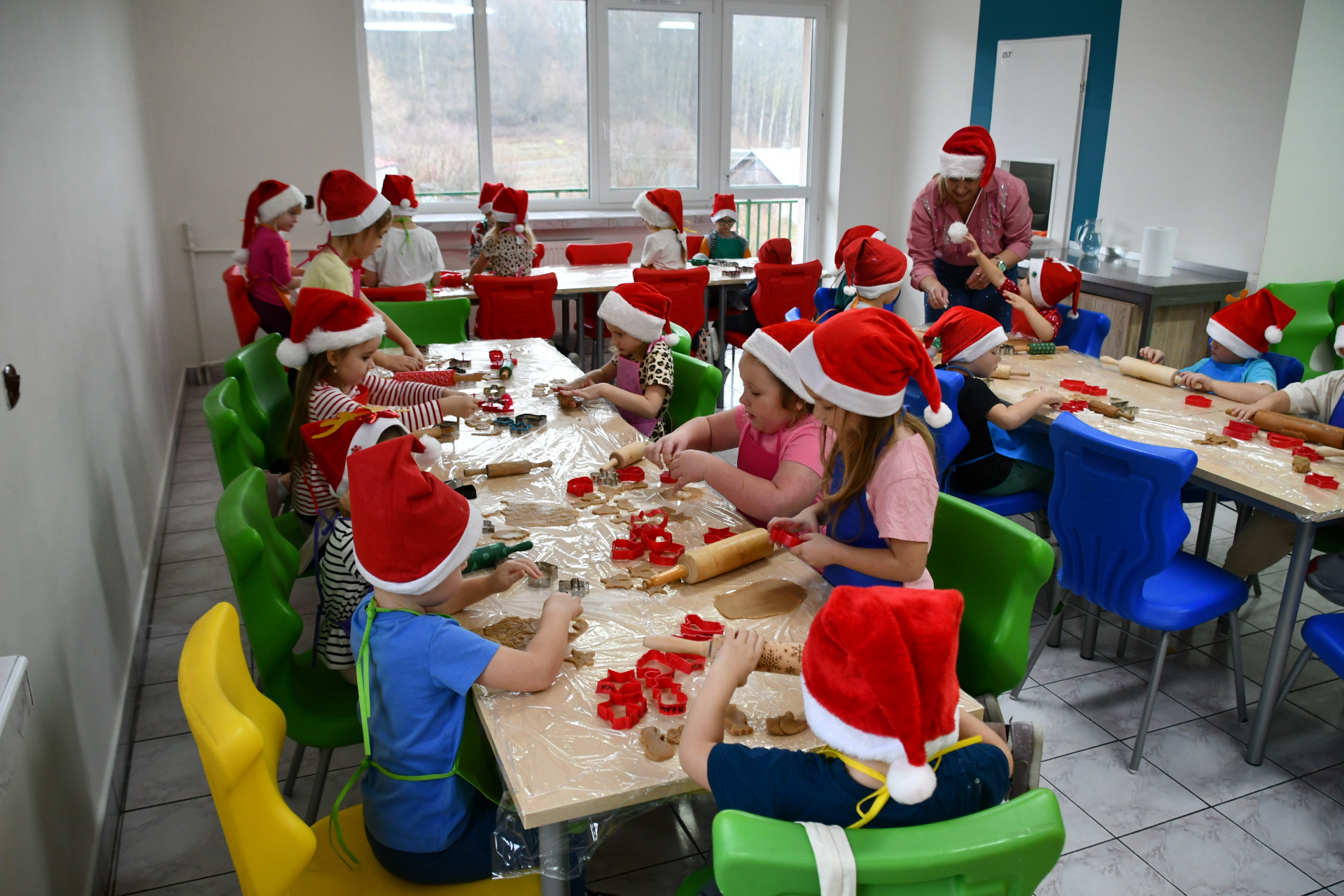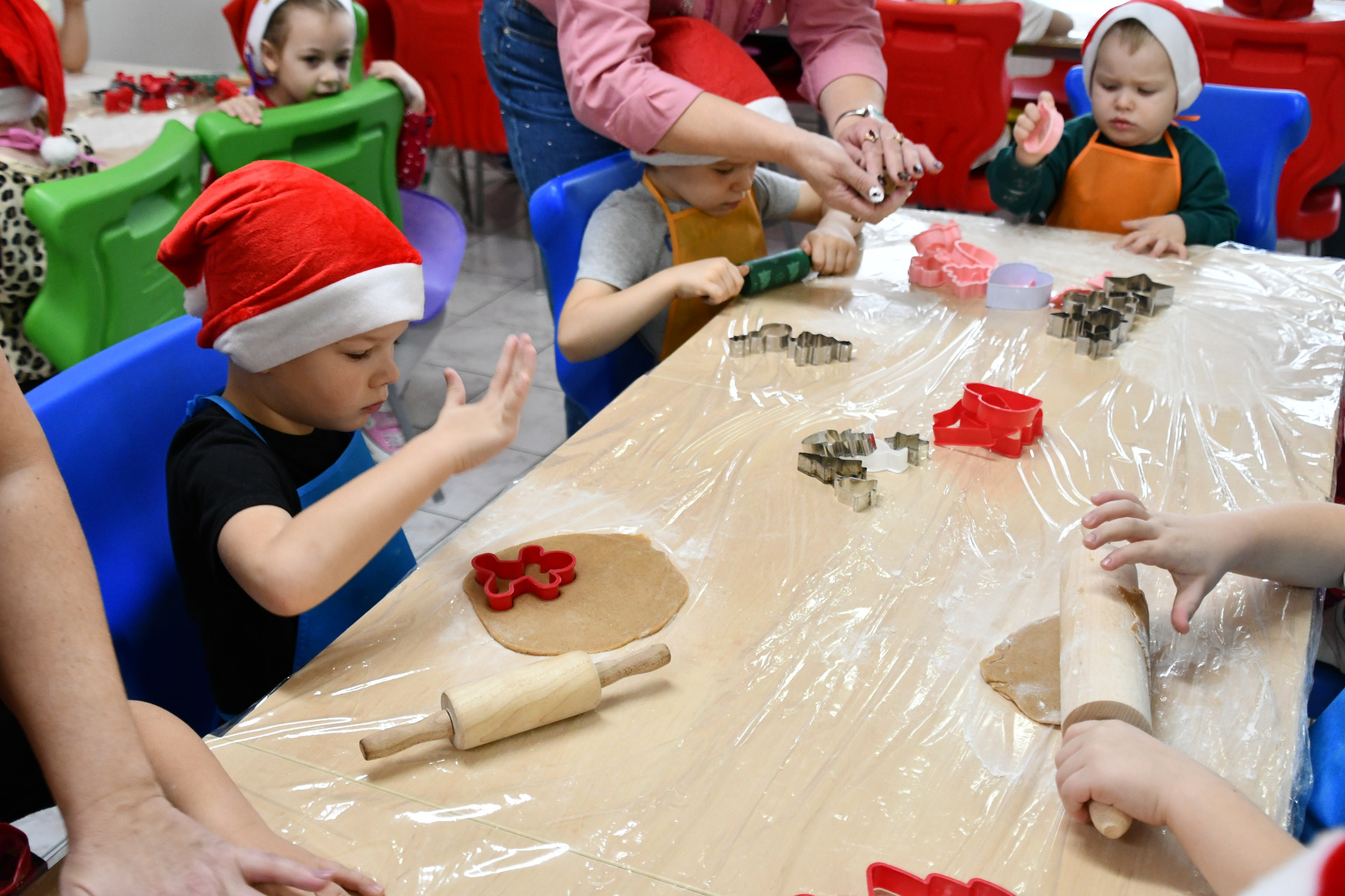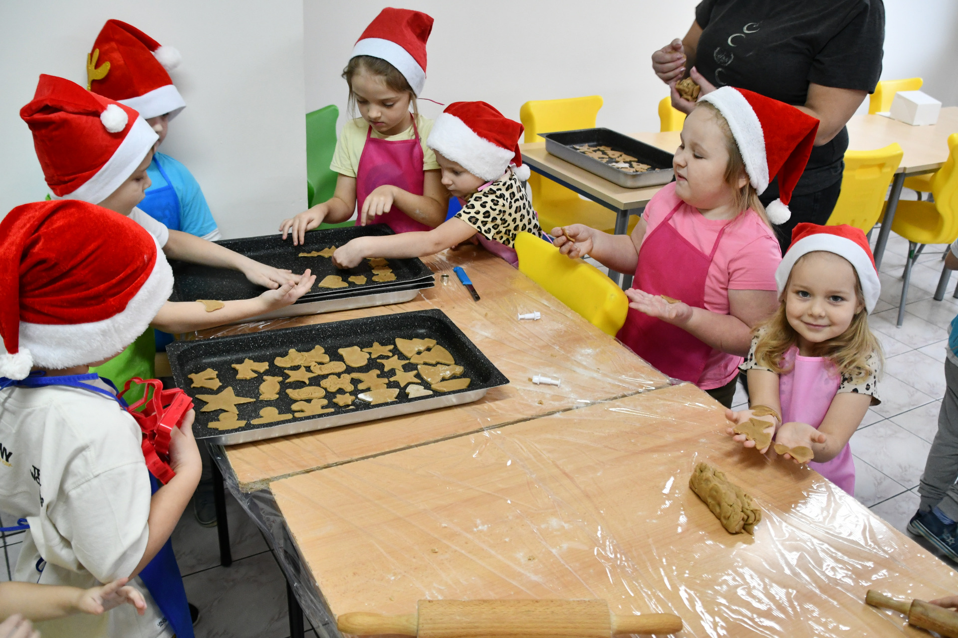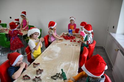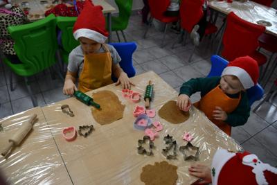 02 grudnia nasze przedszkolaki uczestniczyły w niezwykłych, warsztatowych zajęciach wykrawania, pieczenia i dekorowania tych słodkości. Warto nadmienić, iż pieczenie pierniczków to nie tylko przyjemność dla podniebienia, ale również doskonała okazja do rozwijania różnych umiejętności, w tym kulinarnych i artystycznych. Proces przygotowywania ciasta, formowania kształtów i dekorowania oferuje szereg interaktywnych elementów, które wspomagają rozwój.