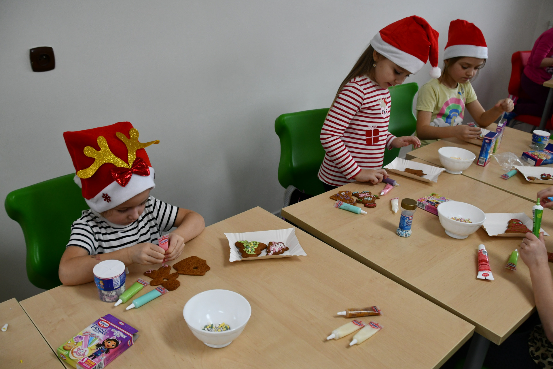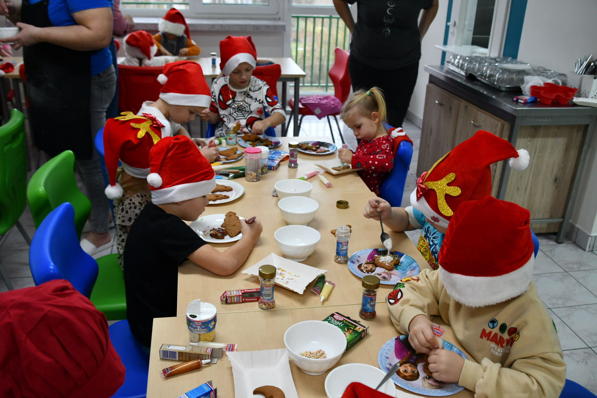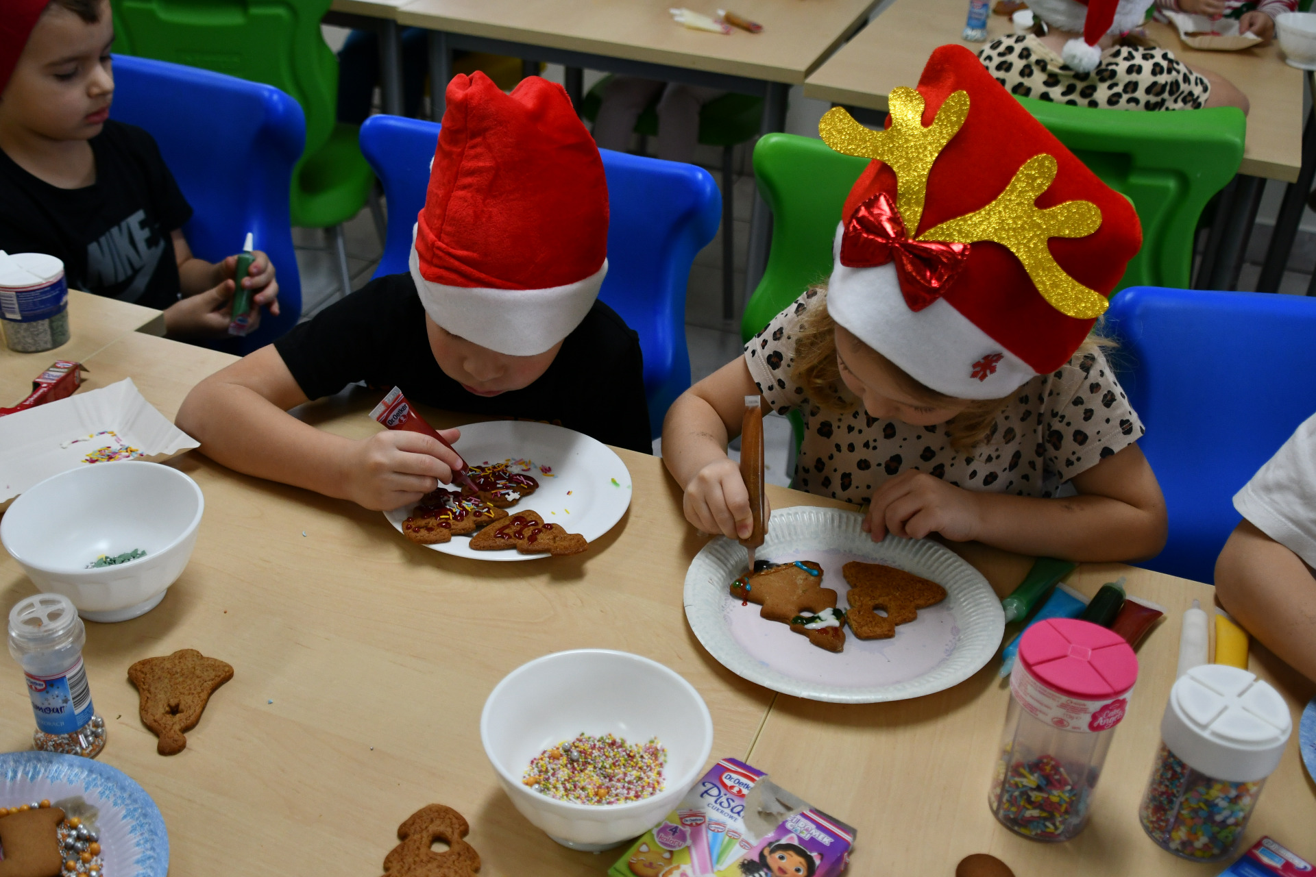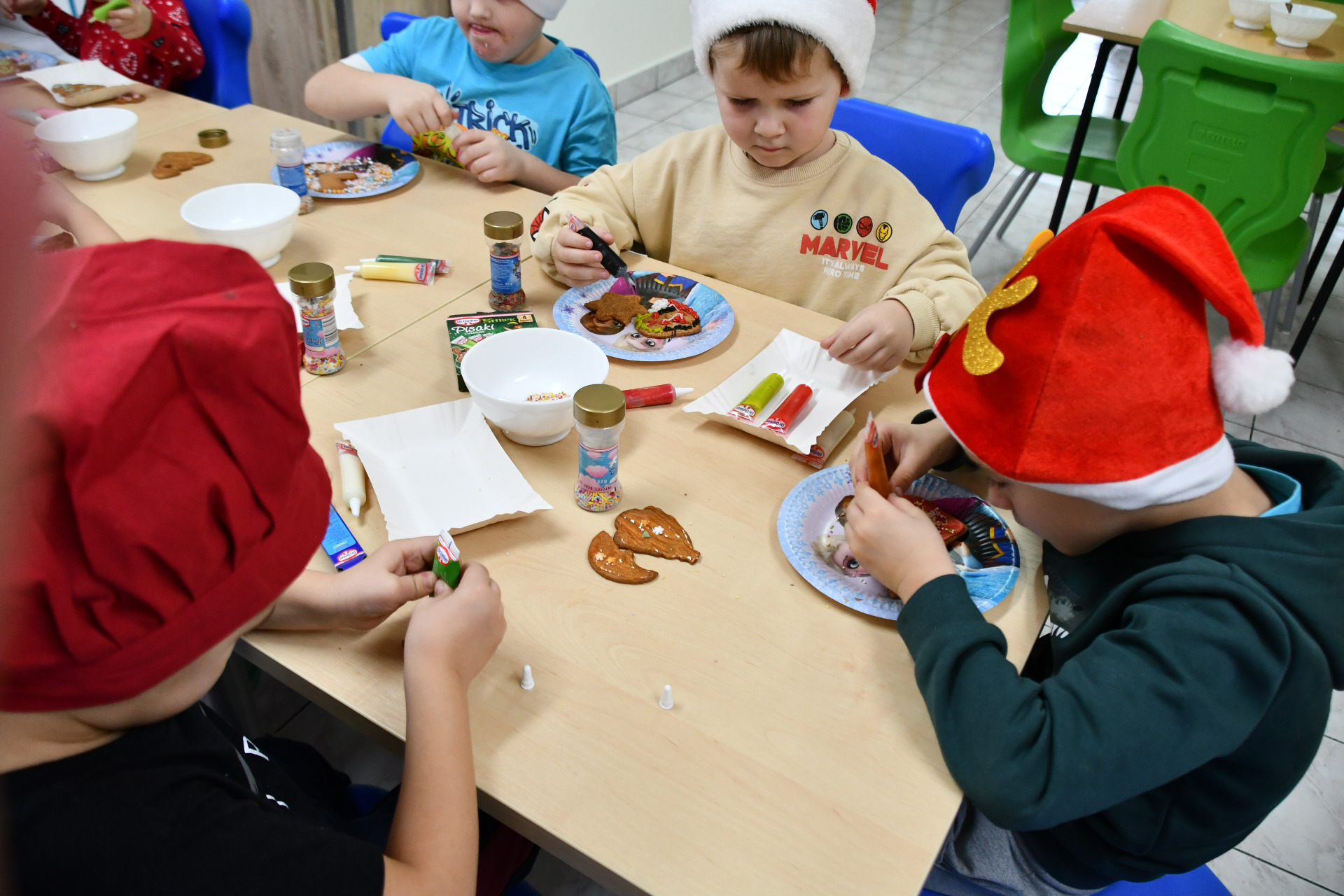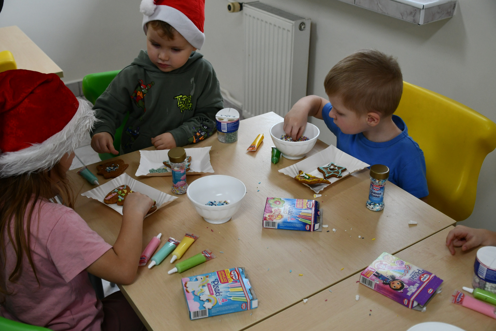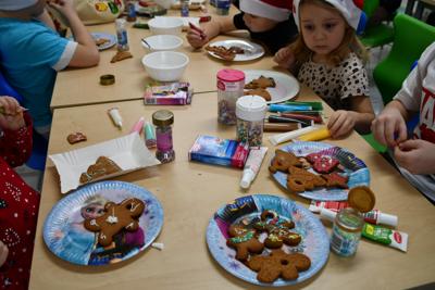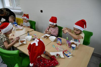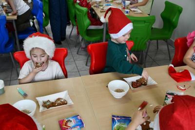 Każde dziecko miało okazję wyrazić swoją kreatywność dekorując pierniczki kolorowymi lukrami i posypkami. Wielka radość malowała się na twarzach, kiedy spod małych rączek wychodziły prawdziwe arcydzieła, a wspólna praca sprzyjała integracji i budowaniu międzygrupowych relacji, o smaku nie wspominając.