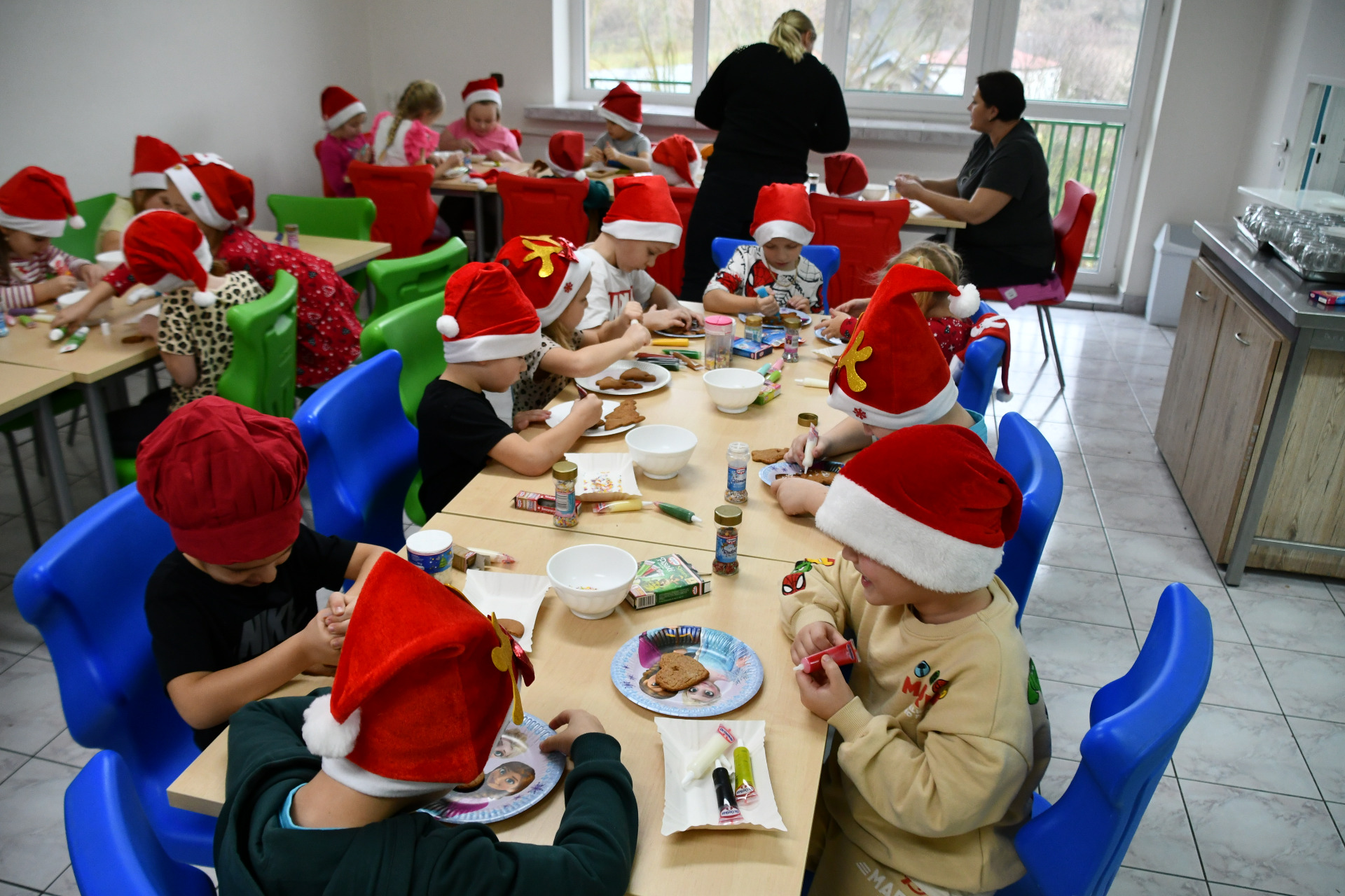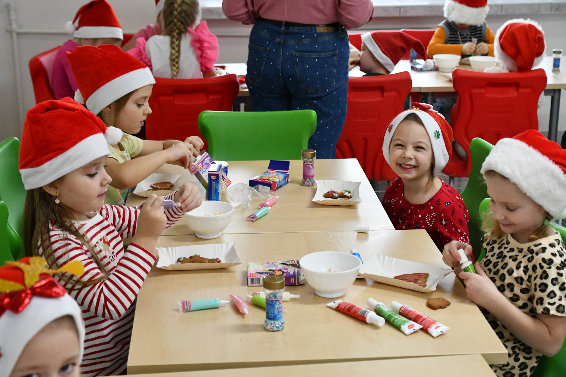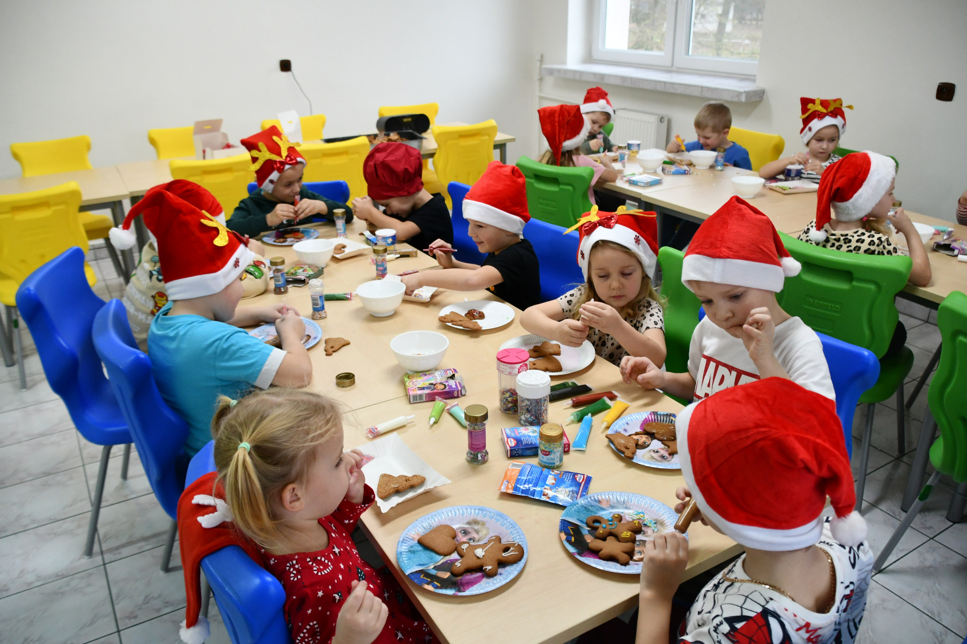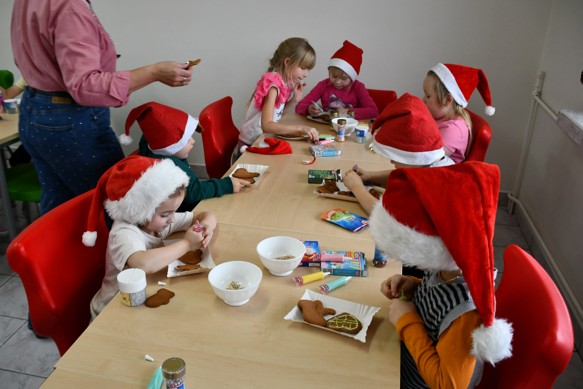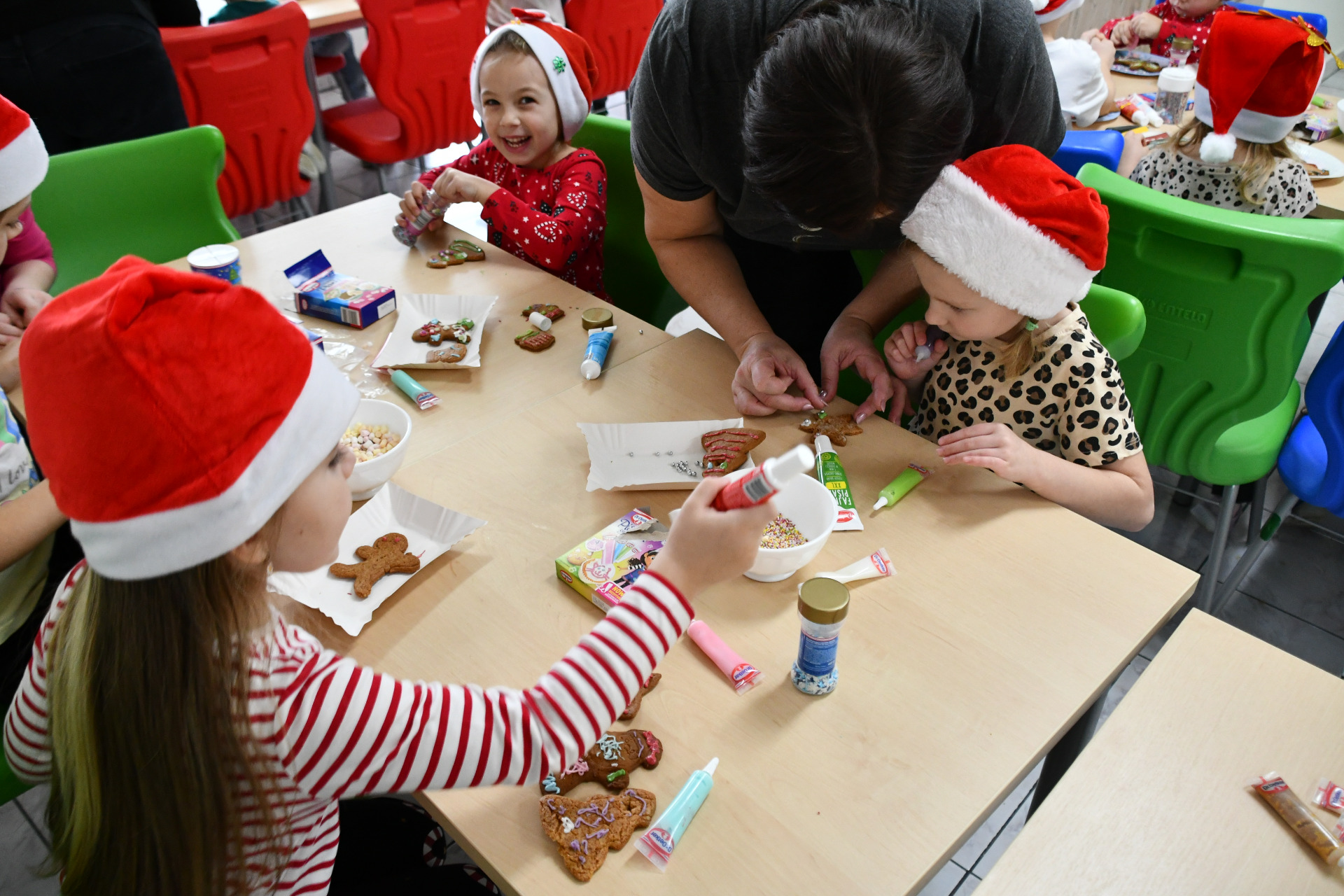 Każde dziecko miało okazję wyrazić swoją kreatywność dekorując pierniczki kolorowymi lukrami i posypkami. Wielka radość malowała się na twarzach, kiedy spod małych rączek wychodziły prawdziwe arcydzieła, a wspólna praca sprzyjała integracji i budowaniu międzygrupowych relacji, o smaku nie wspominając.