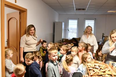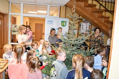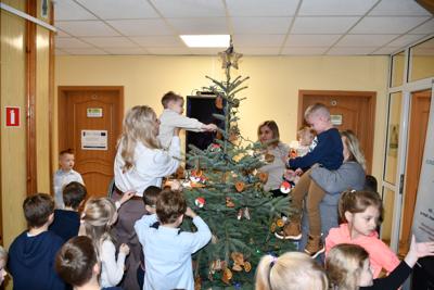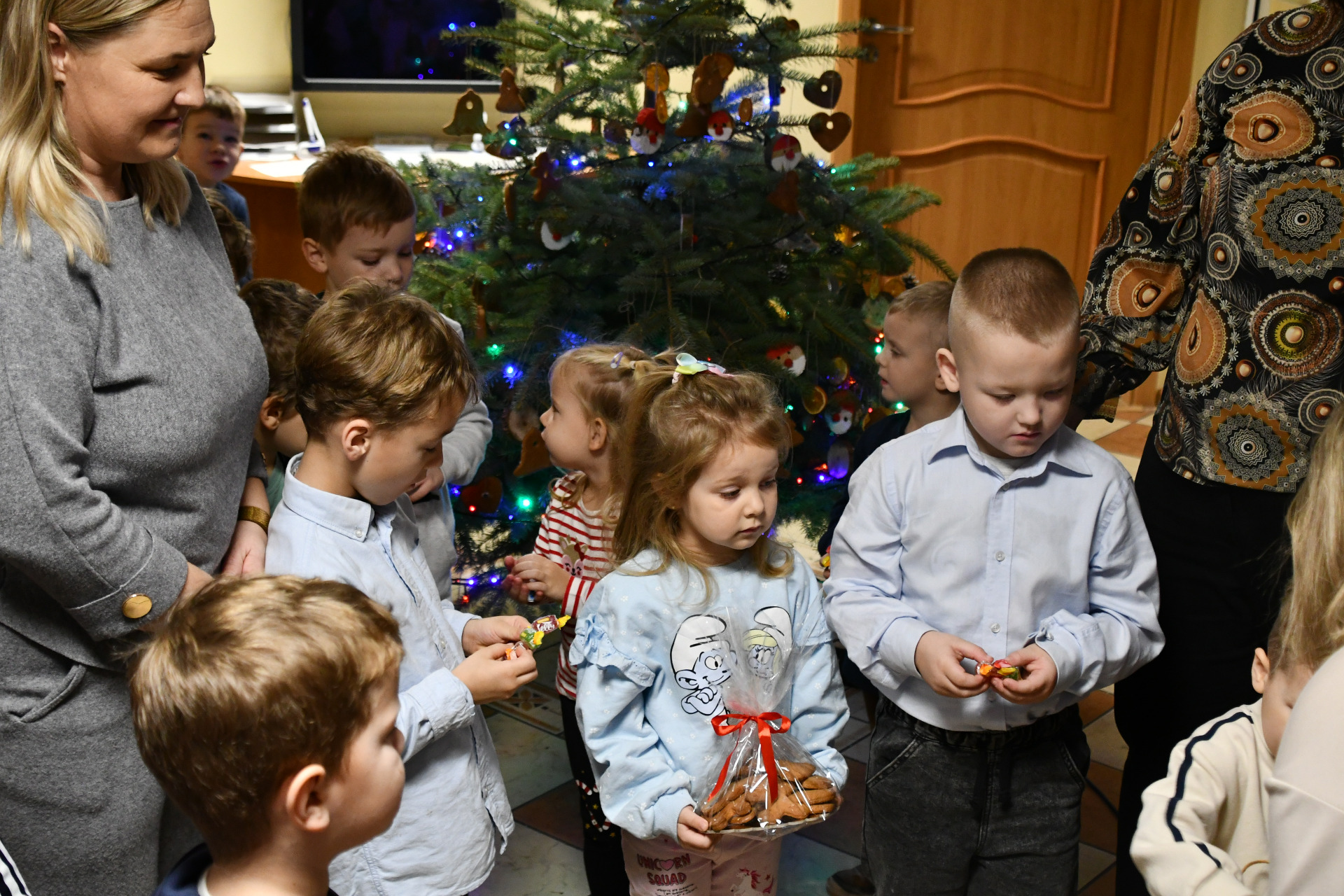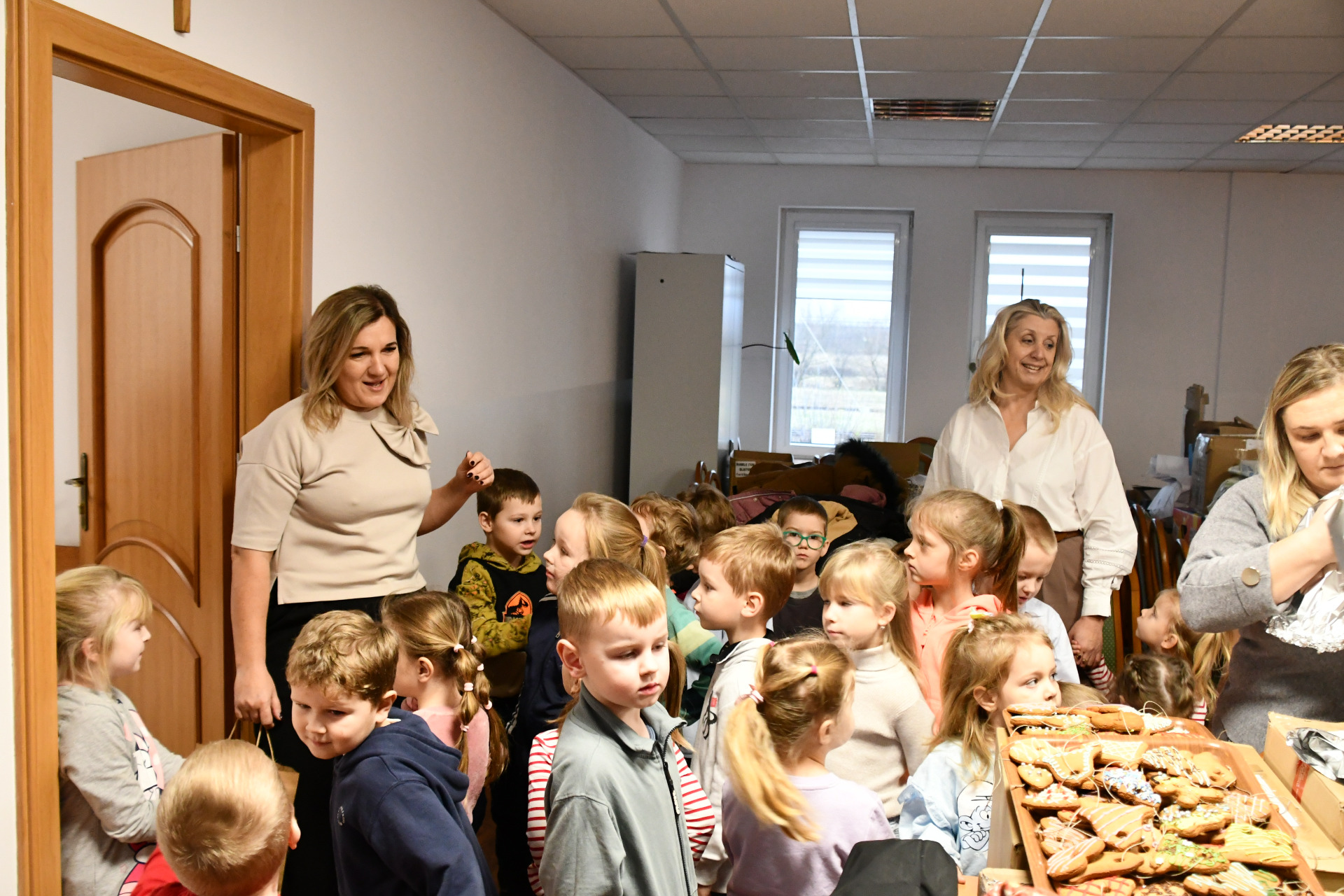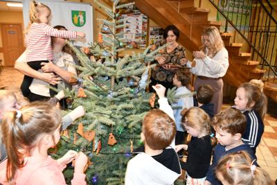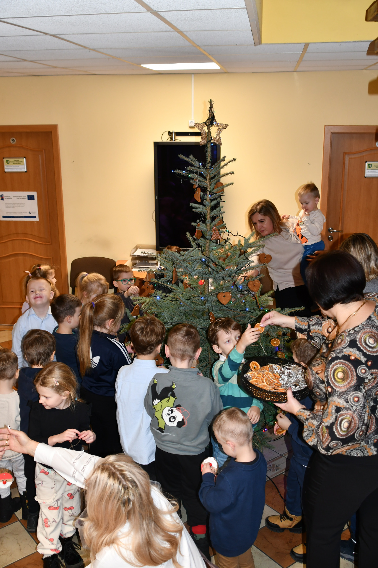 Pierwszym miejscem, które odwiedziły przedszkolaki, był Urząd Gminy w Szastarce, gdzie udekorowały choinki własnoręcznie wykonanymi pierniczkami. Zapach świąt i dziecięca radość szybko wypełniły urząd wyjątkowym klimatem. 🎄