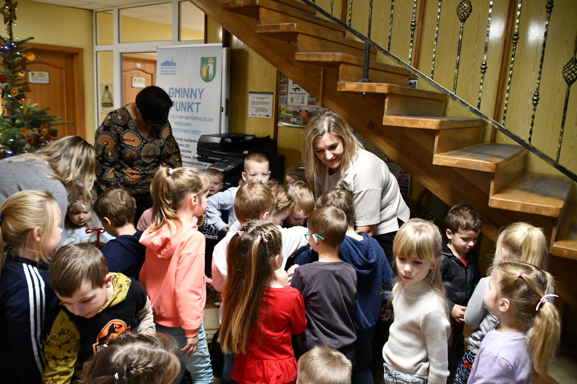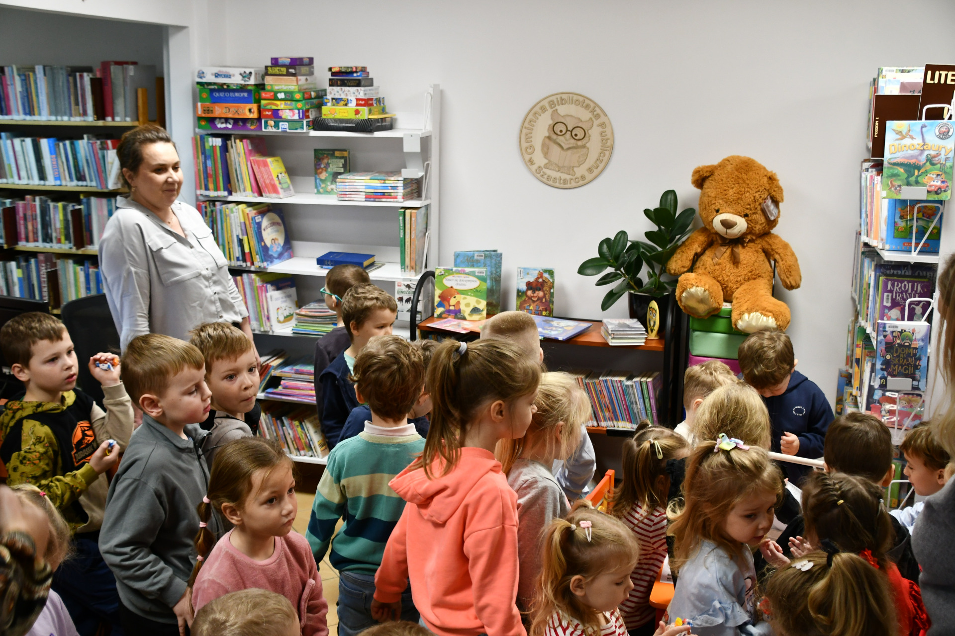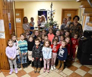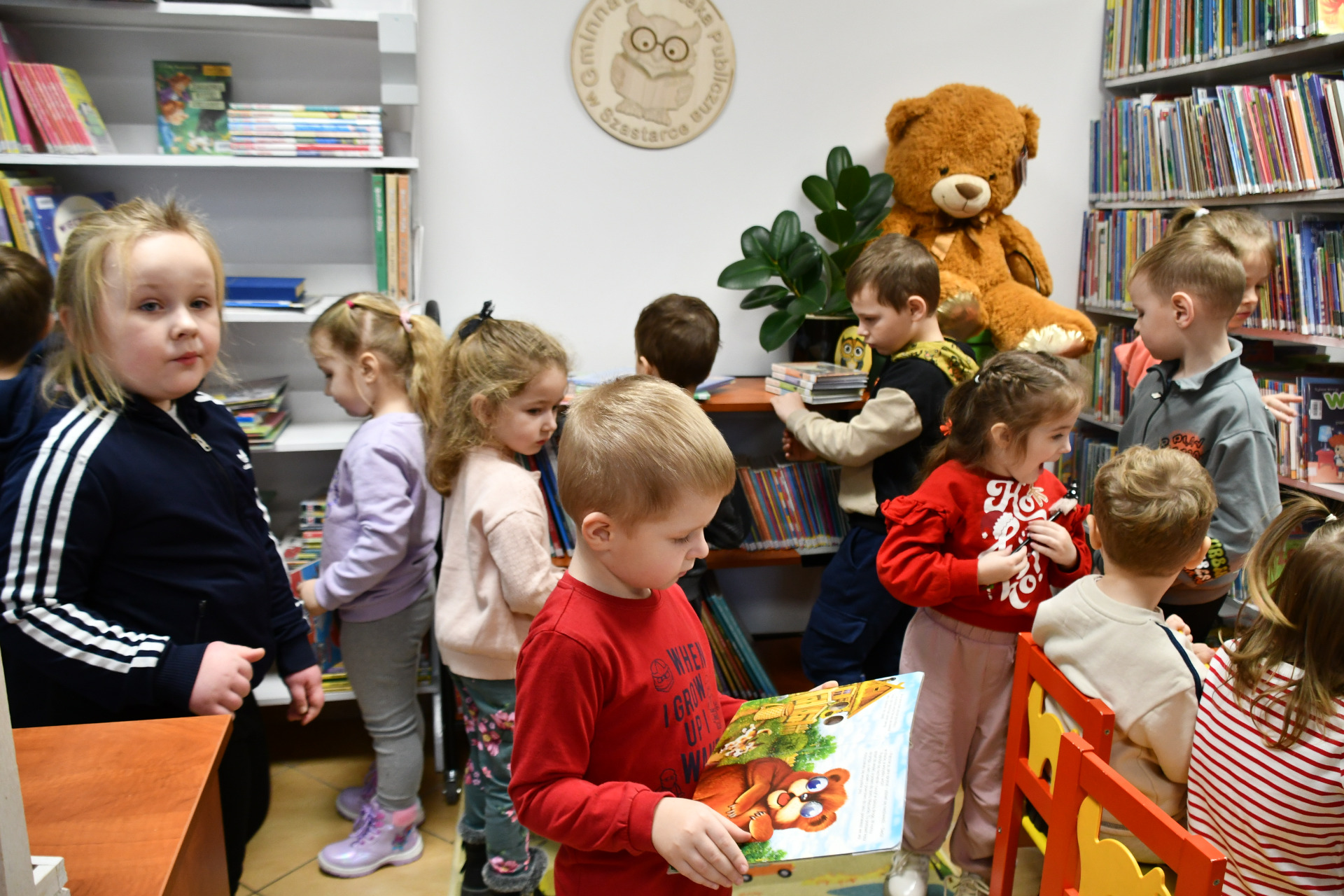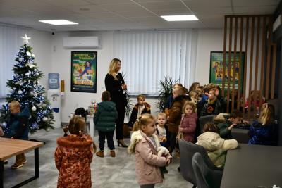 Następnie dzieci udały się do Gminnej Biblioteki Publicznej, gdzie wśród licznych książek złożyły świąteczne życzenia i wręczyły słodkie upominki.