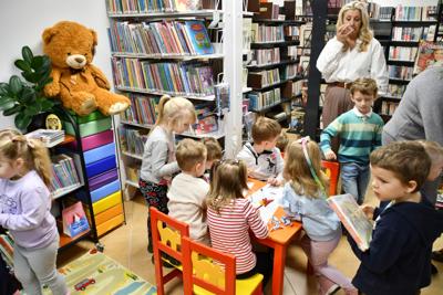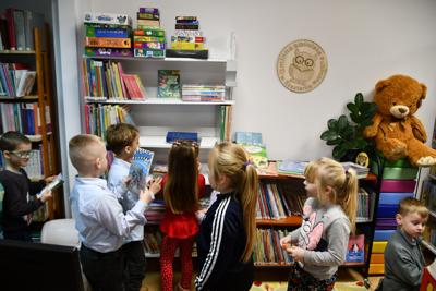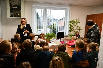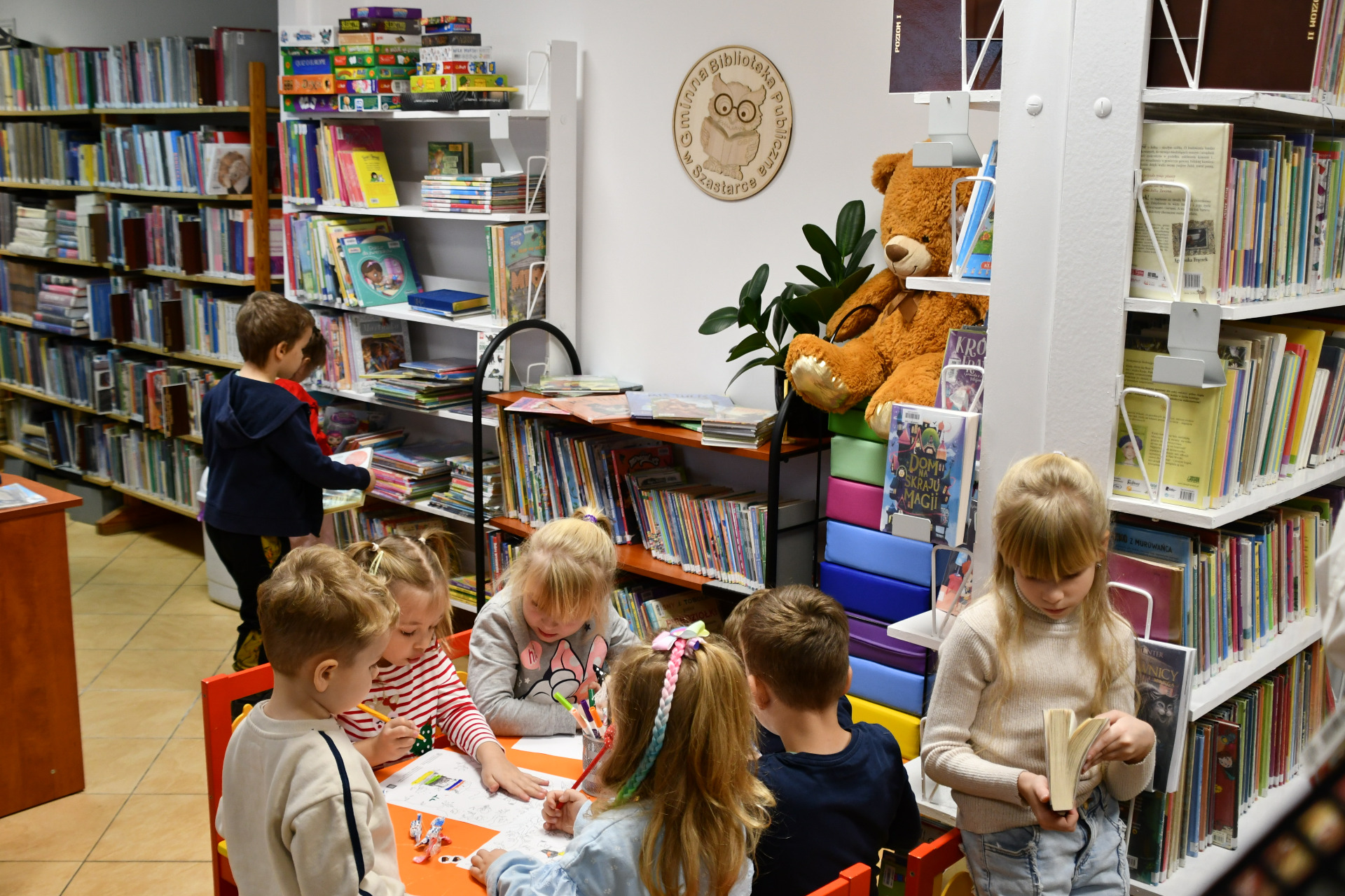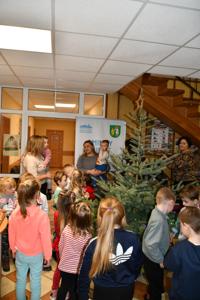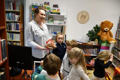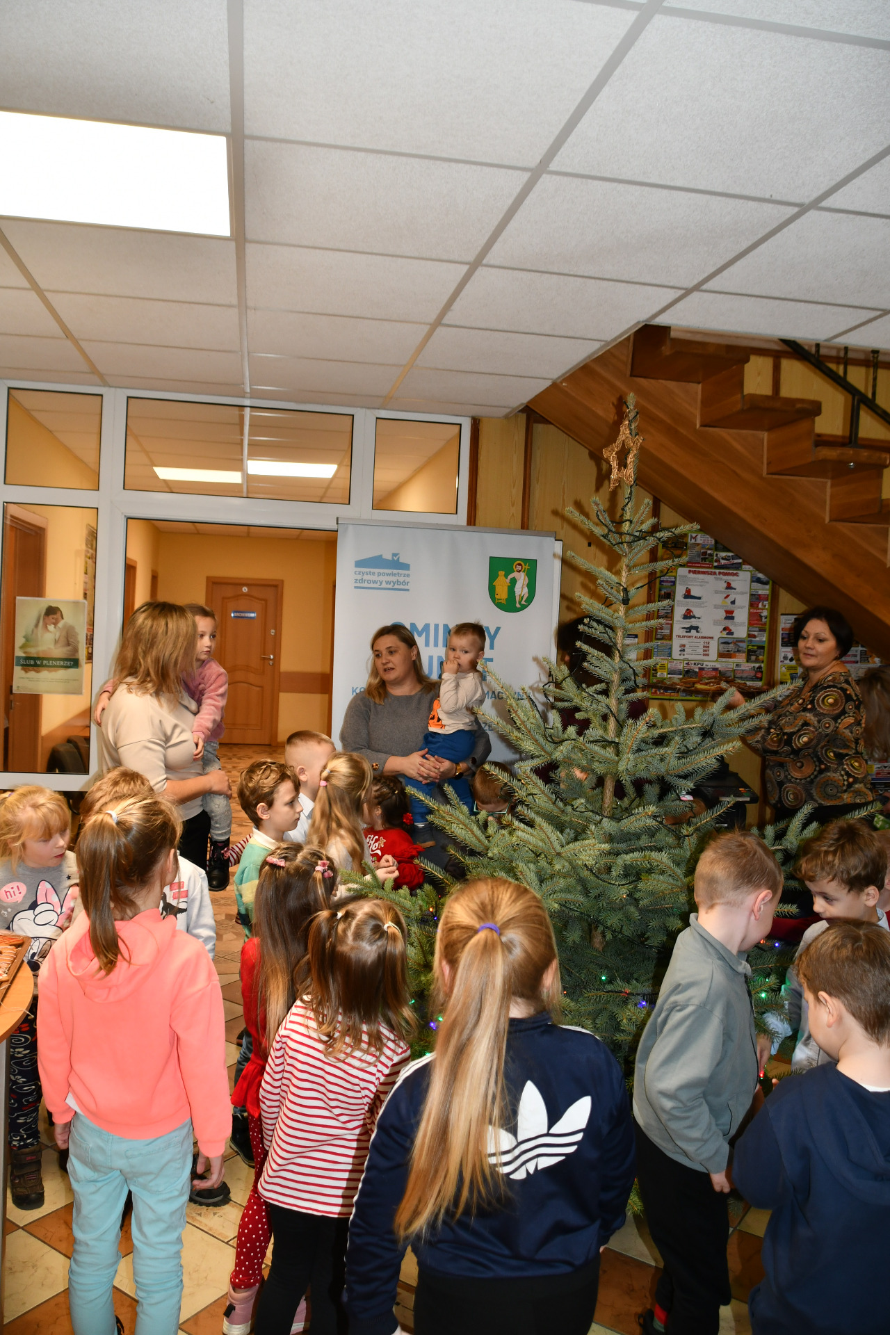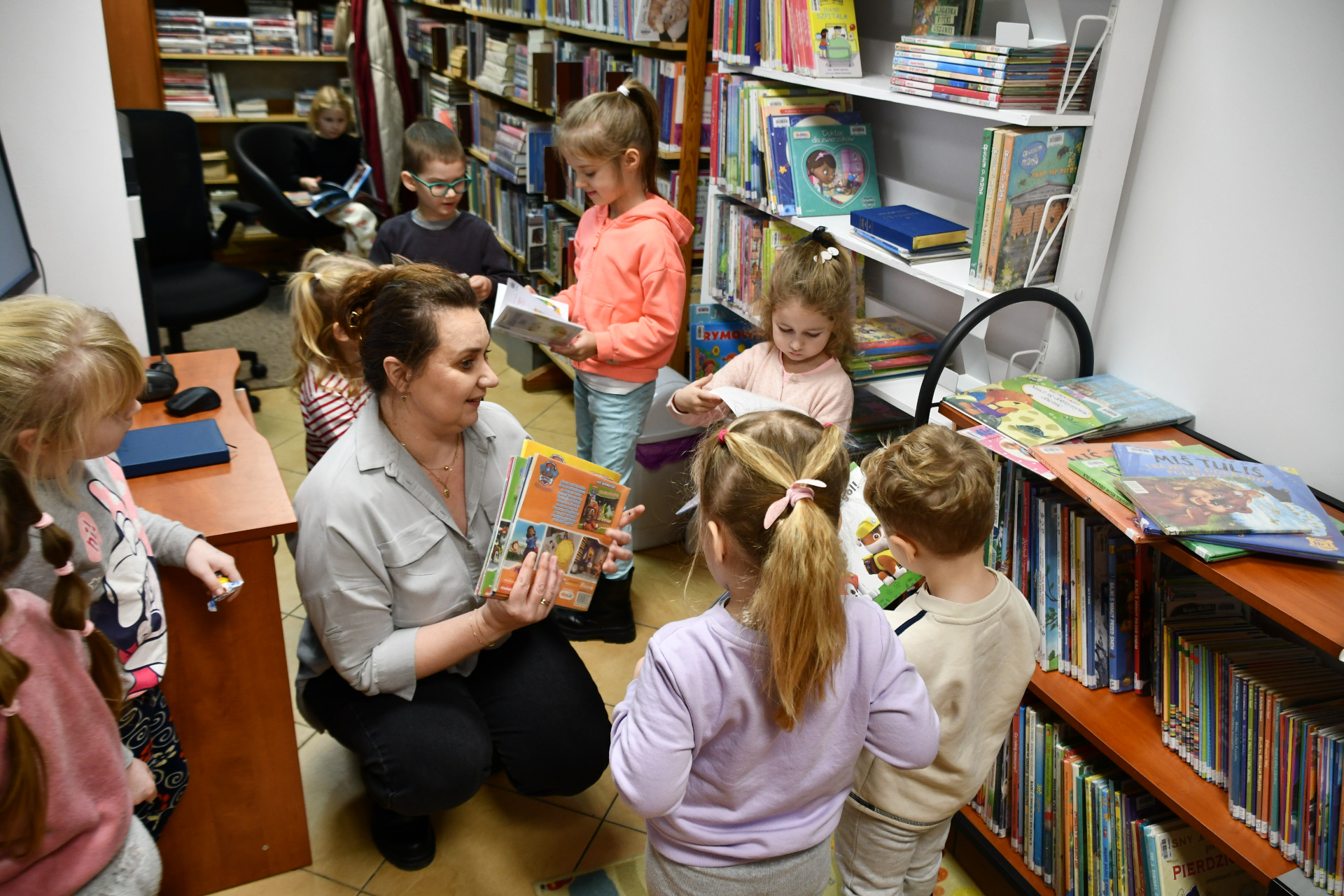 Następnie dzieci udały się do Gminnej Biblioteki Publicznej, gdzie wśród licznych książek złożyły świąteczne życzenia i wręczyły słodkie upominki.
