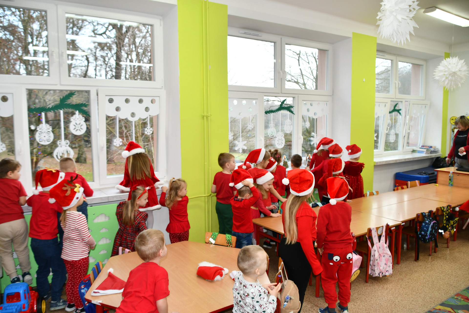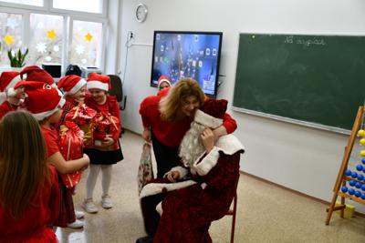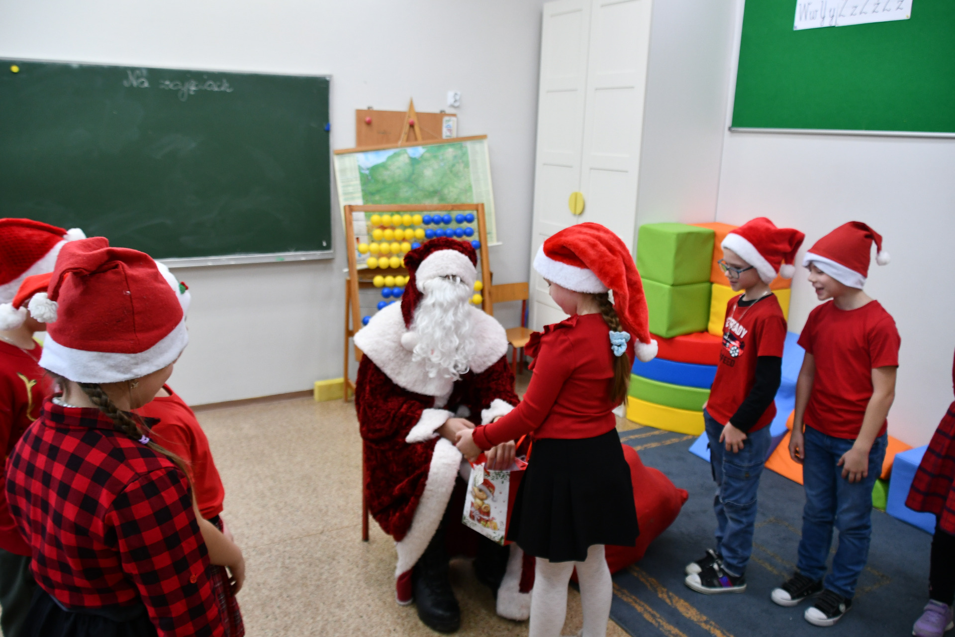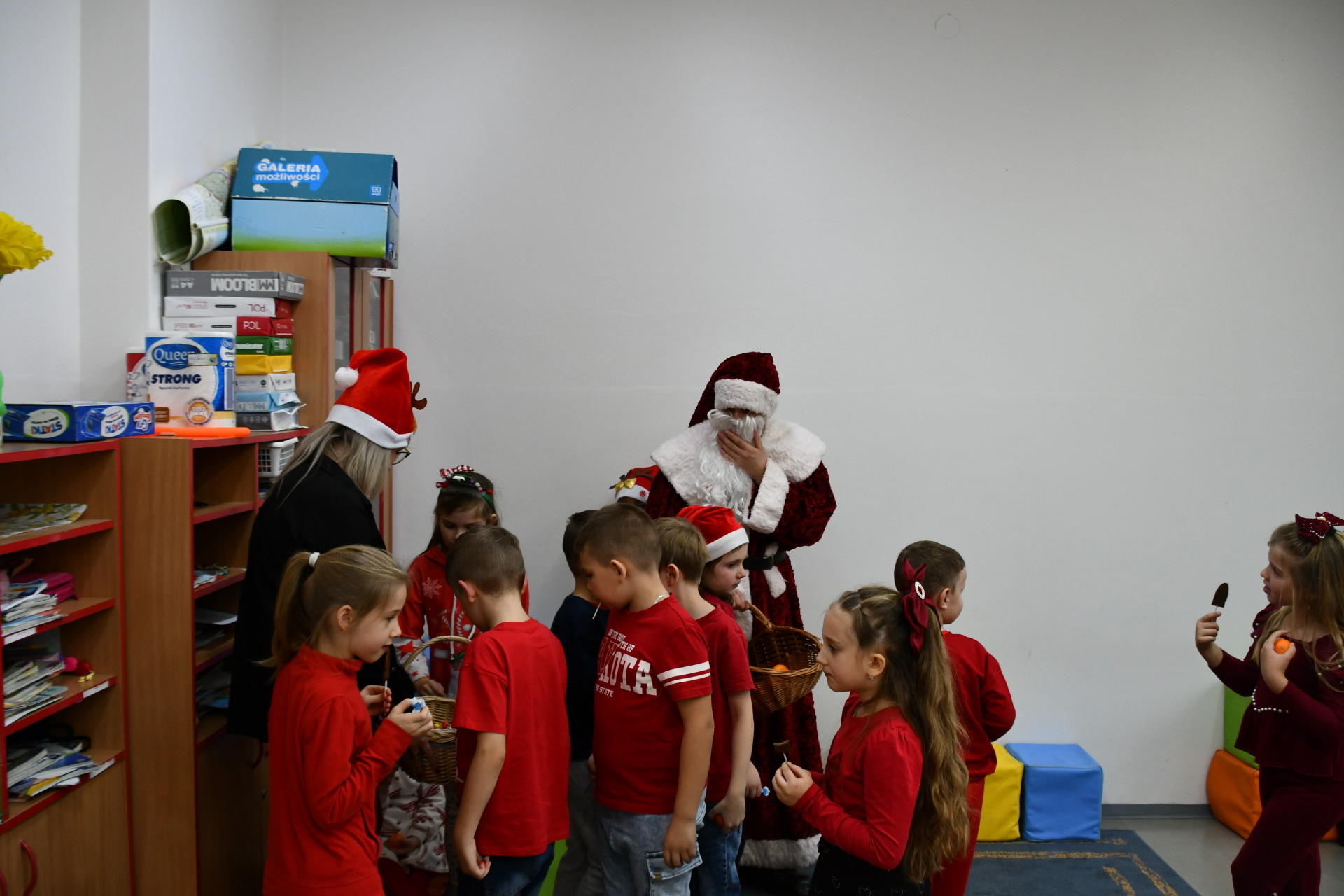 Gdy Mikołaj pojawił się najpierw w przedszkolu, a później w szkolnych klasach, dzieci przywitały go z ogromną radością. Spotkanie pełne było uśmiechów, świątecznych rozmów i wspólnego śpiewania. Mikołaj obdarował dzieci drobnymi upominkami i przekazał im serdeczne życzenia.