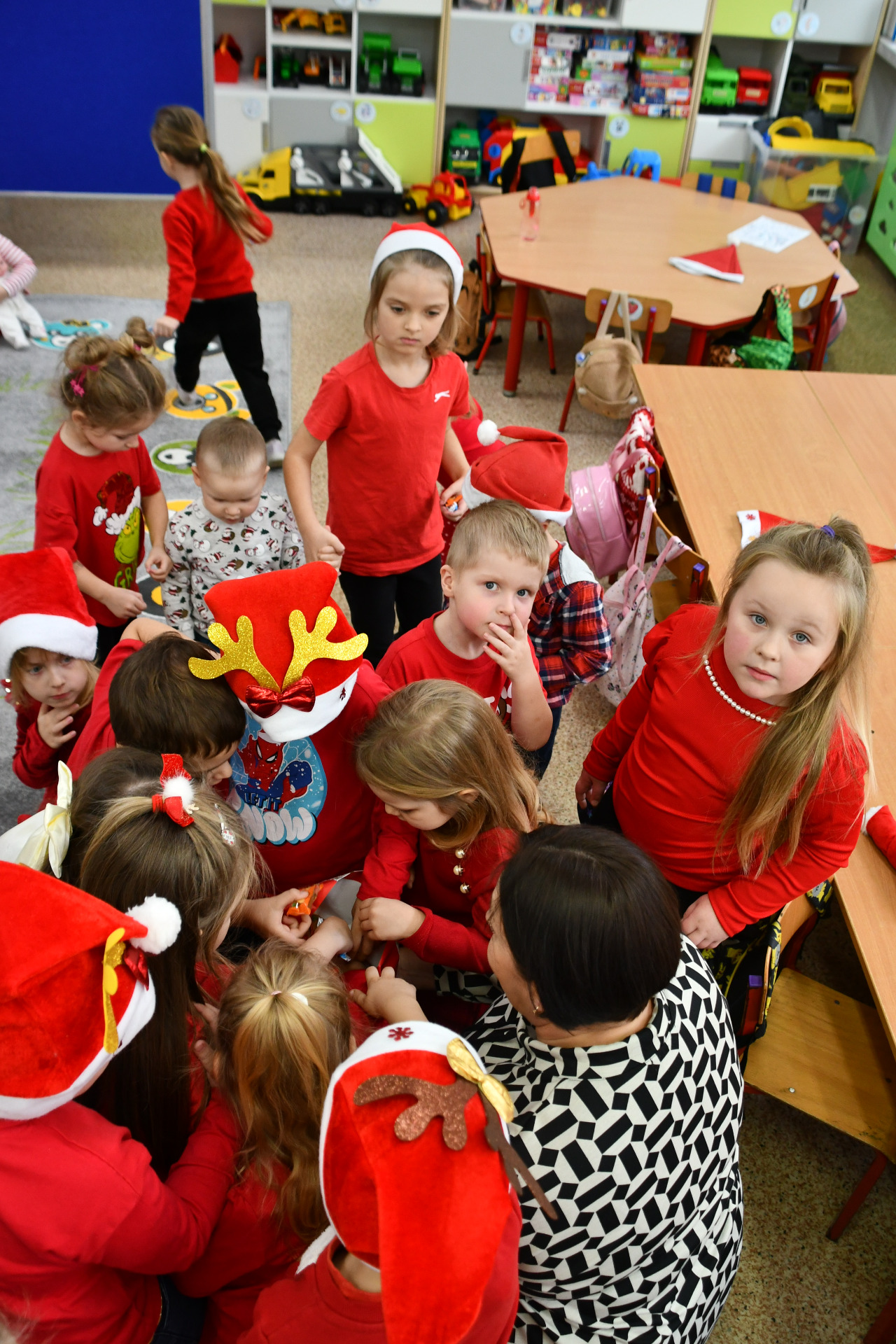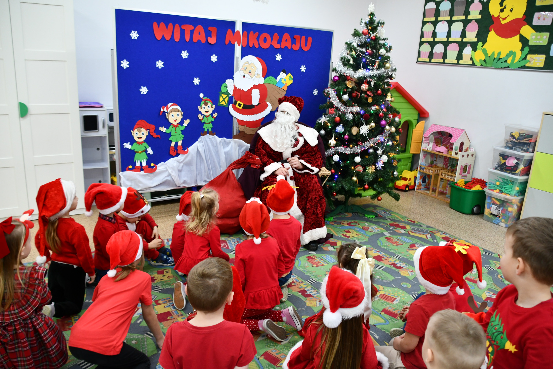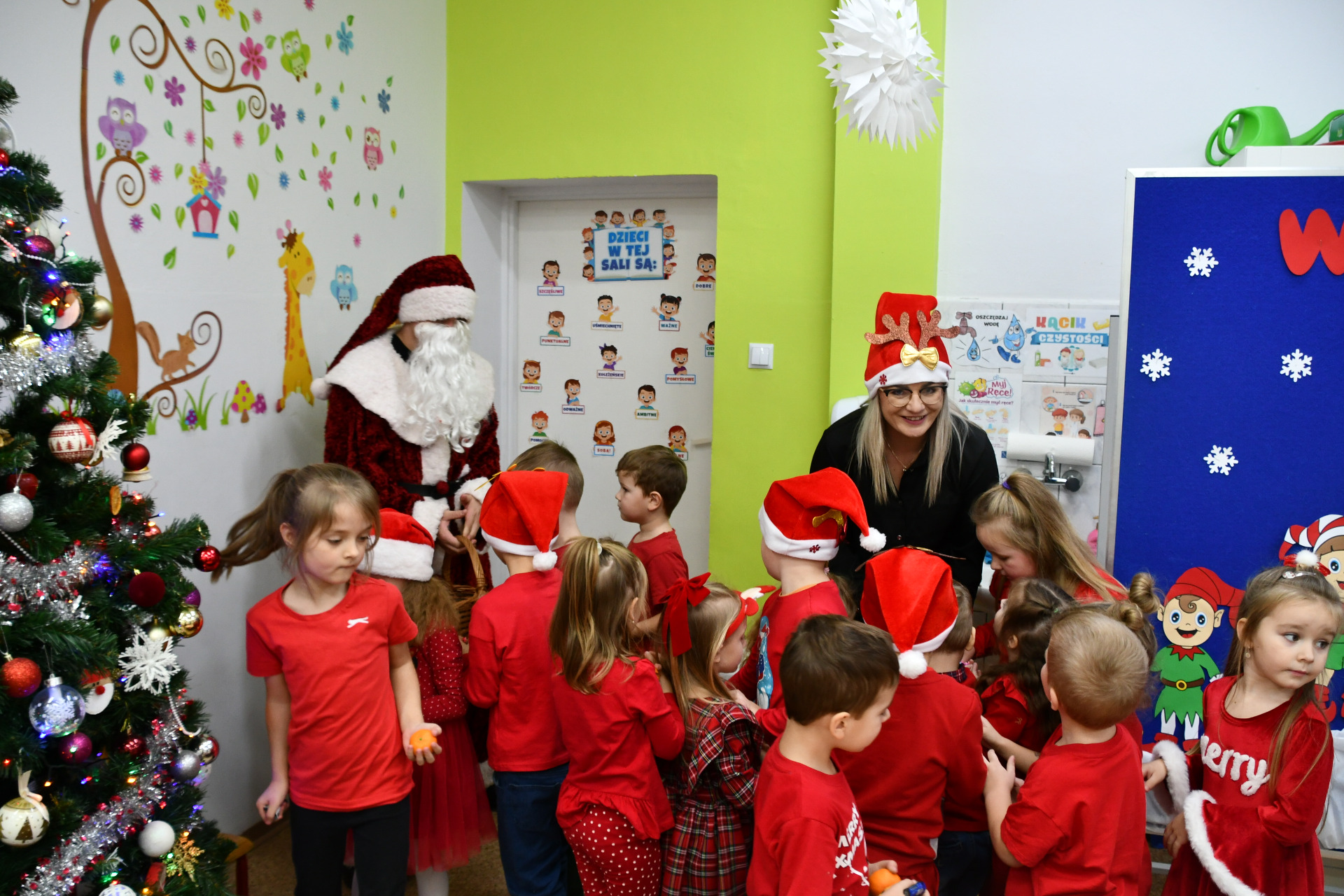 Gdy Mikołaj pojawił się najpierw w przedszkolu, a później w szkolnych klasach, dzieci przywitały go z ogromną radością. Spotkanie pełne było uśmiechów, świątecznych rozmów i wspólnego śpiewania. Mikołaj obdarował dzieci drobnymi upominkami i przekazał im serdeczne życzenia.