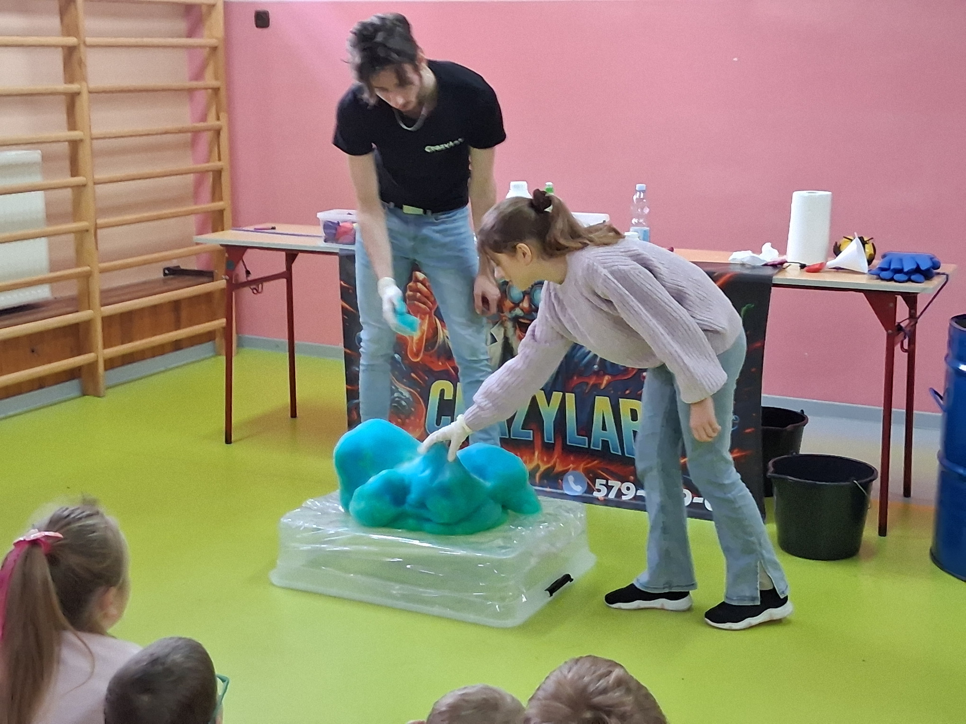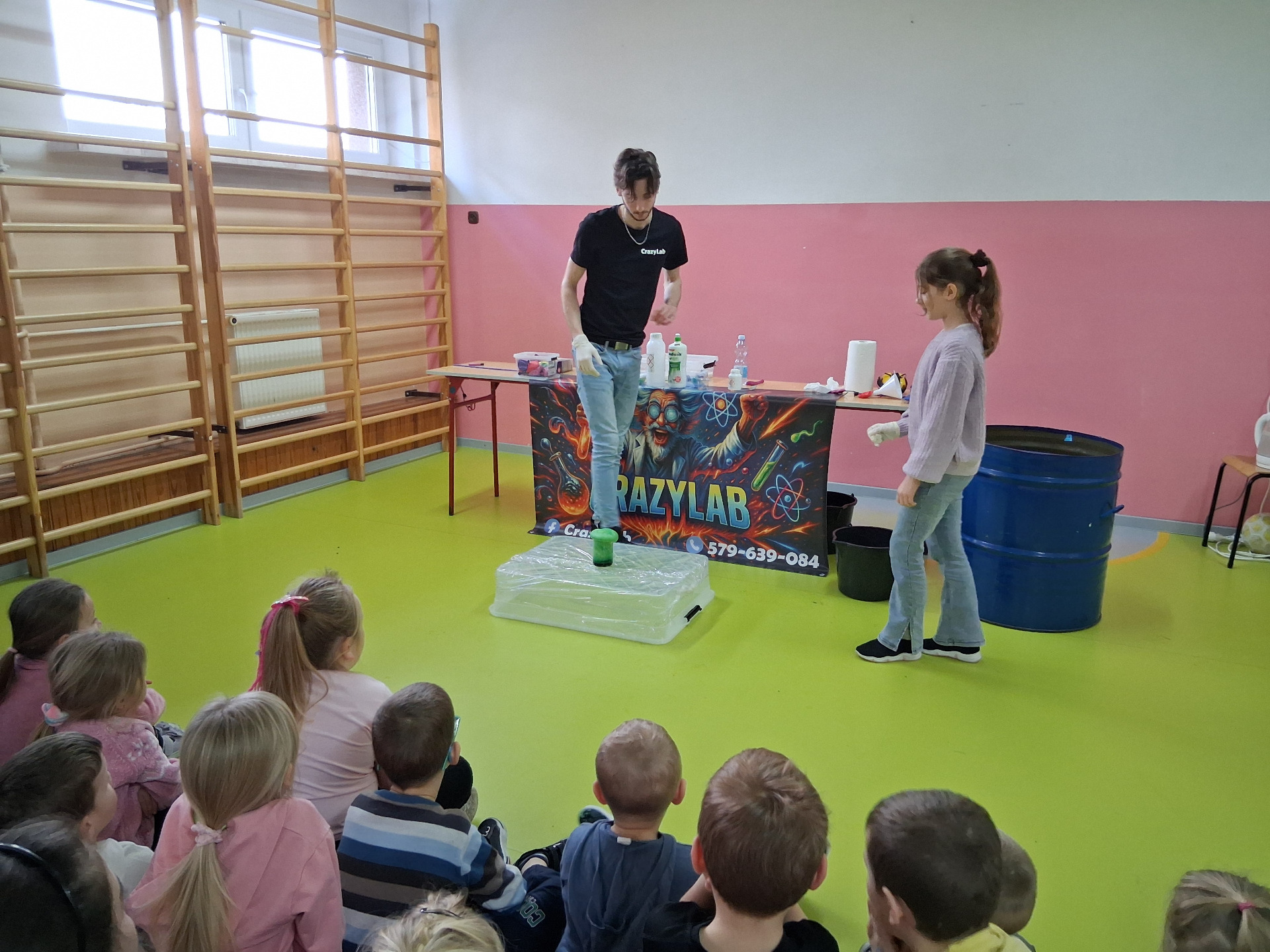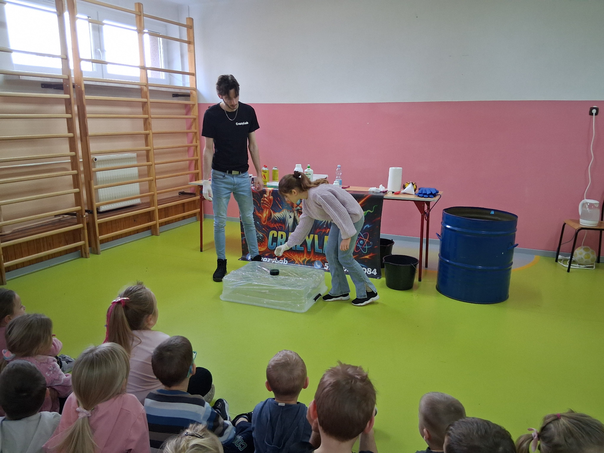 Dnia 8 grudnia w naszej szkole odbyły się niezwykłe pokazy fizyczno-chemiczne, przygotowane przez grupę CrazyLab. Przedszkolaki oraz uczniowie klas I-VIII mieli okazję odkrywać tajemnice fascynującego świata fizyki i chemii poprzez eksperymenty i zabawy. Podczas pokazów dzieci mogły zobaczyć i dotknąć cieczy nienewtonowskiej, która zachowuje się inaczej niż zwykłe płyny. Dużo śmiechu i zabawy dostarczyły zabawy z helem. Nasi uczniowie mieli okazję sprawdzić jak zmienia się barwa głosu po użyciu helu. Ogniste doświadczenie z butanem było zaskakujące ale bezpieczne. Najwięcej emocji wzbudziły pokazy gwałtownego parowania z głośnym hukiem. Nie zabrakło również uwielbianej przez dzieci słoniowej pasty do zębów, czyli piany powstającej w wyniku szybkiej reakcji chemicznej. Dzięki tym pokazom, uczniowie mogli przekonać się, że nauka potrafi być fascynująca i naprawdę magiczna.