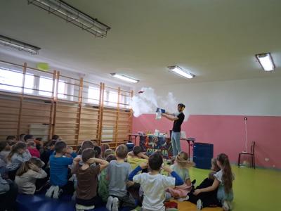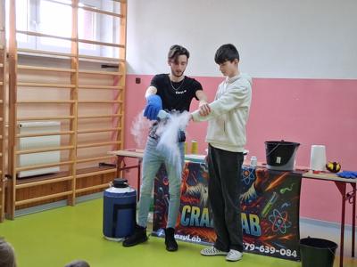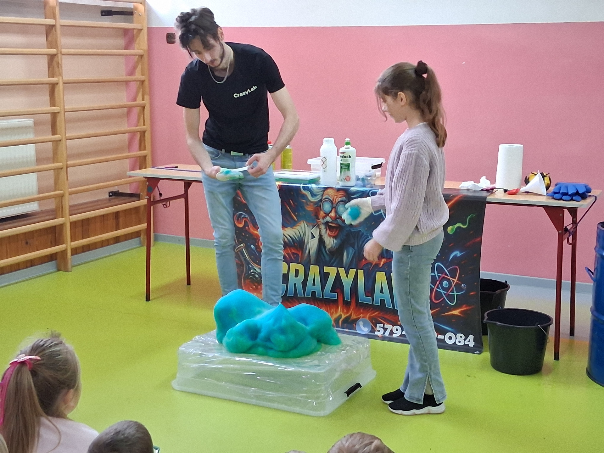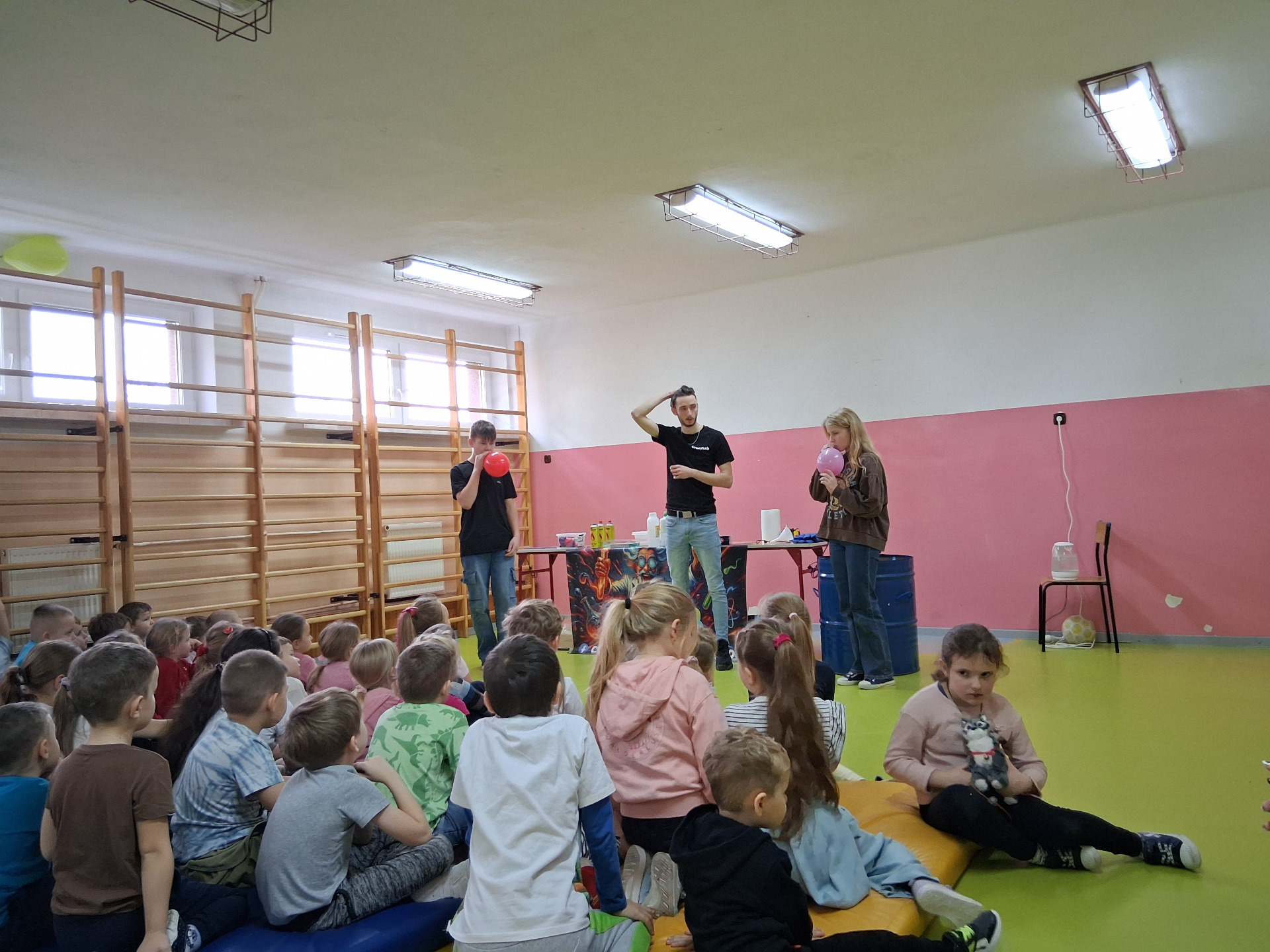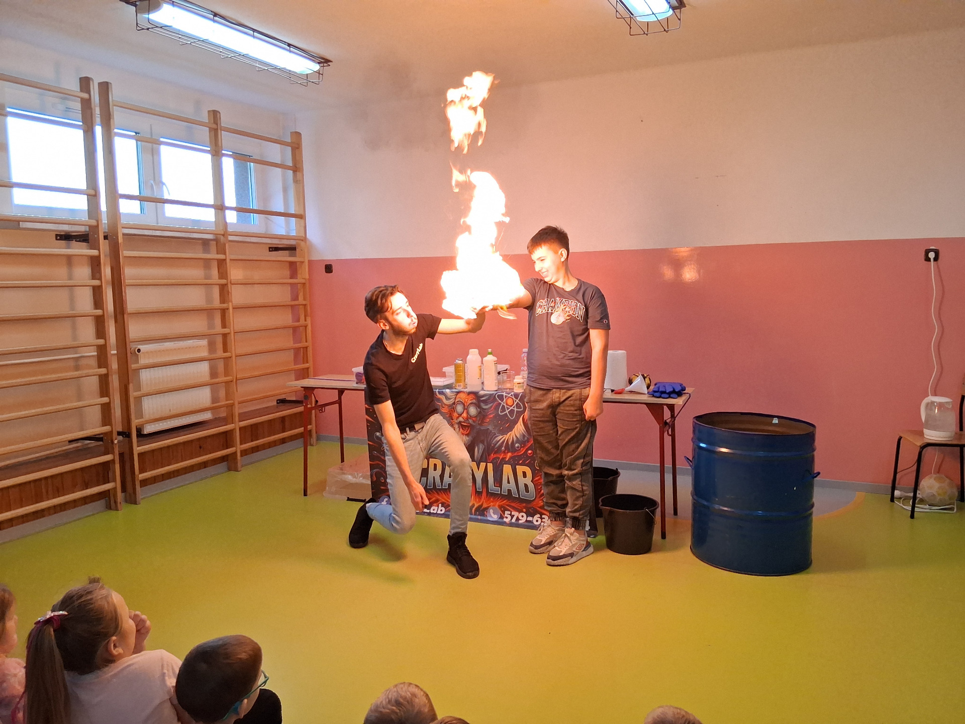 Dnia 8 grudnia w naszej szkole odbyły się niezwykłe pokazy fizyczno-chemiczne, przygotowane przez grupę CrazyLab. Przedszkolaki oraz uczniowie klas I-VIII mieli okazję odkrywać tajemnice fascynującego świata fizyki i chemii poprzez eksperymenty i zabawy. Podczas pokazów dzieci mogły zobaczyć i dotknąć cieczy nienewtonowskiej, która zachowuje się inaczej niż zwykłe płyny. Dużo śmiechu i zabawy dostarczyły zabawy z helem. Nasi uczniowie mieli okazję sprawdzić jak zmienia się barwa głosu po użyciu helu. Ogniste doświadczenie z butanem było zaskakujące ale bezpieczne. Najwięcej emocji wzbudziły pokazy gwałtownego parowania z głośnym hukiem. Nie zabrakło również uwielbianej przez dzieci słoniowej pasty do zębów, czyli piany powstającej w wyniku szybkiej reakcji chemicznej. Dzięki tym pokazom, uczniowie mogli przekonać się, że nauka potrafi być fascynująca i naprawdę magiczna.