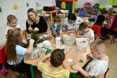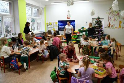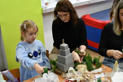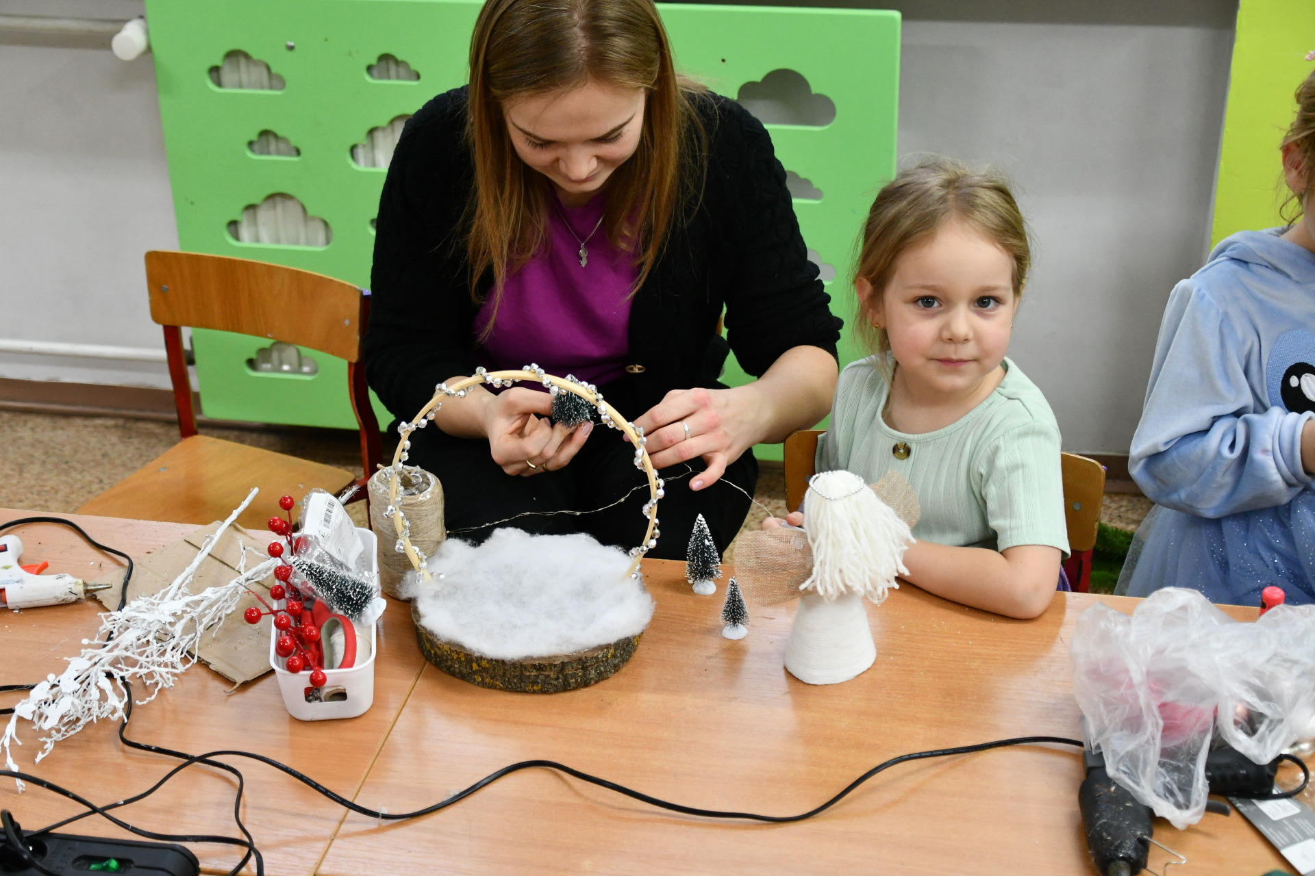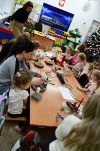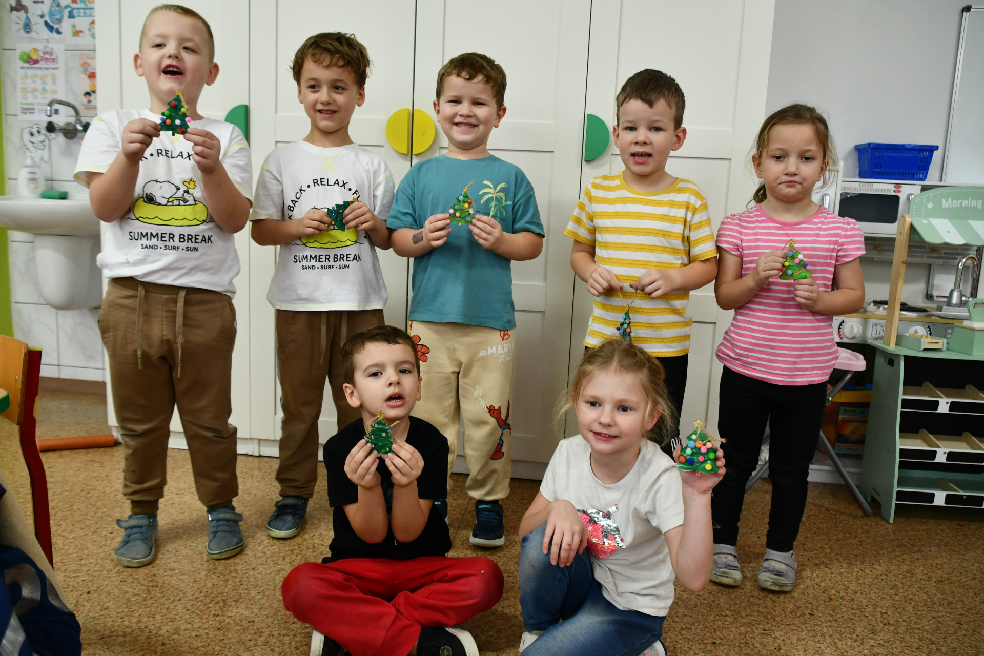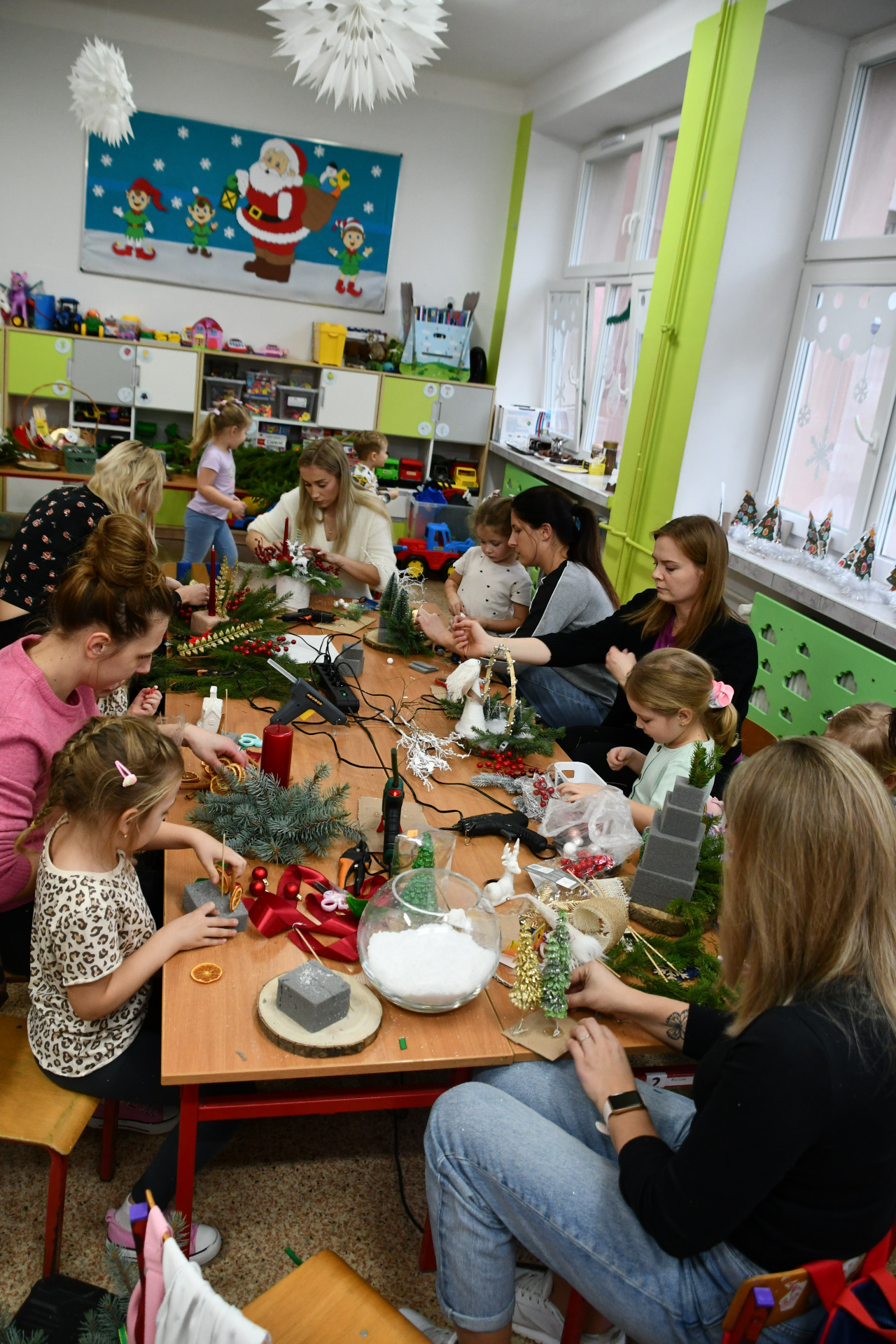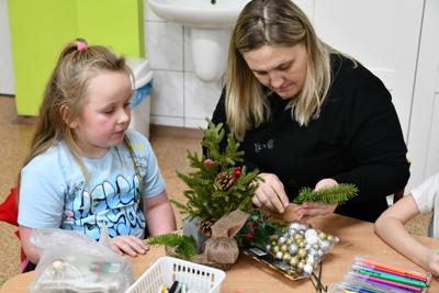 Oprócz wykonywania stroików, dzieci z ogromnym zaangażowaniem ozdabiały również małe choinki, które z dumą zabrały do swoich domów, by cieszyły całą rodzinę i przypominały o tych pięknych chwilach.