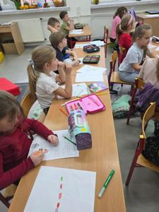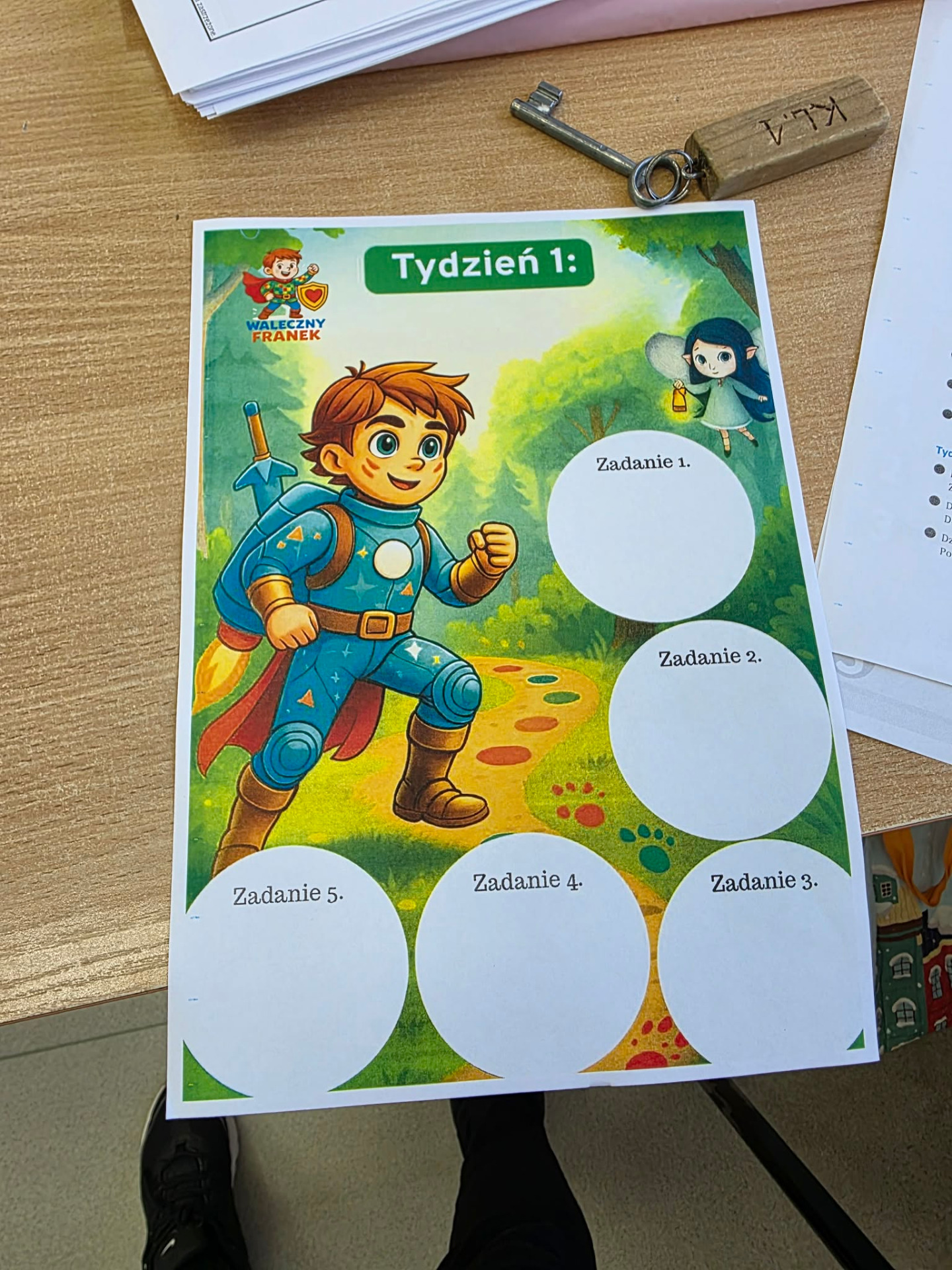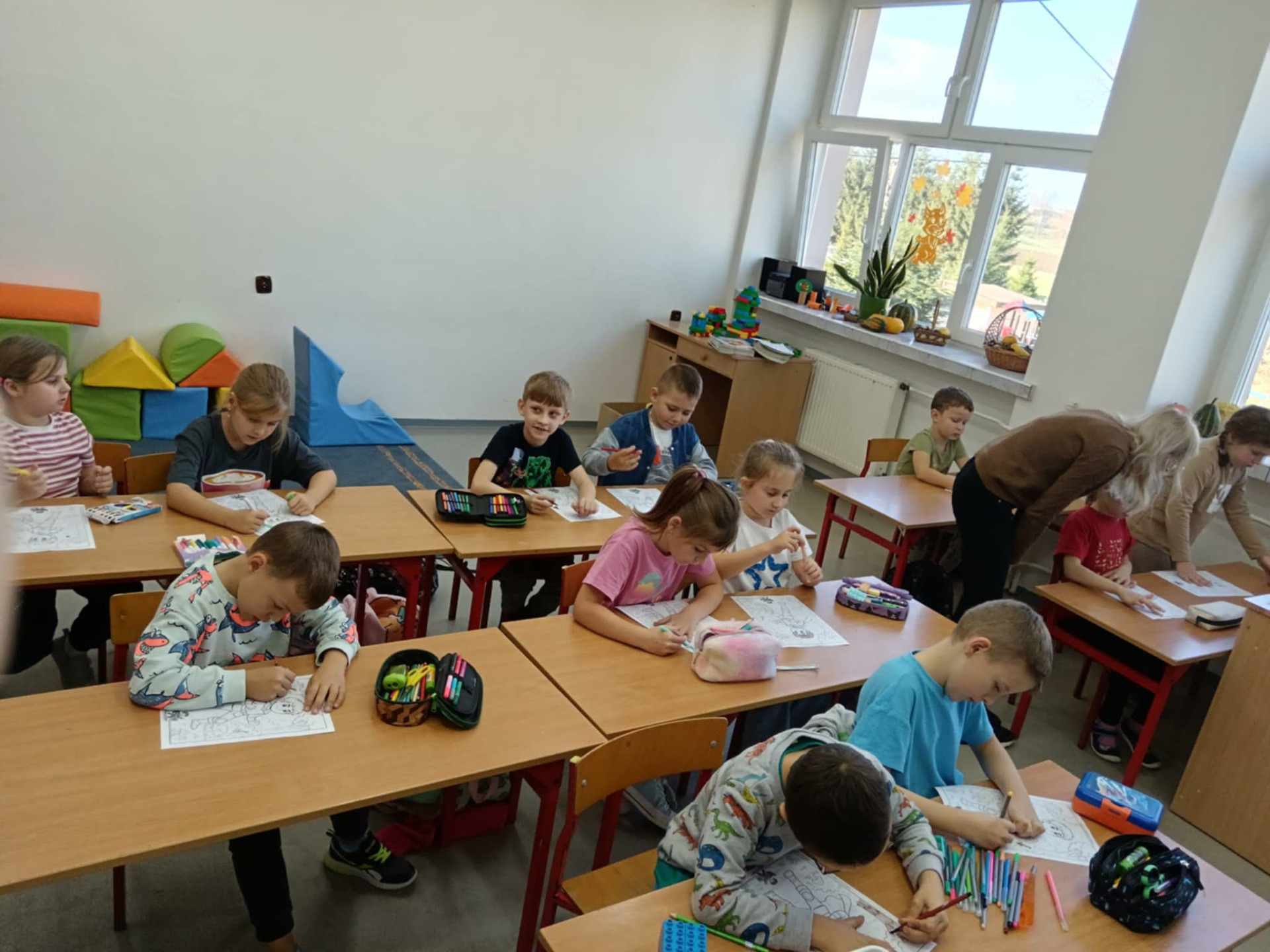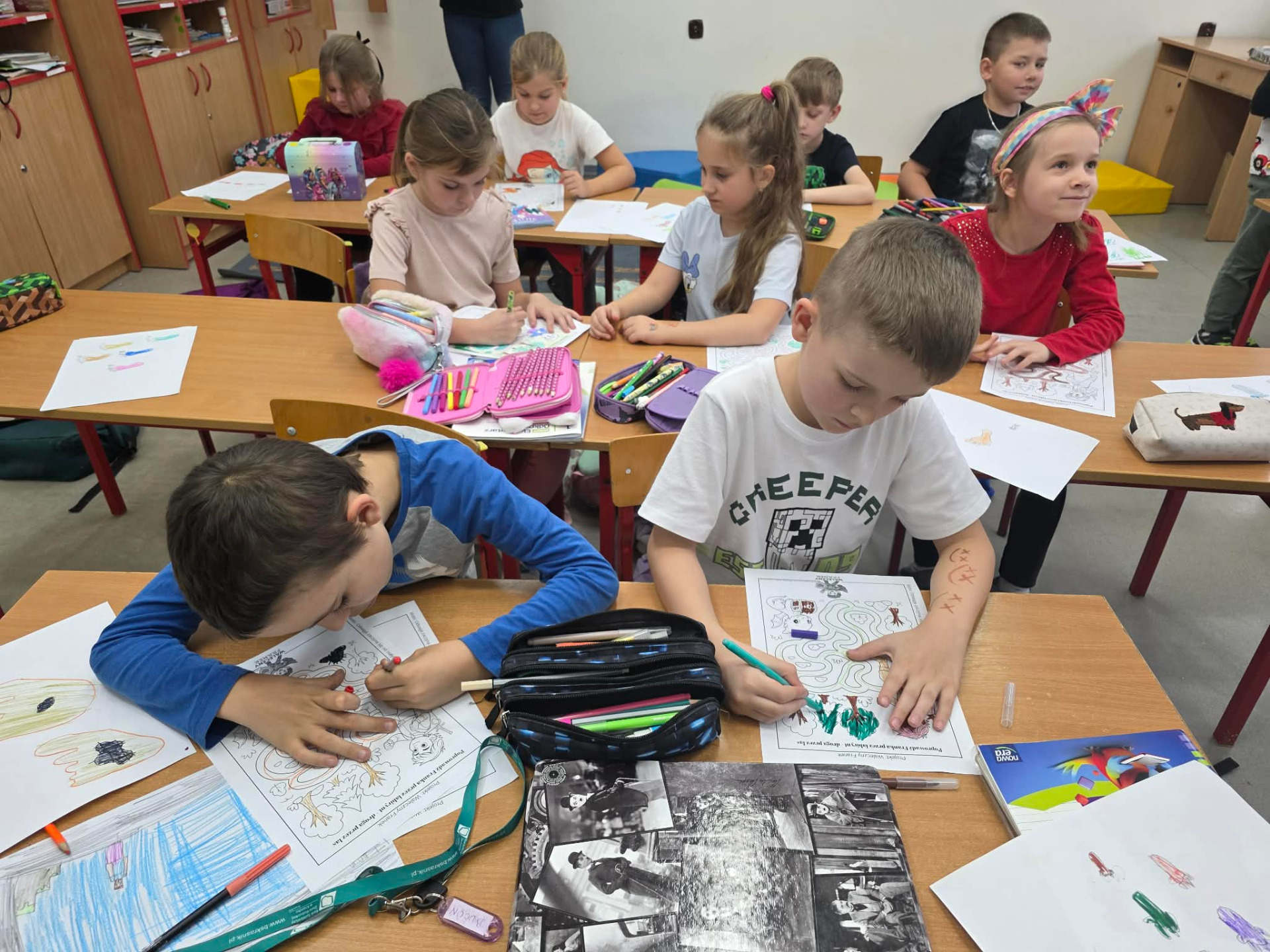 Uczniowie klasy pierwszej zrealizowali pierwszy etap projektu „Waleczny Franek”, który poświęcony był odwadze. Dzieci poznały Franka-bohatera, który nigdy się nie poddaje i zawsze pomaga innym. Dzieci rozmawiały o tym, czym jest odwaga, wysłuchały historii Franka oraz zastanawiały się, jak można pokonywać strach w codziennych sytuacjach. Uczniowie kolorowali Franka oraz tworzyli prace plastyczne przedstawiające ich odważne chwile. To był wyjątkowy czas pełen rozmów, refleksji i budowania pewności siebie!