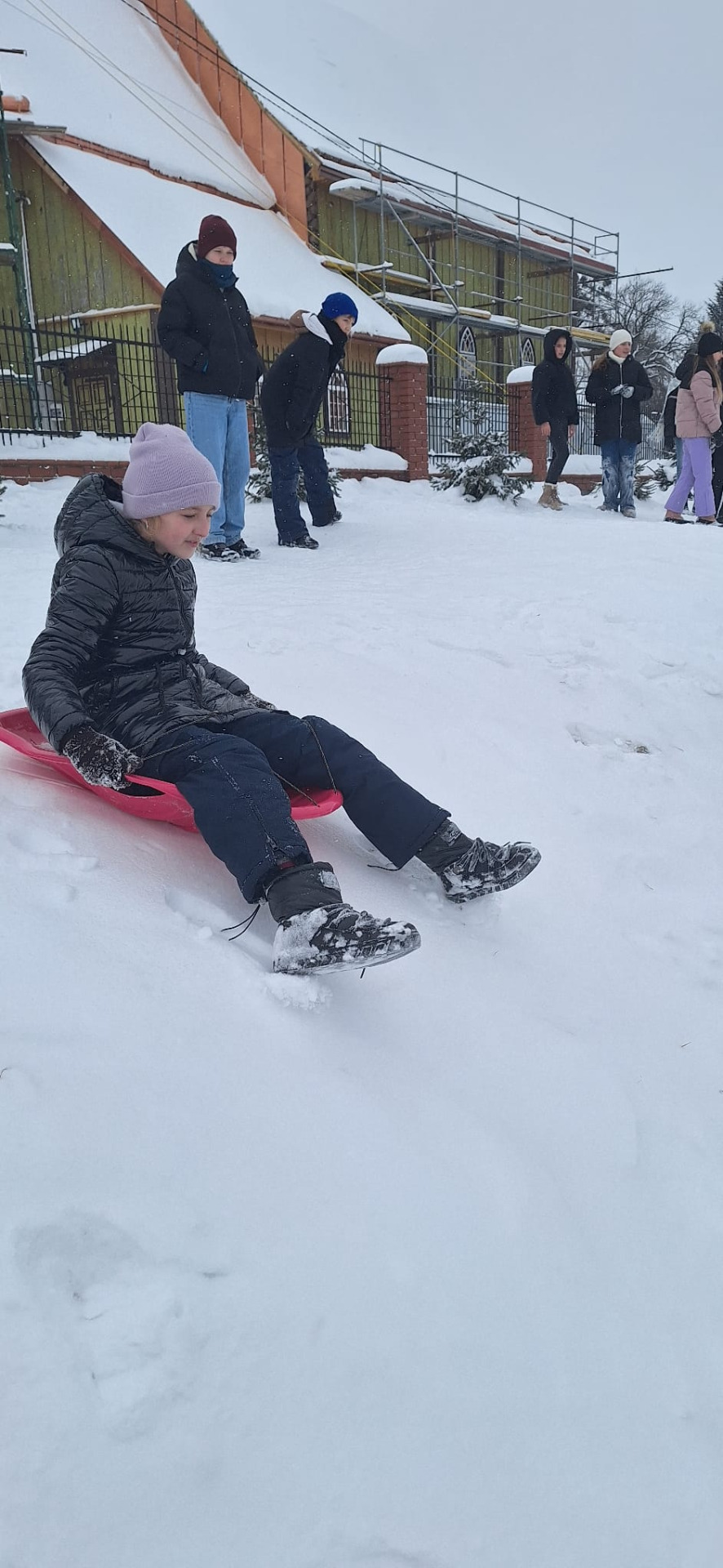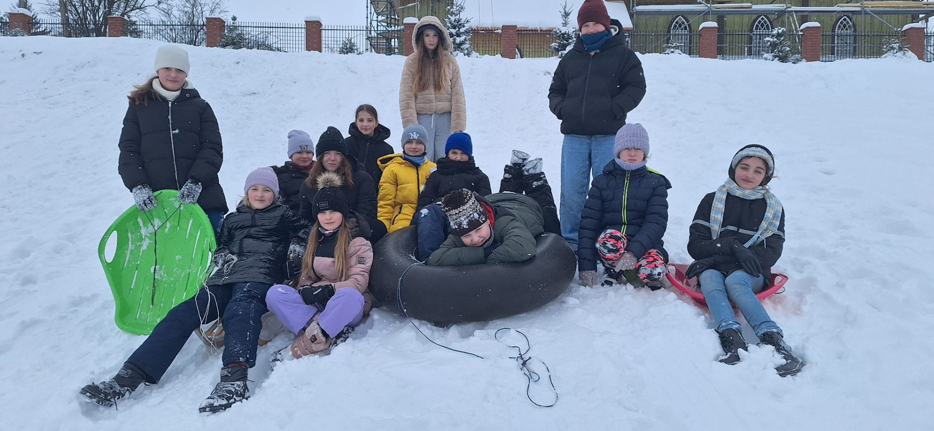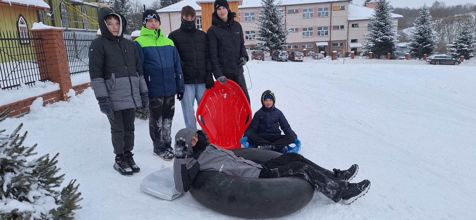 Kiedy tuż naprzeciwko szkoły mamy idealne warunki do zabawy, grzechem byłoby nie skorzystać. Przez cały tydzień dzieci z różnych klas zjeżdżały, turlały się i śmiały do woli, korzystając z uroków zimy na naszej słynnej „Księżej Górce”.