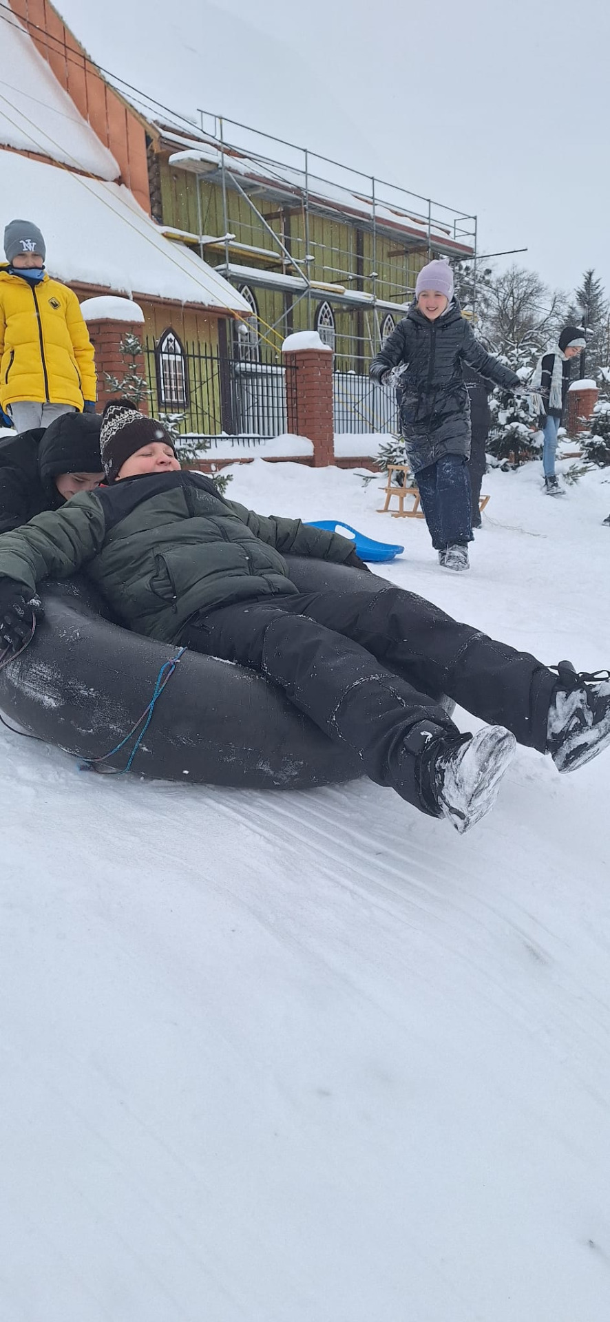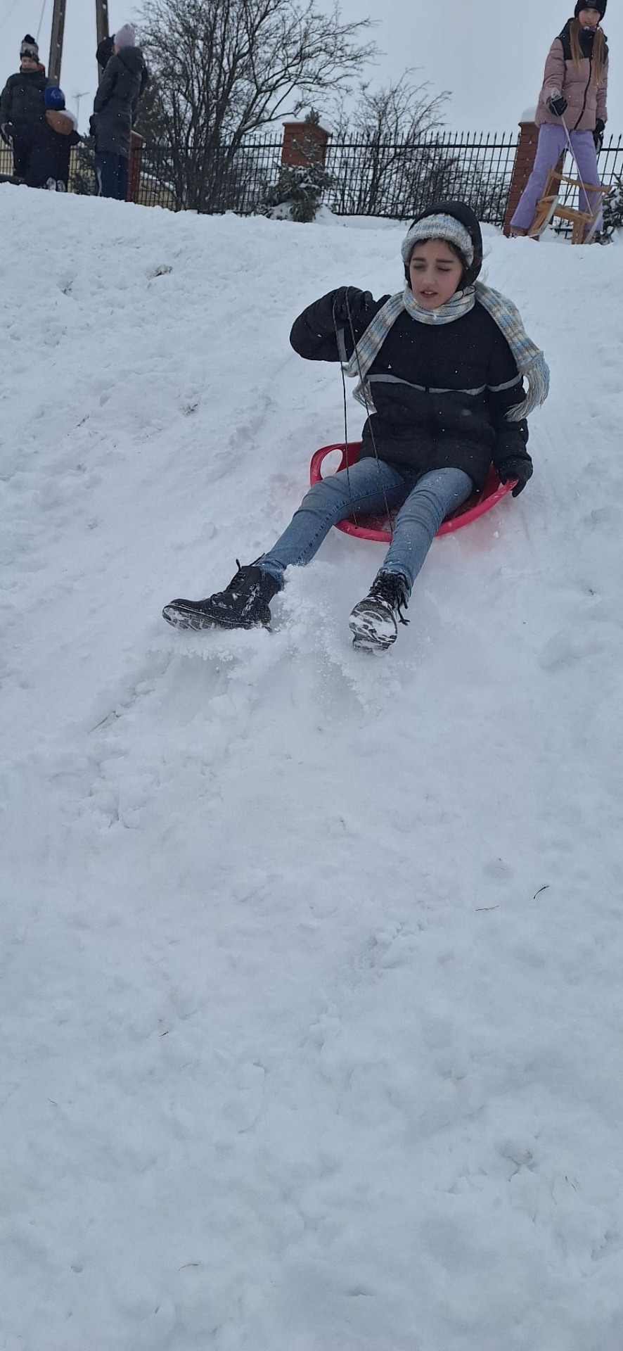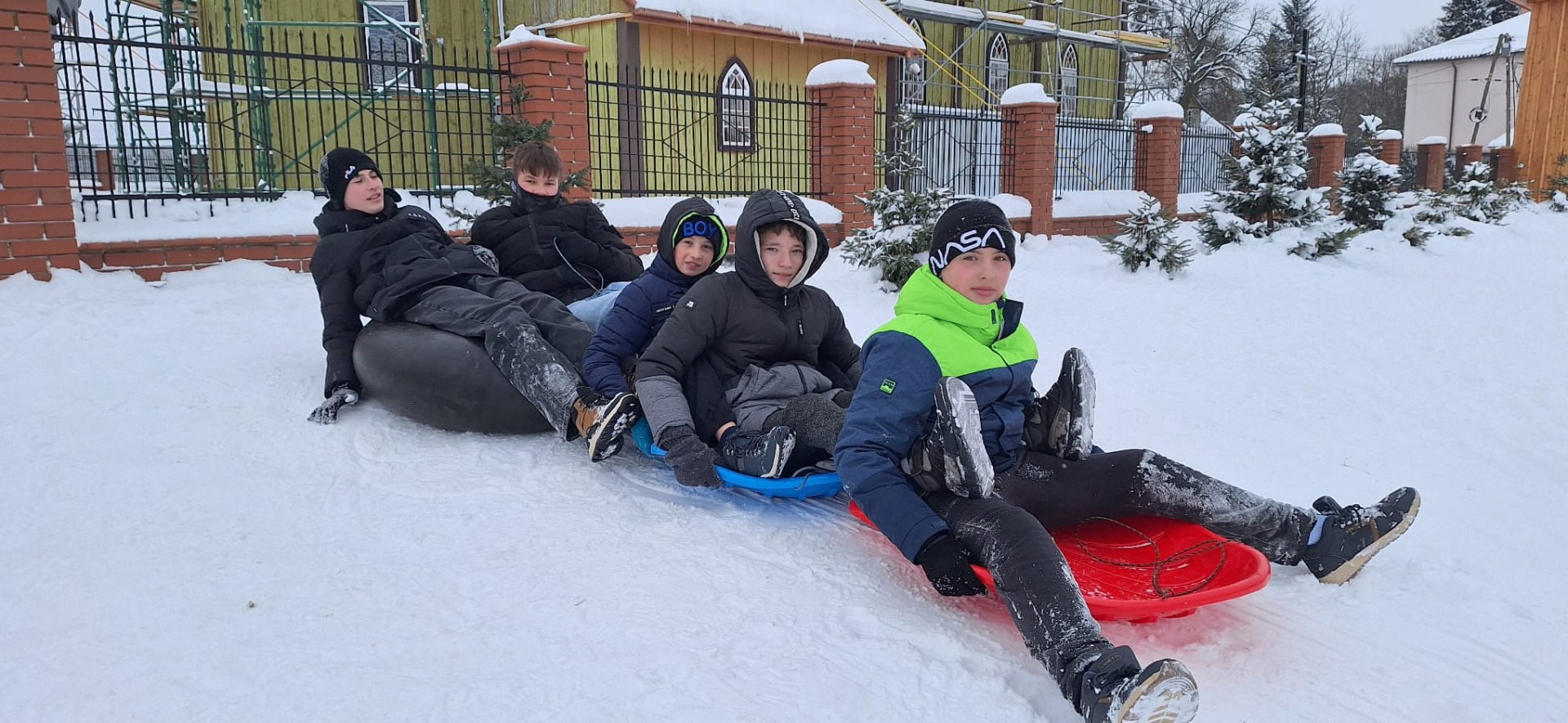 Kiedy tuż naprzeciwko szkoły mamy idealne warunki do zabawy, grzechem byłoby nie skorzystać. Przez cały tydzień dzieci z różnych klas zjeżdżały, turlały się i śmiały do woli, korzystając z uroków zimy na naszej słynnej „Księżej Górce”.
