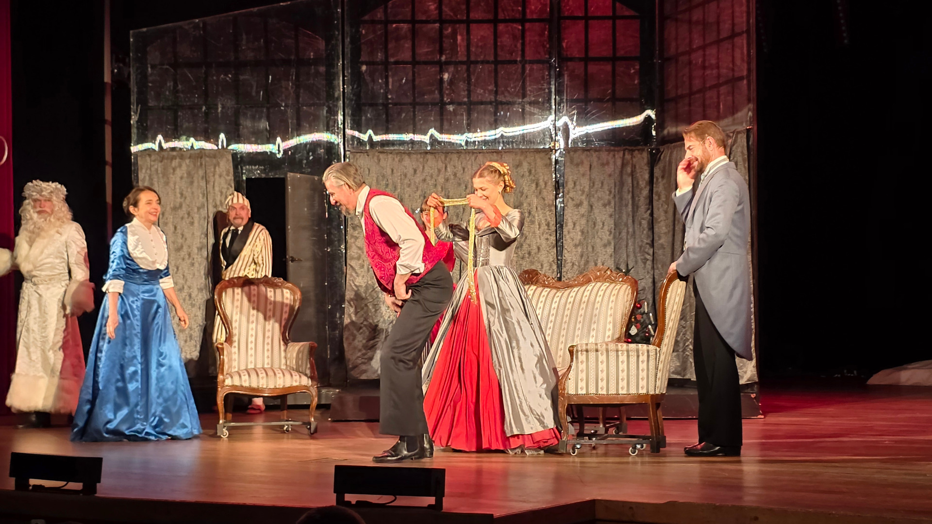 Pierwszym punktem programu było oglądanie spektaklu teatralnego „Opowieść wigilijna”, które miało miejsce w godzinach 9.00–11.00. Przedstawienie wzbudziło duże zainteresowanie uczniów. Gra aktorska, scenografia oraz przekaz sztuki zrobiły na wszystkich ogromne wrażenie. Uczniowie podkreślali, że historia Ebenezera Scrooge’a skłaniała do refleksji nad wartościami takimi jak dobroć, empatia i pomoc innym.
