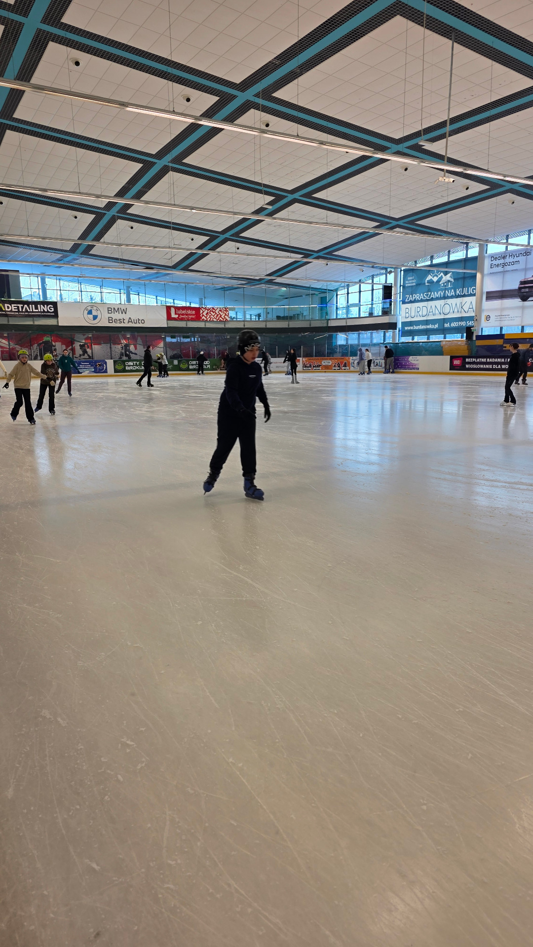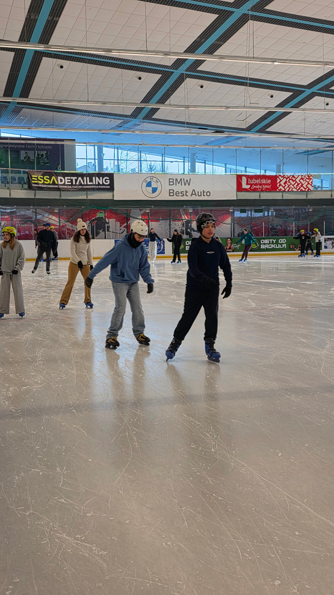Po kulturalnych przeżyciach przyszedł czas na aktywny wypoczynek. W godzinach 13.00–14.15 uczniowie korzystali z lodowiska „Icemania”. Jazda na łyżwach sprawiła wszystkim wiele radości. Zarówno początkujący, jak i bardziej zaawansowani łyżwiarze świetnie się bawili, a uczniowie zgodnie przyznali, że był to jeden z najciekawszych punktów wycieczki.