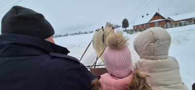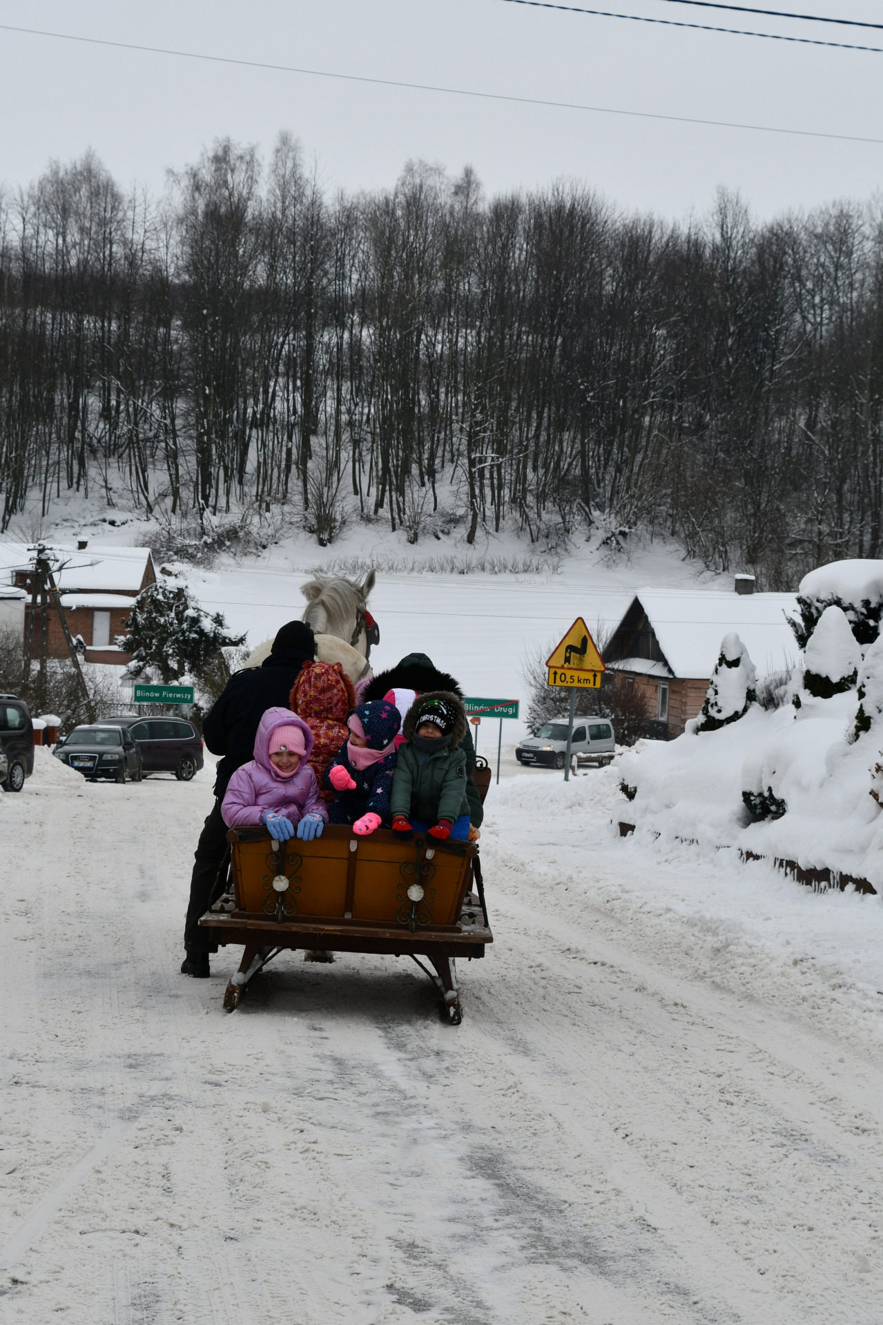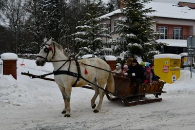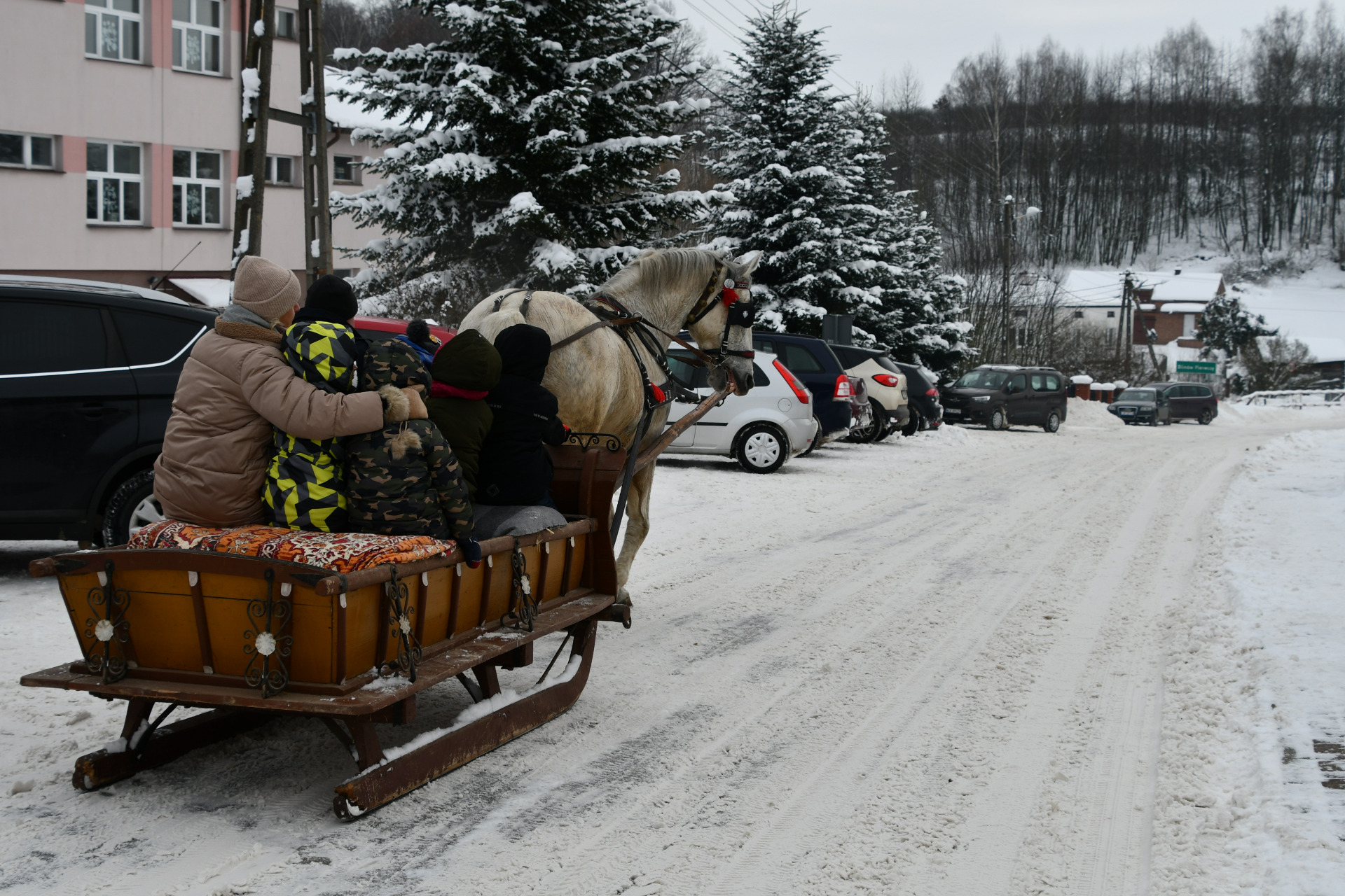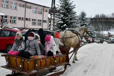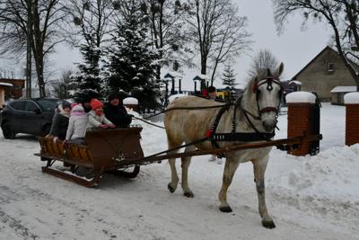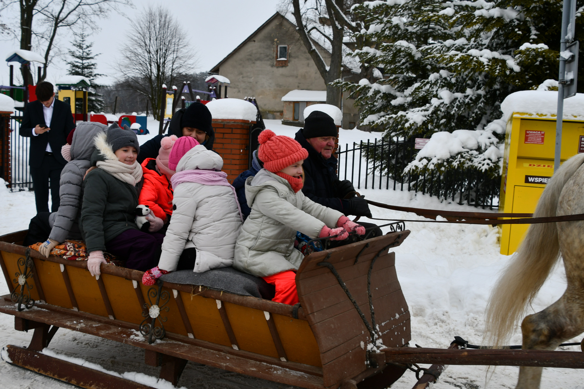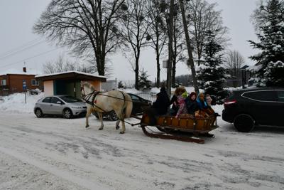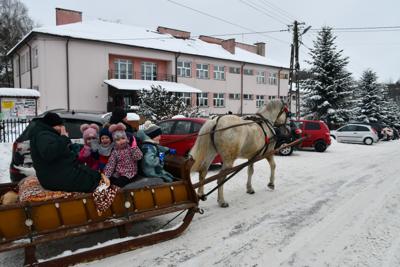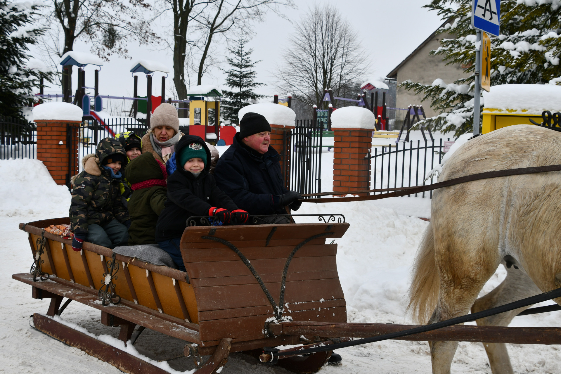 O niezapomnianą atmosferę zadbał woźnica – pan Andrzej Kurczak, dziadek naszych uczniów: Antosia, Luizy, Marcela i Wiktora, a dzielnie sanie ciągnął niezawodny koń Riwiera.