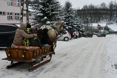 Niestety deszcz, który spadł tej nocy, sprawił, że zrobiło się zbyt ślisko, dlatego na kolejne przejażdżki musimy chwilę poczekać. Czekamy na kolejną "dostawę śniegu", by bezpiecznie kontynuować kulig dla następnych klas.